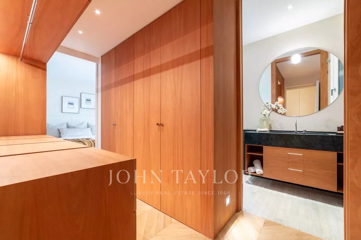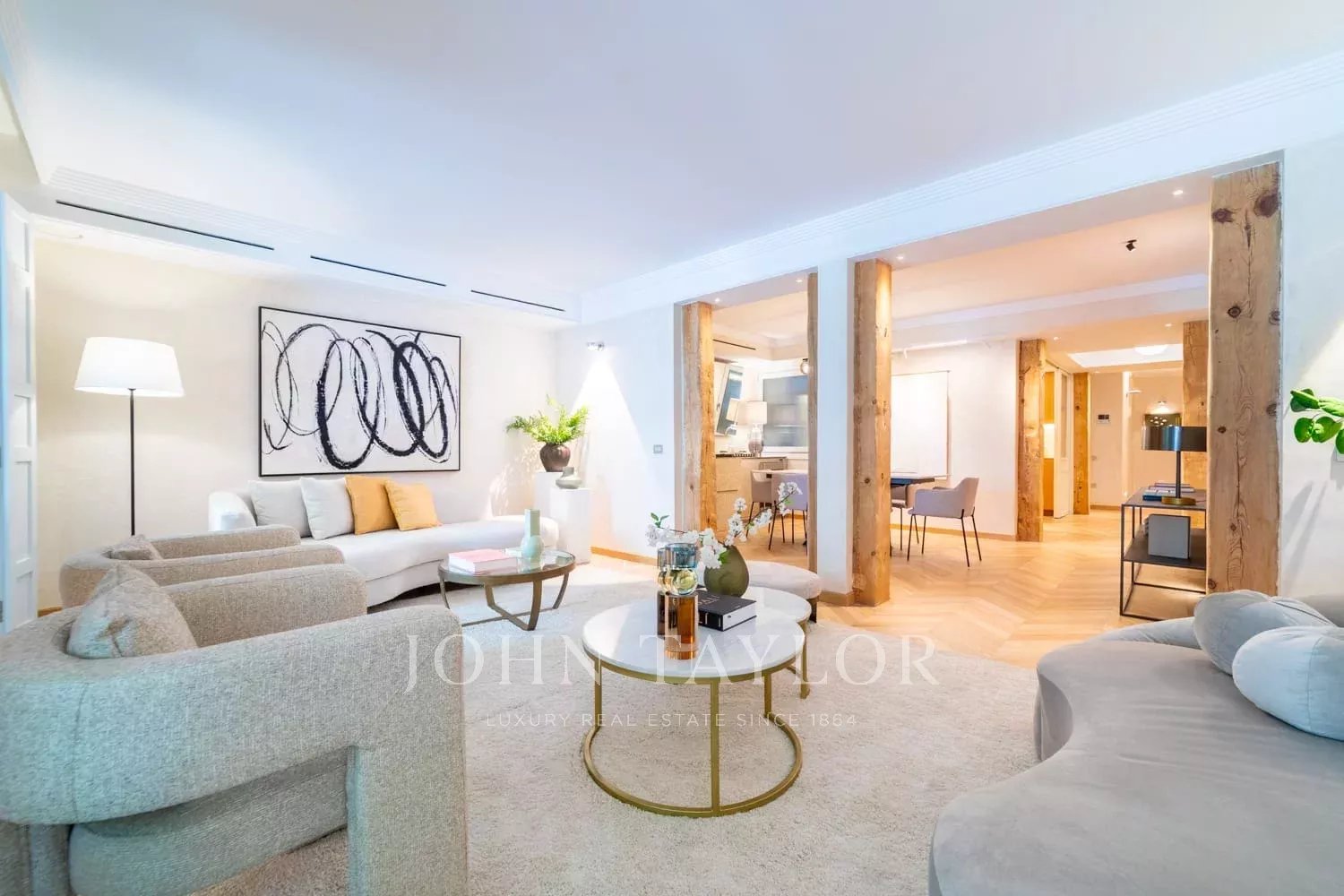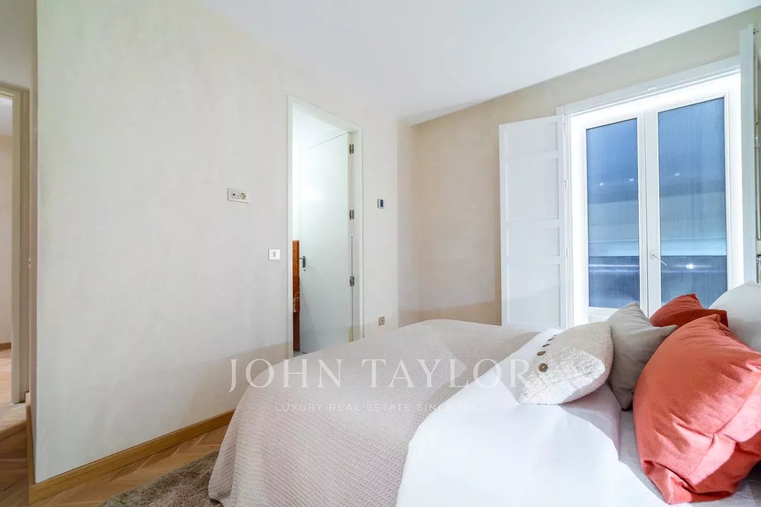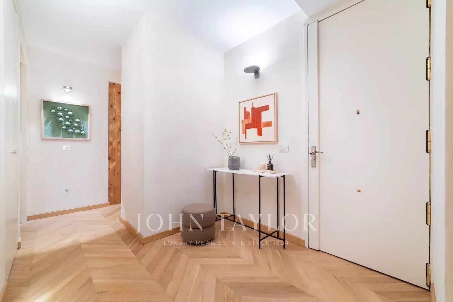 Tento nádherný exteriérový byt se nachází na jedné z nejreprezentativnějších adres ve čtvrti Salamanca, v 1. patře honosné budovy z 20. let 20. století s výtahem a elegantním klasickým vchodem.