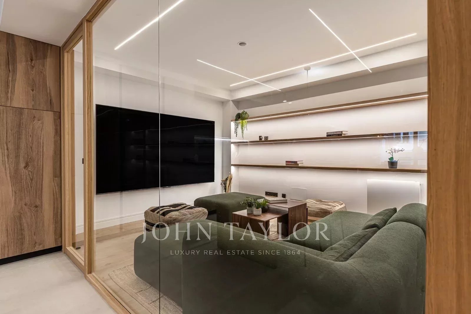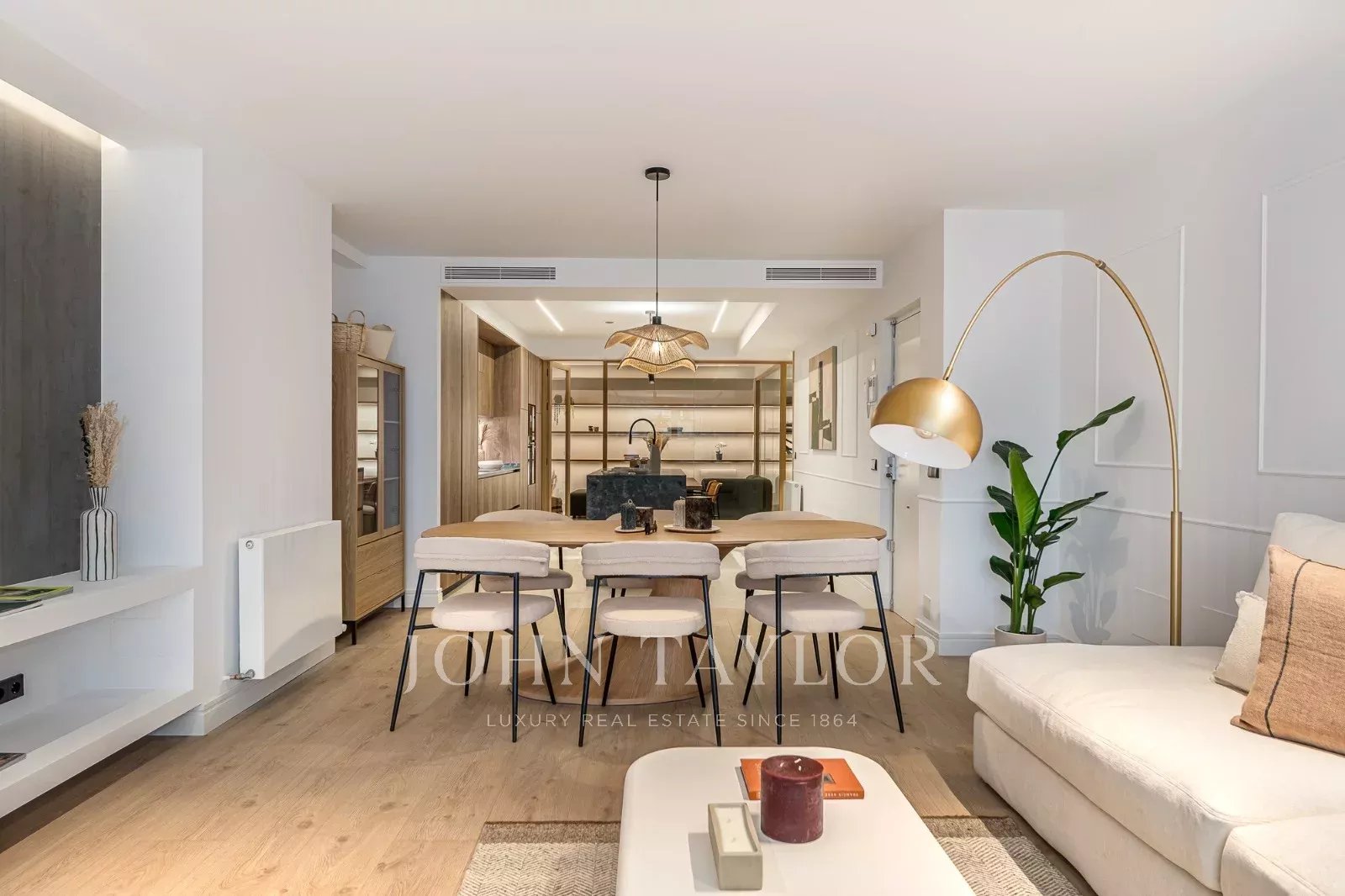 V jedné z nejpůvabnějších ulic čtvrti Salamanca překvapí tento jižně orientovaný byt o rozloze 222 m², kompletně zrekonstruovaný, zařízený a zcela nový.