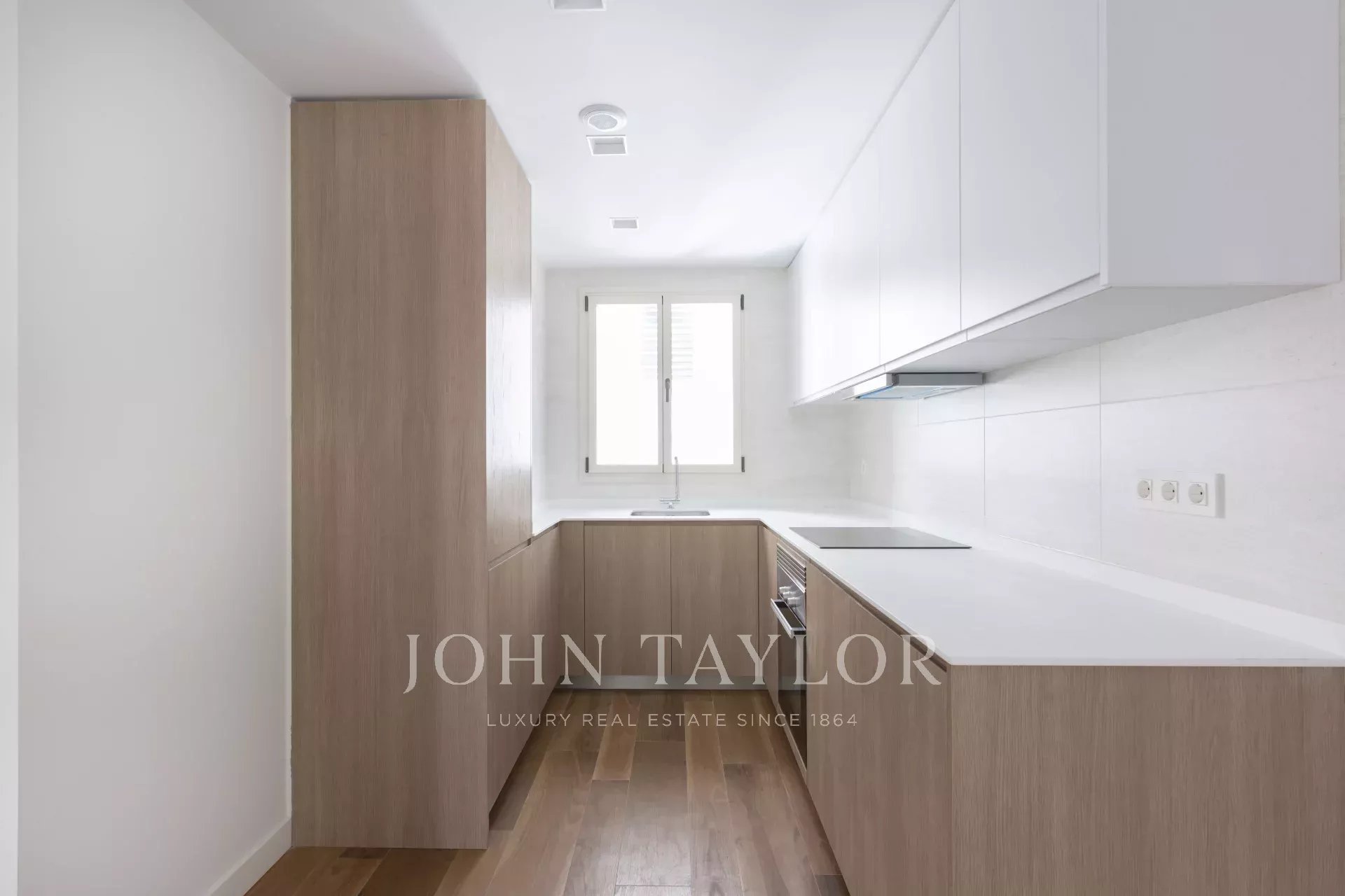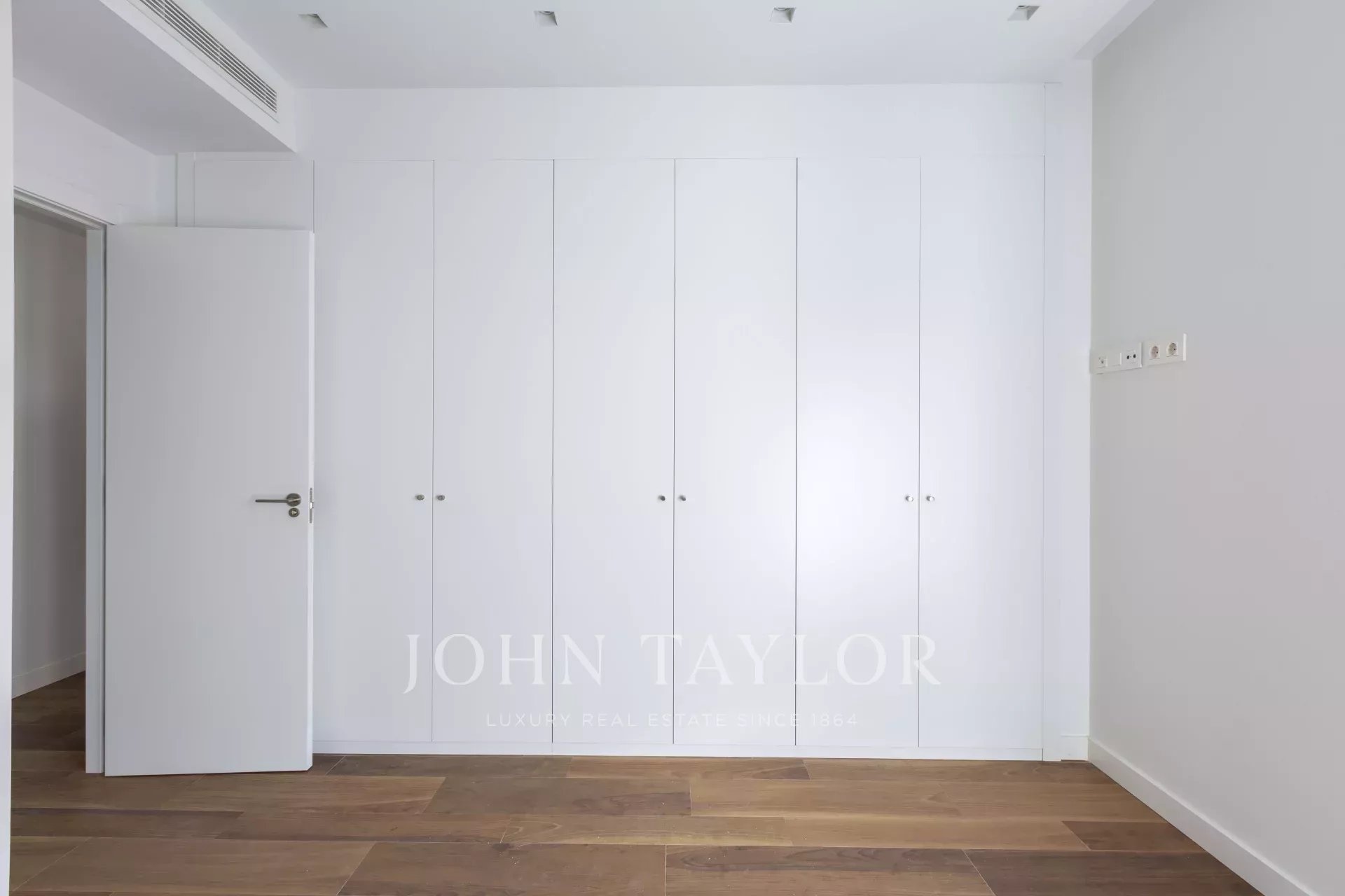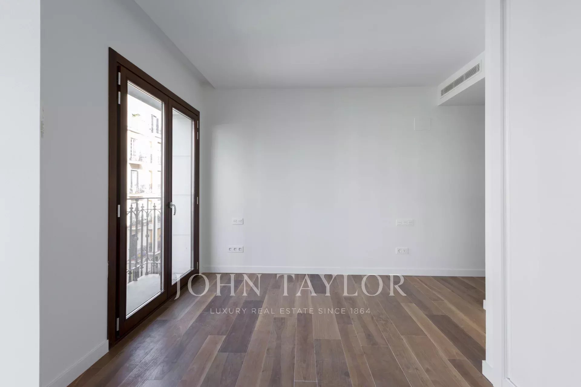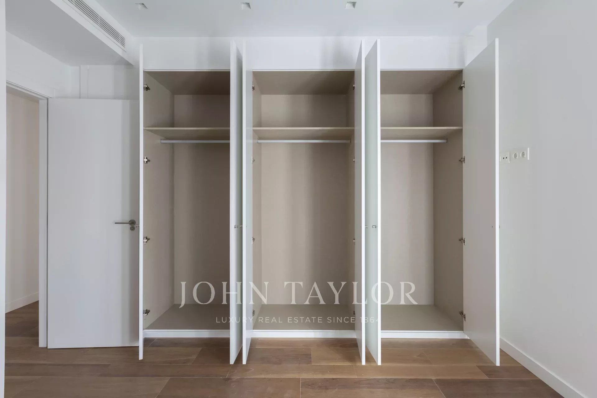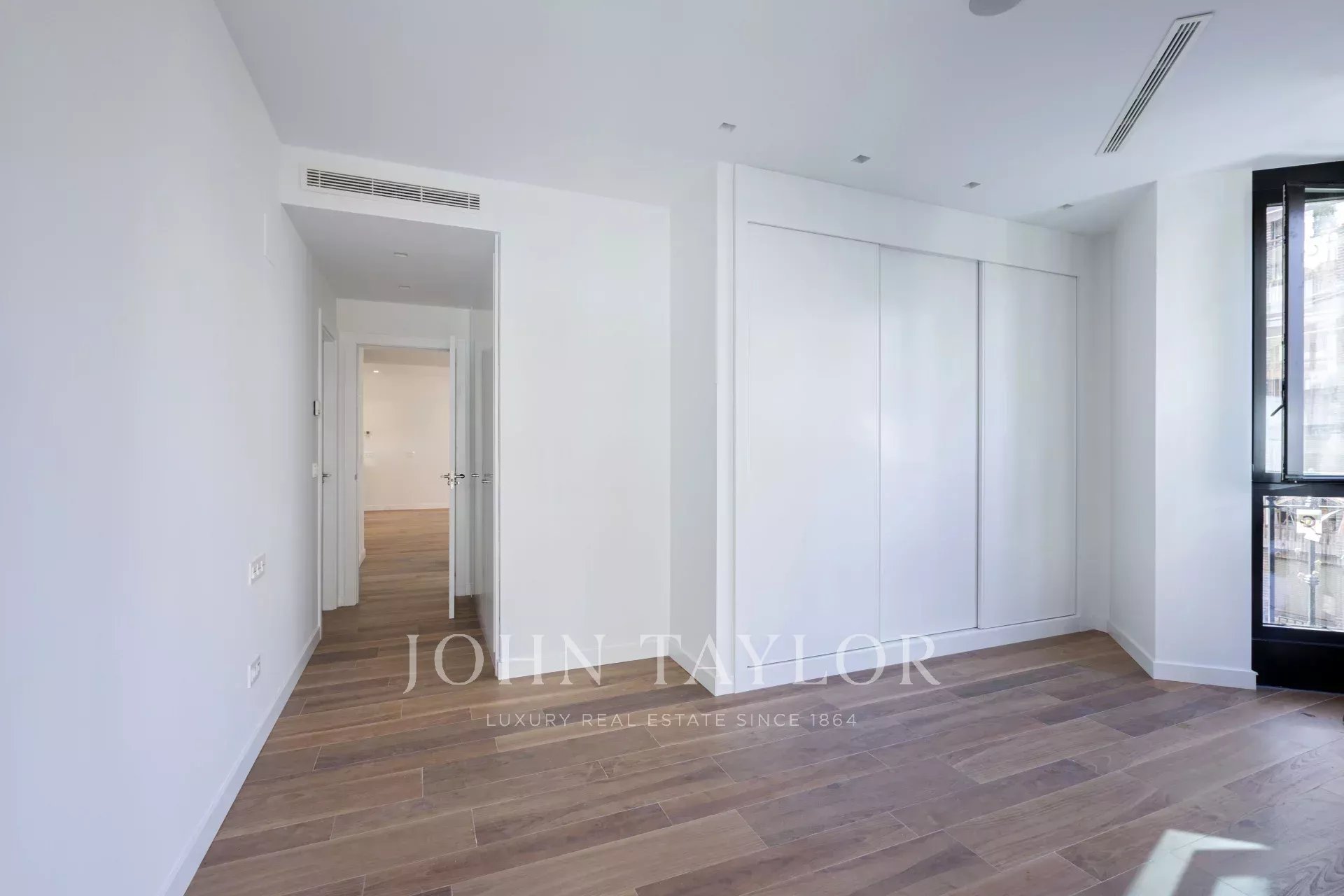 V jedné z mála novostaveb ve čtvrti Barrio de Salamanca se nachází tento báječný nový byt. Byt s pěti balkony s výhledem do ulice, který zaujímá roh čtvrtého patra budovy, se těší fantastickému světlu a prostornosti.