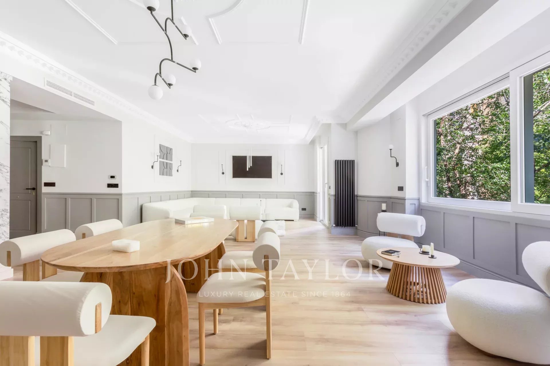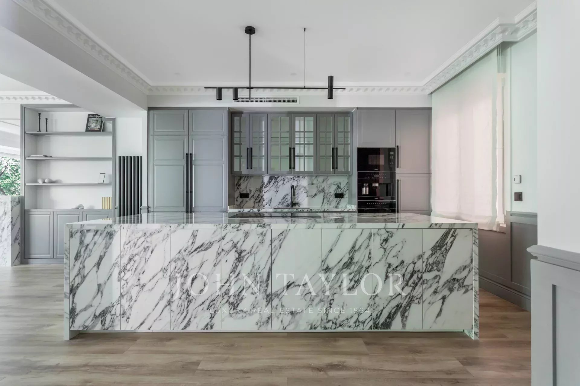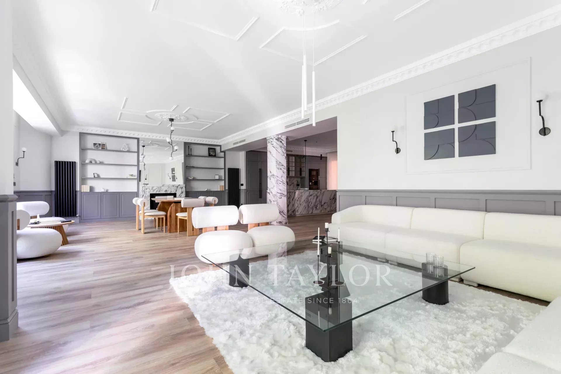 Velký obývací pokoj s jídelnou a několika místnostmi se díky velkým oknům těší příjemnému přirozenému světlu. Otevřená k obývacímu pokoji se nachází prostorná kuchyně s velkým centrálním ostrůvkem a vybavená špičkovými spotřebiči.