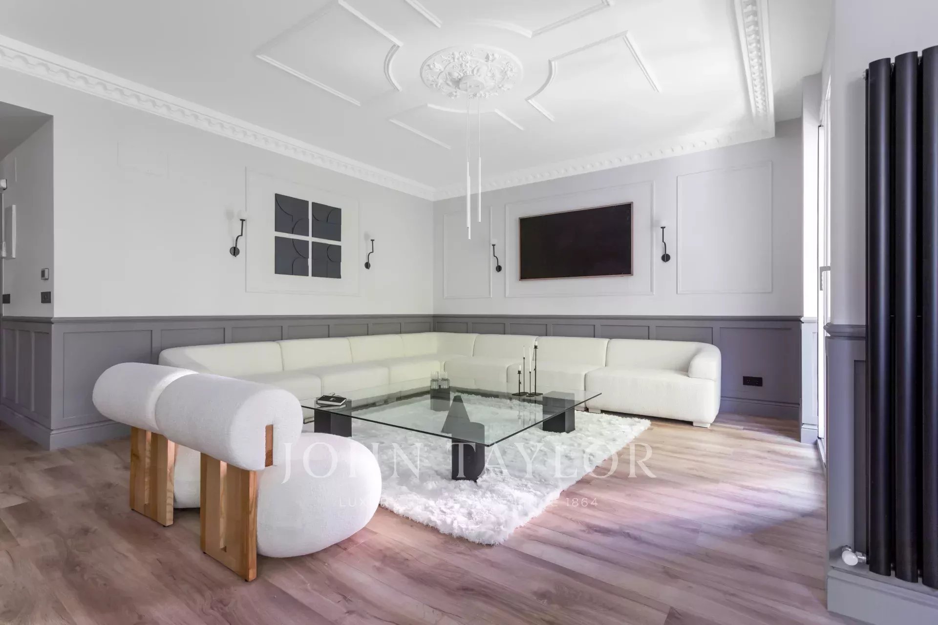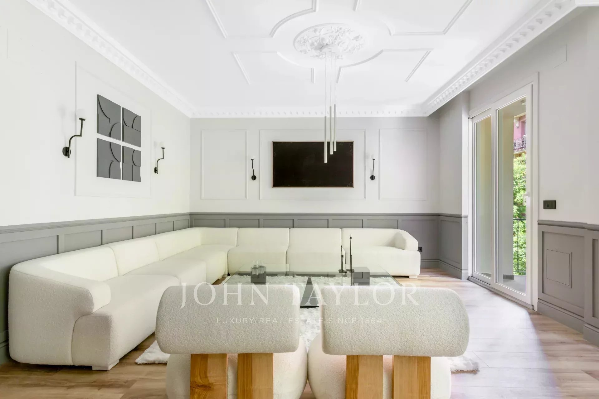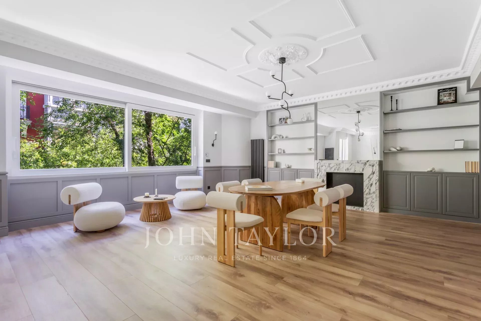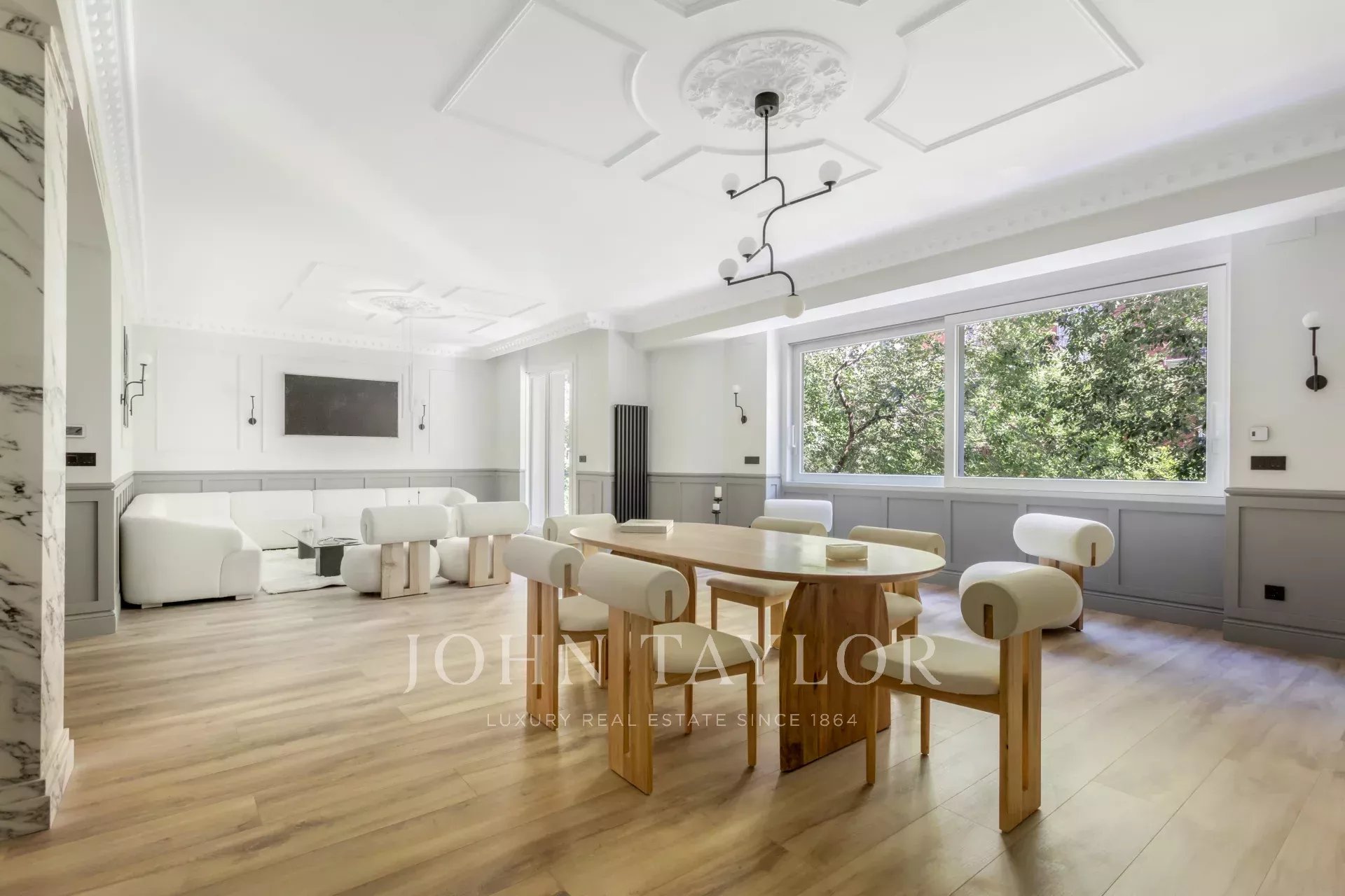 Velký obývací pokoj s jídelnou a několika místnostmi se díky velkým oknům těší příjemnému přirozenému světlu. Otevřená k obývacímu pokoji se nachází prostorná kuchyně s velkým centrálním ostrůvkem a vybavená špičkovými spotřebiči.