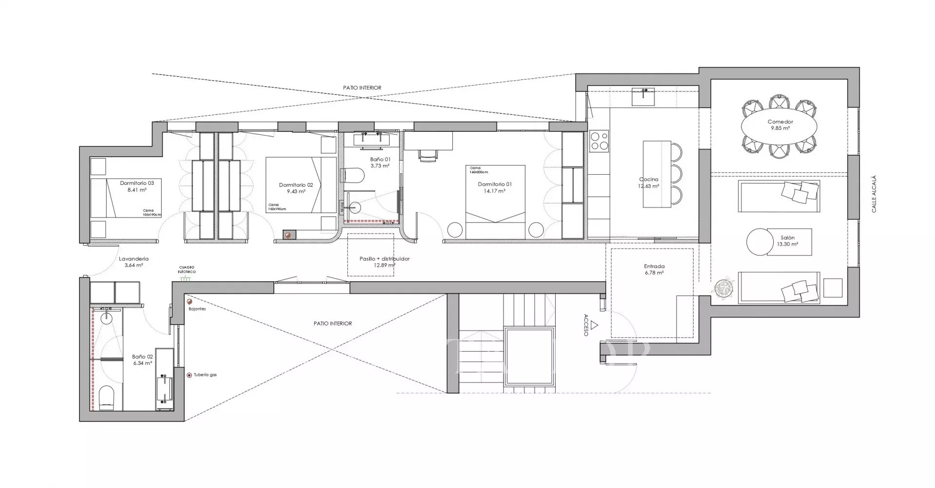Výborná nemovitost K REKONSTRUKCI v krásné klasické budově s prostorným a přístupným vchodem, která vyniká třímetrovými stropy, jihovýchodní orientací a venkovní fasádou, která poskytuje světlo po celý den. Jeho pokoje otevřené do hlavní fasády a dvou vnitřních dvorů nabízejí prostornost a pohodlí, zatímco viditelnost z křižovatky zvyšuje jeho exkluzivitu.