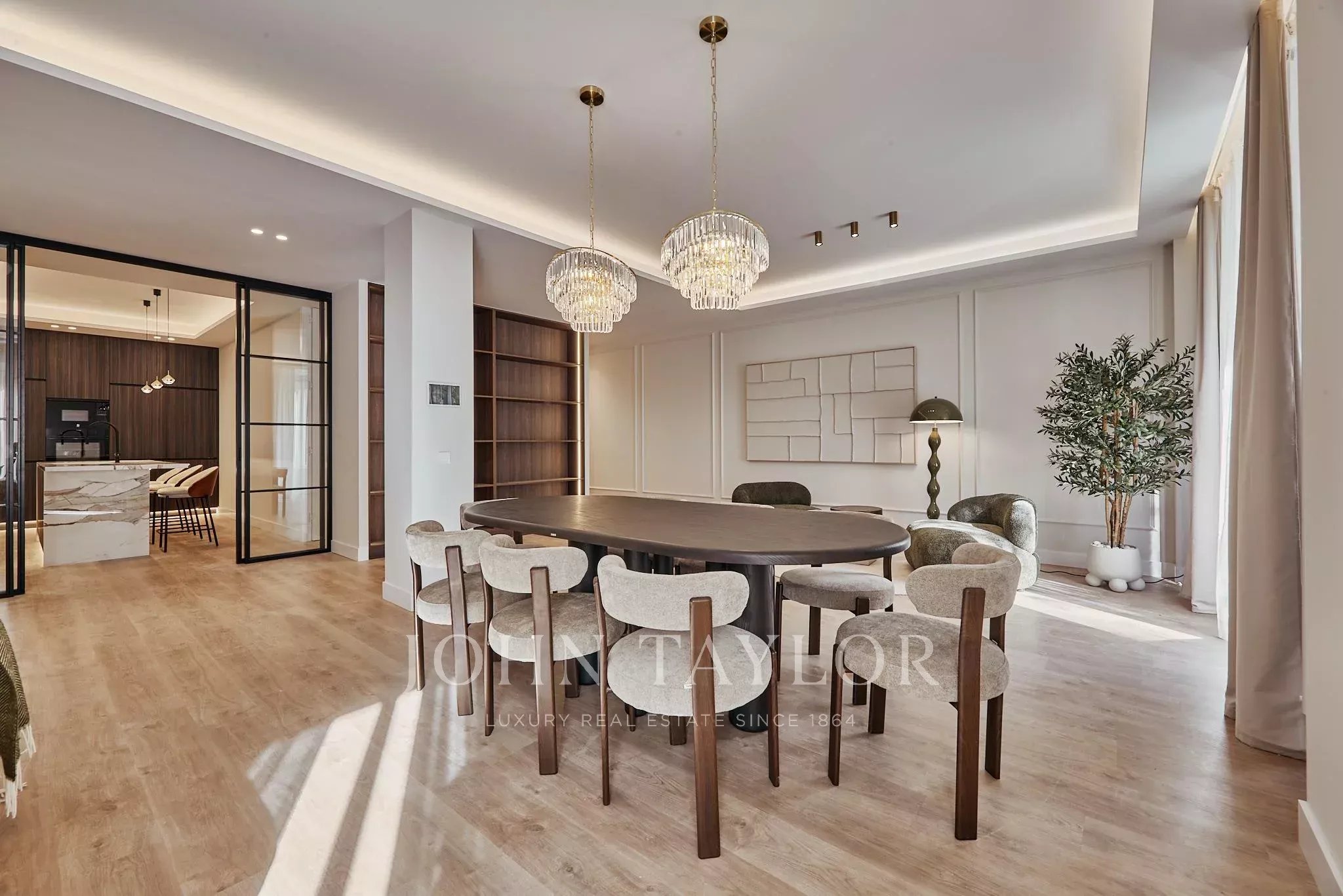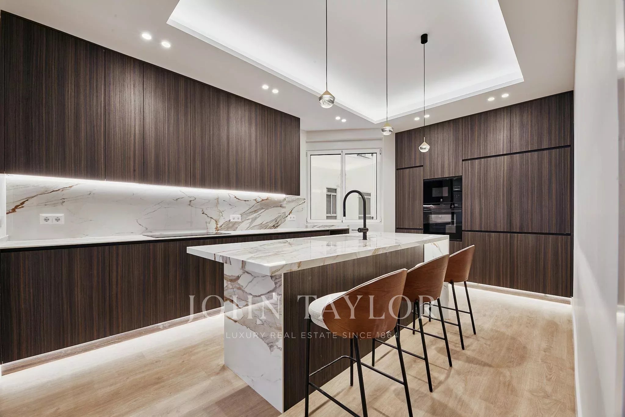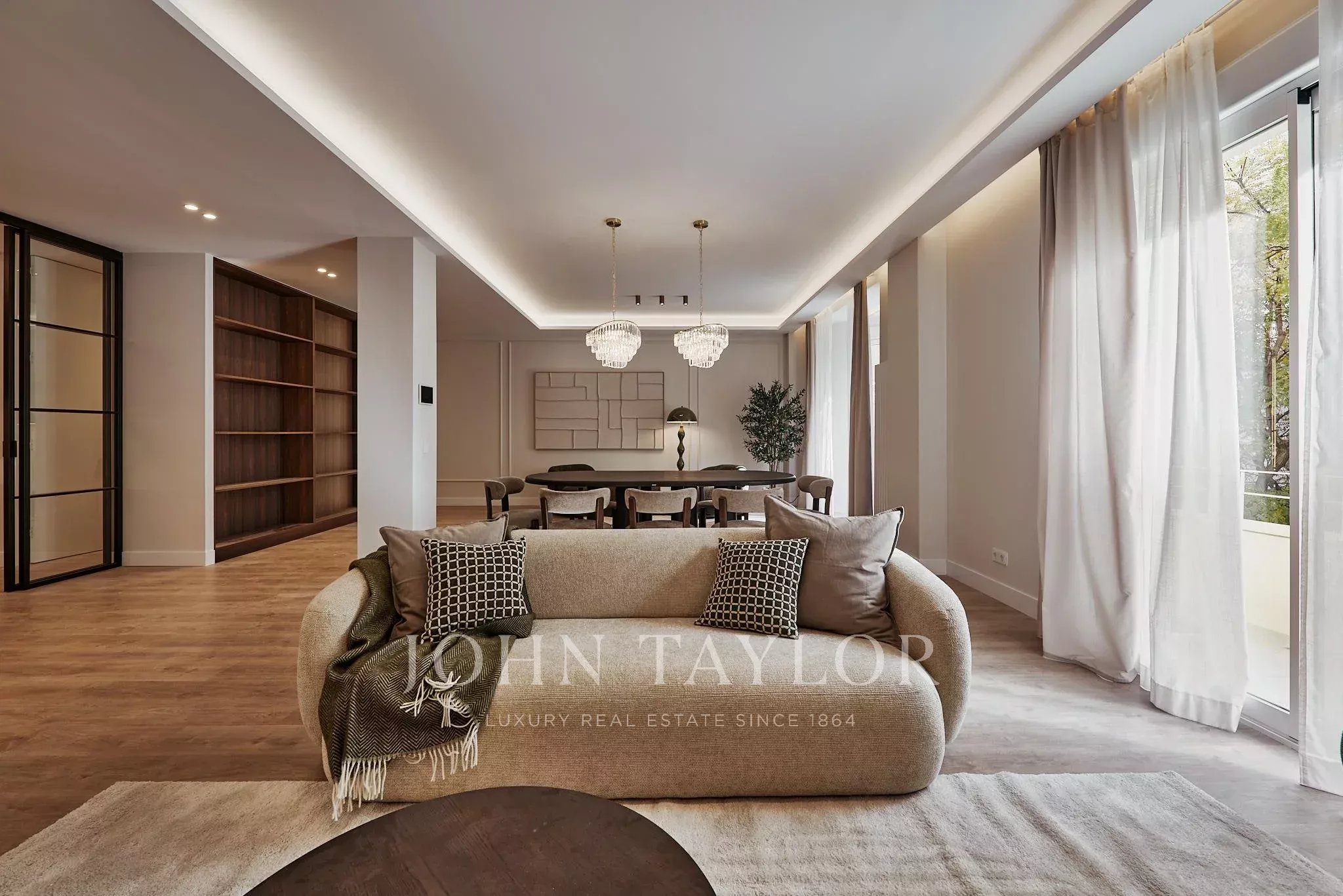 Nachází se ve druhém patře s výtahem v budově, byt vyniká svou velkorysou prostorností a reprezentativním charakterem na jedné z nejikoničtějších tepen hl. města. Byl pečlivě zrekonstruován s důrazem na současný styl, který zdůrazňuje plynulost prostor a komfort v každém pokoji.
