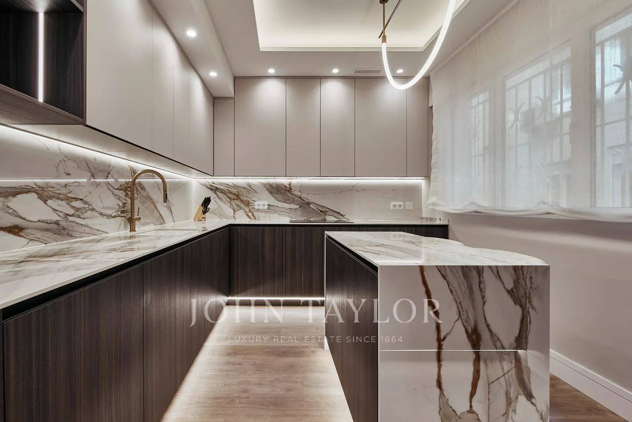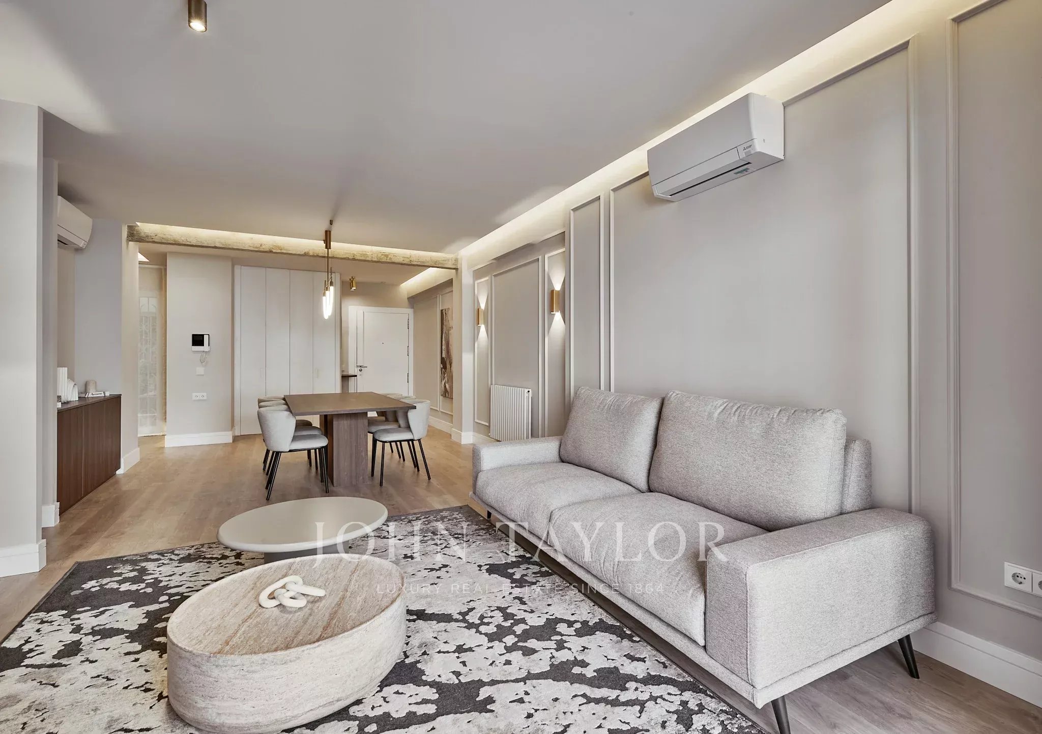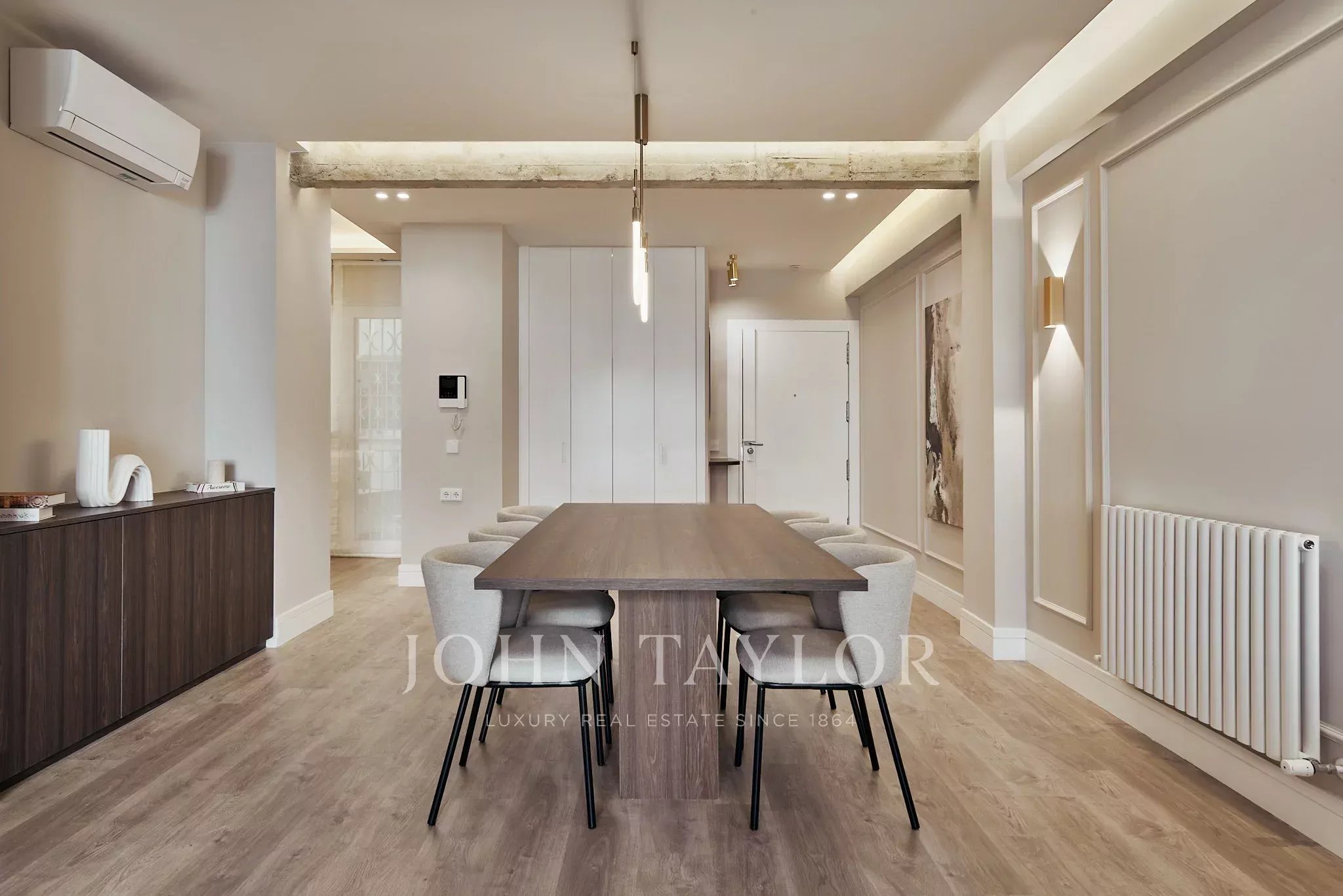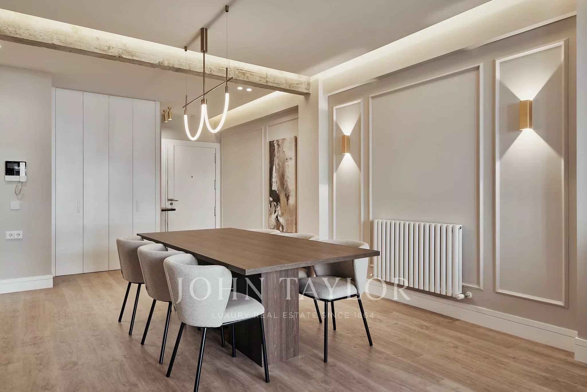 Elegantní byt o rozloze 174 m² v klasické budově z roku 1958, nacházející se v prestižní čtvrti Goya v okrese Salamanca. Rekonstruován s moderním designem a vysoce kvalitními materiály, vyniká svým osvětlením a promyšleným uspořádáním.