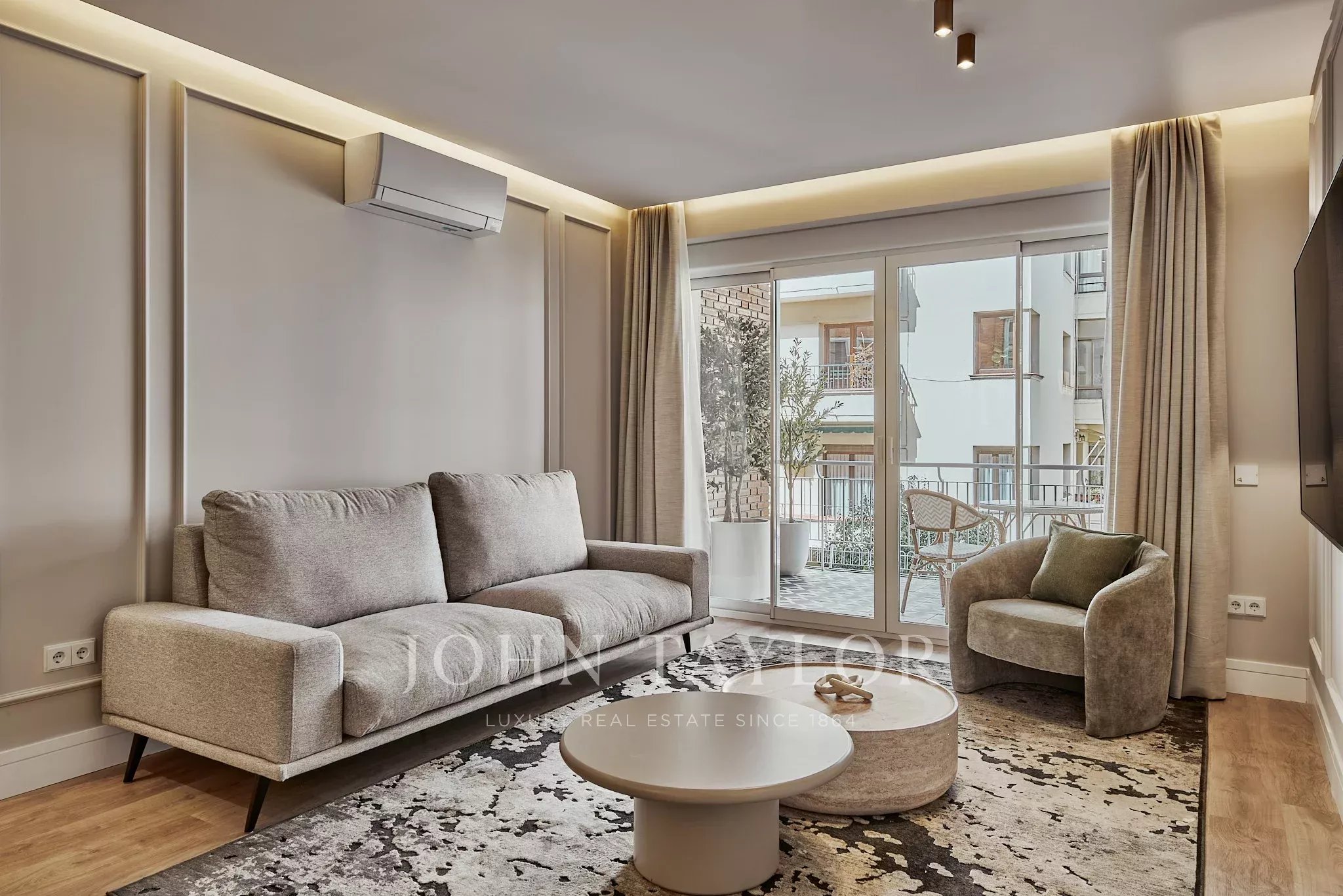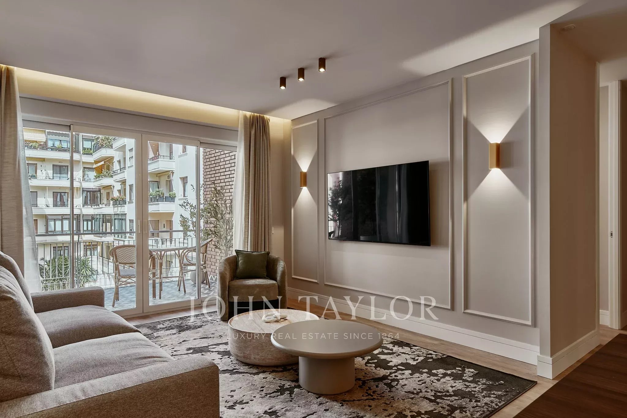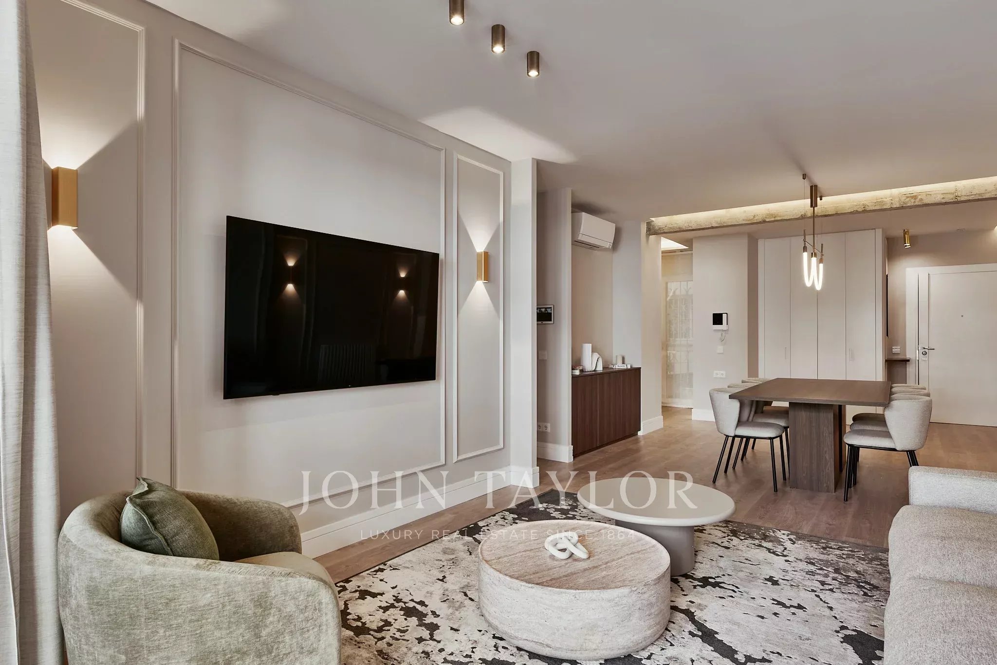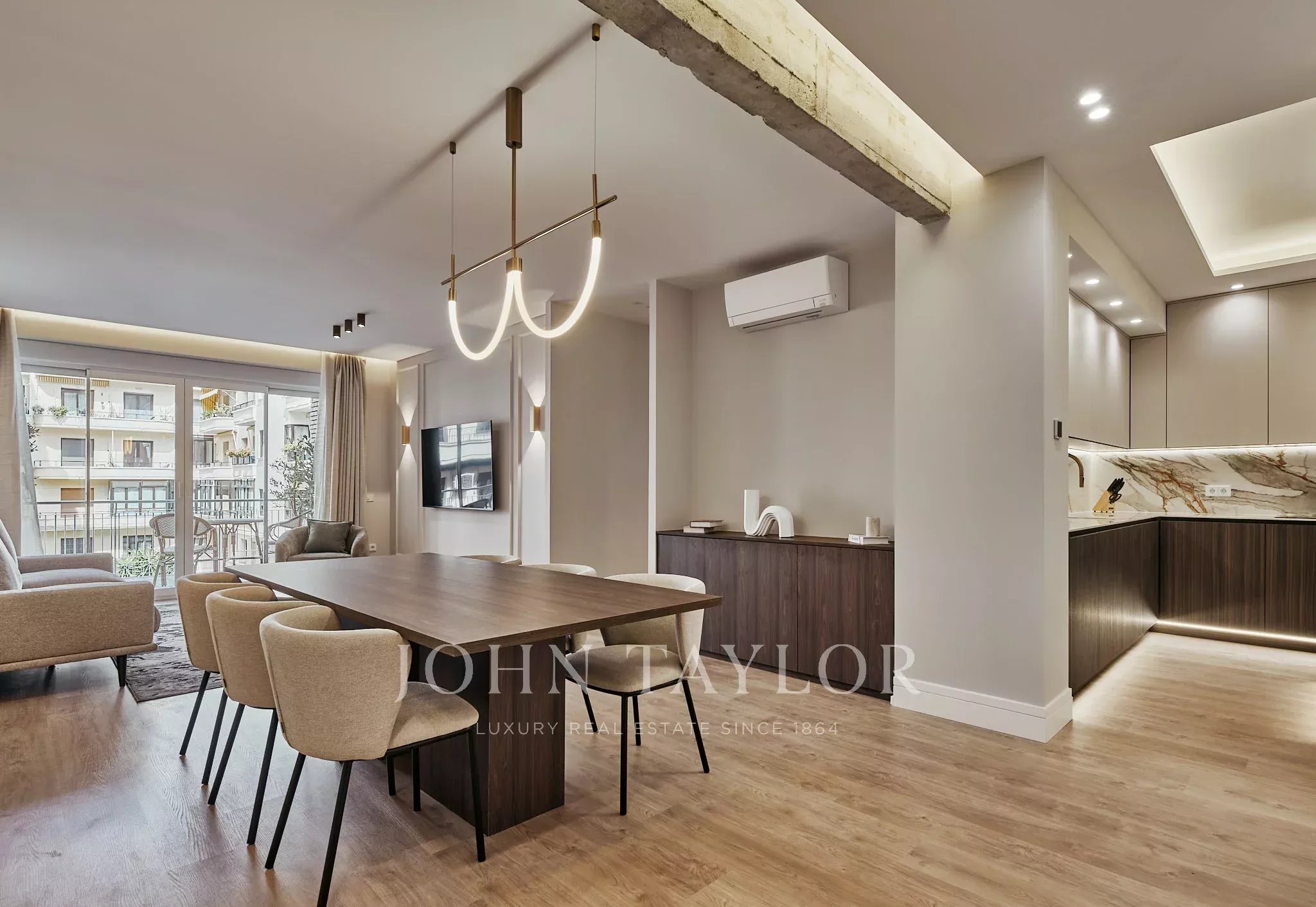 Elegantní byt o rozloze 174 m² v klasické budově z roku 1958, nacházející se v prestižní čtvrti Goya v okrese Salamanca. Rekonstruován s moderním designem a vysoce kvalitními materiály, vyniká svým osvětlením a promyšleným uspořádáním.