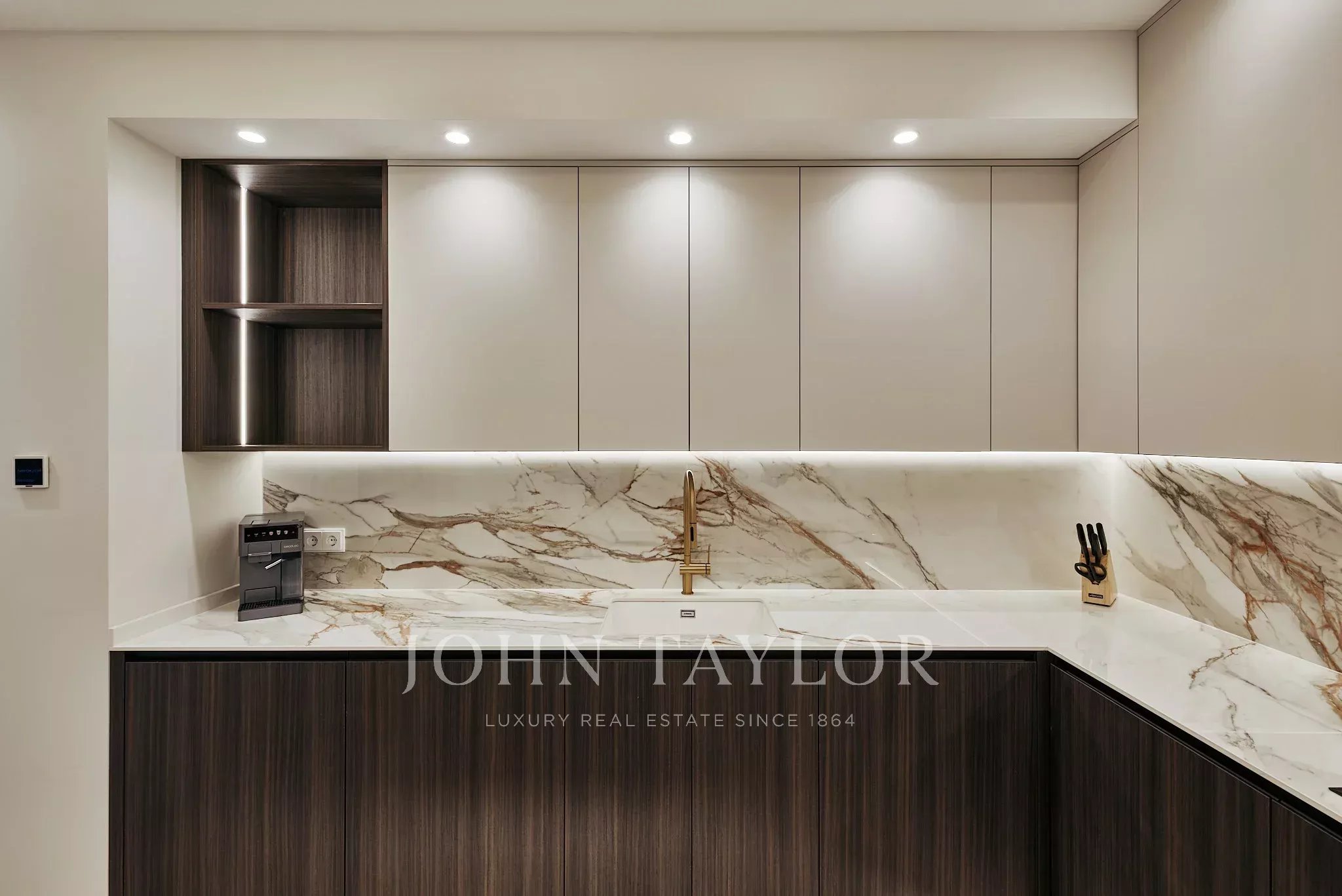 Vybaveno centrálním topením, klimatizací a domácí automatizací. Budova s výtahem a vrátnicí. Prodává se kompletně zařízený a připravený k okamžitému nastěhování.