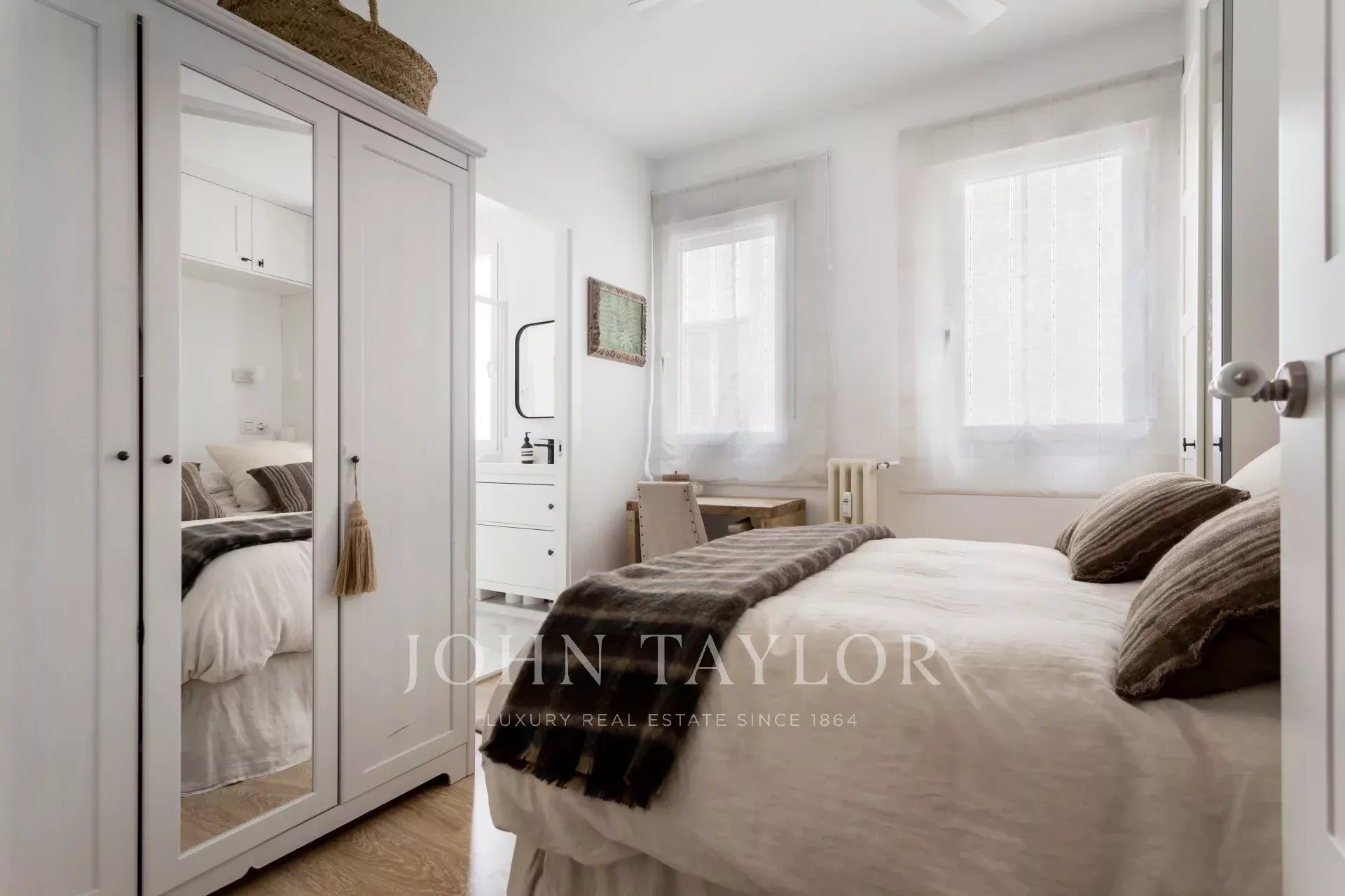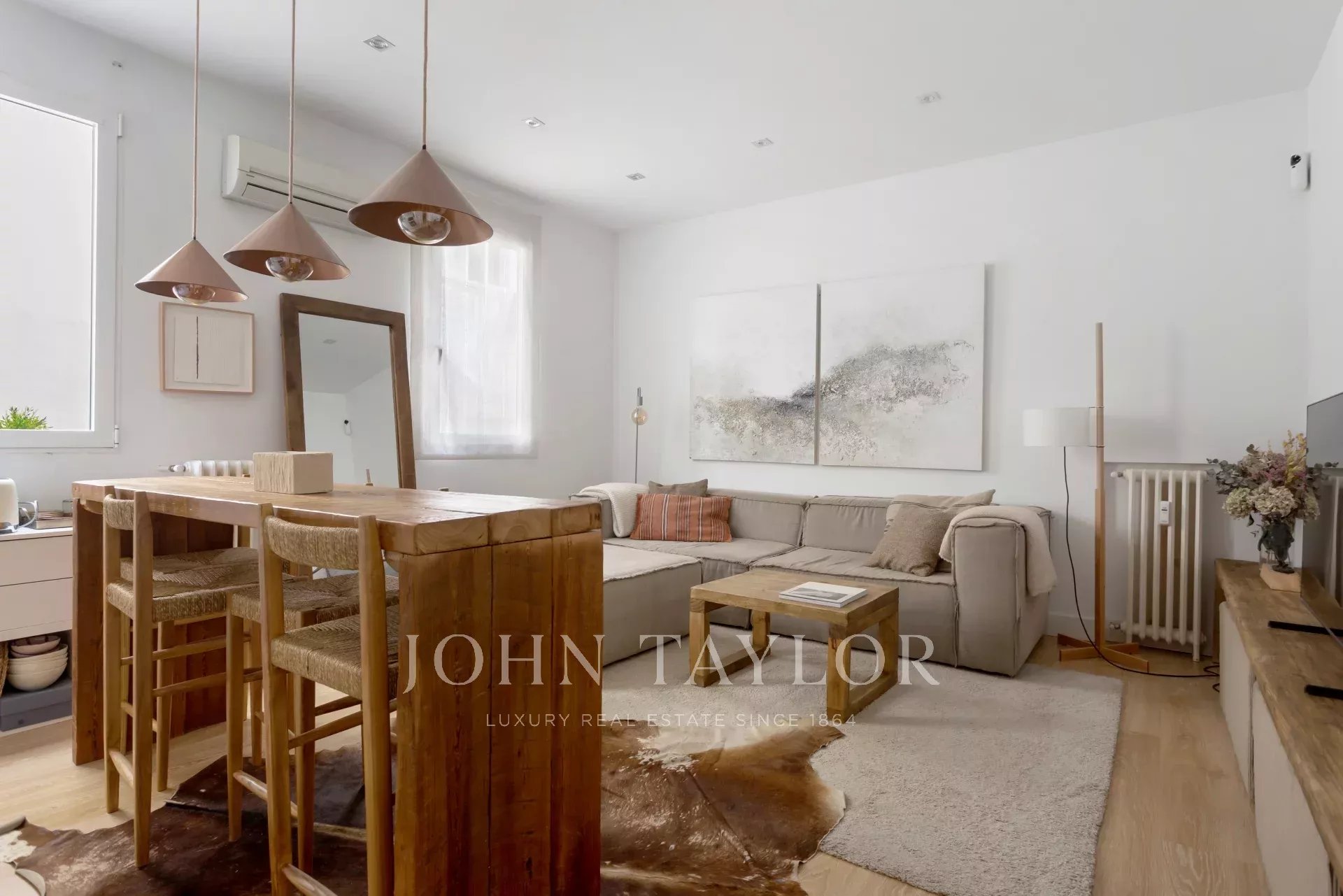 Tento byt se dvěma ložnicemi a dvěma koupelnami byl pečlivě zrekonstruován, aby se co nejlépe využil každý prostor a spojil funkčnost se stylem.