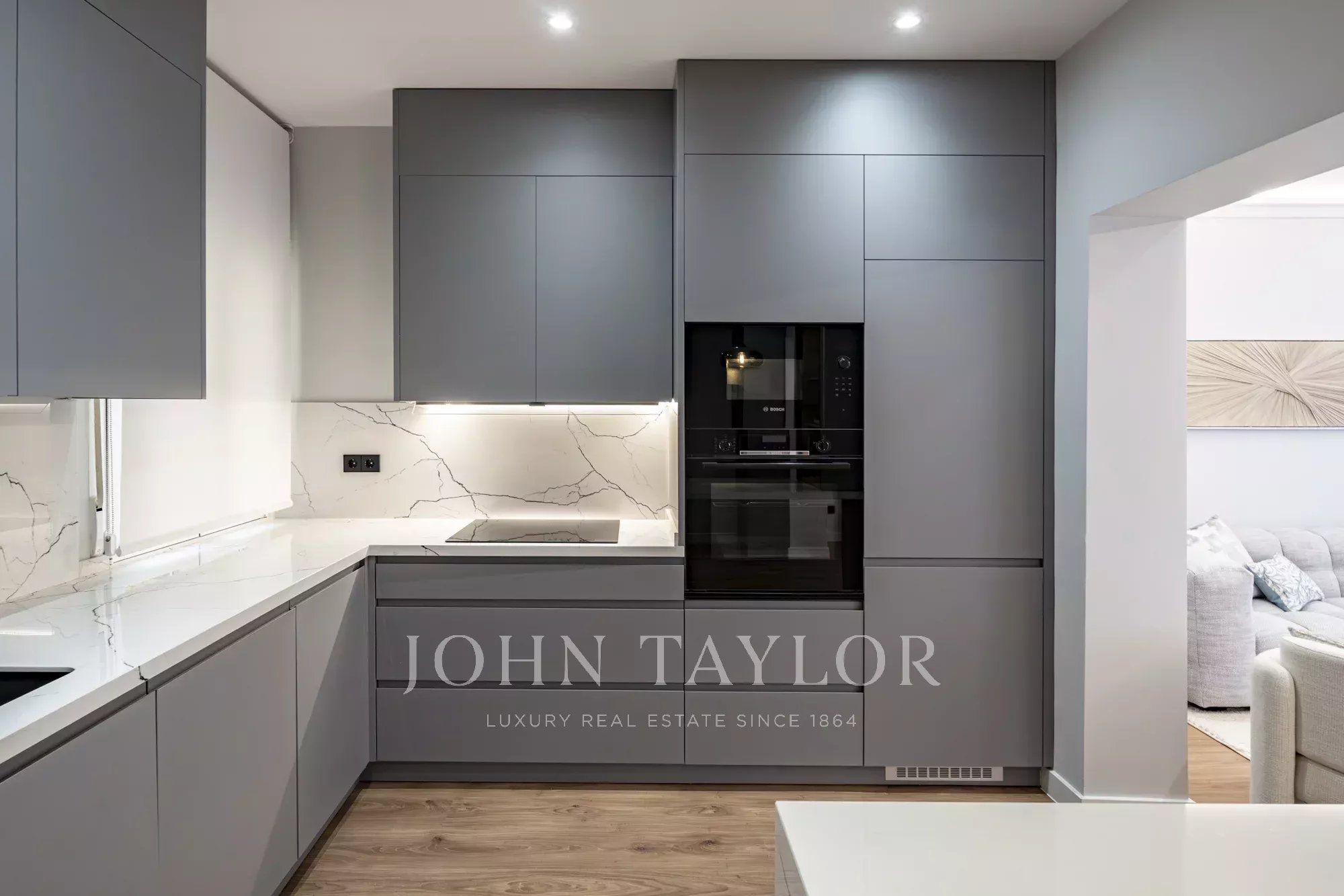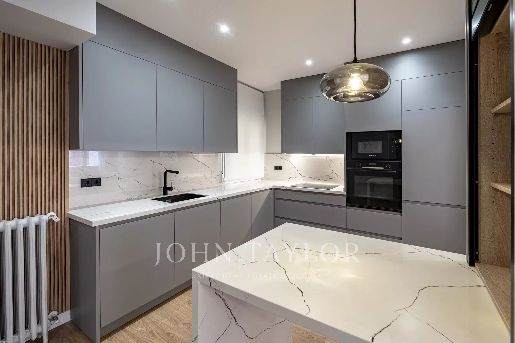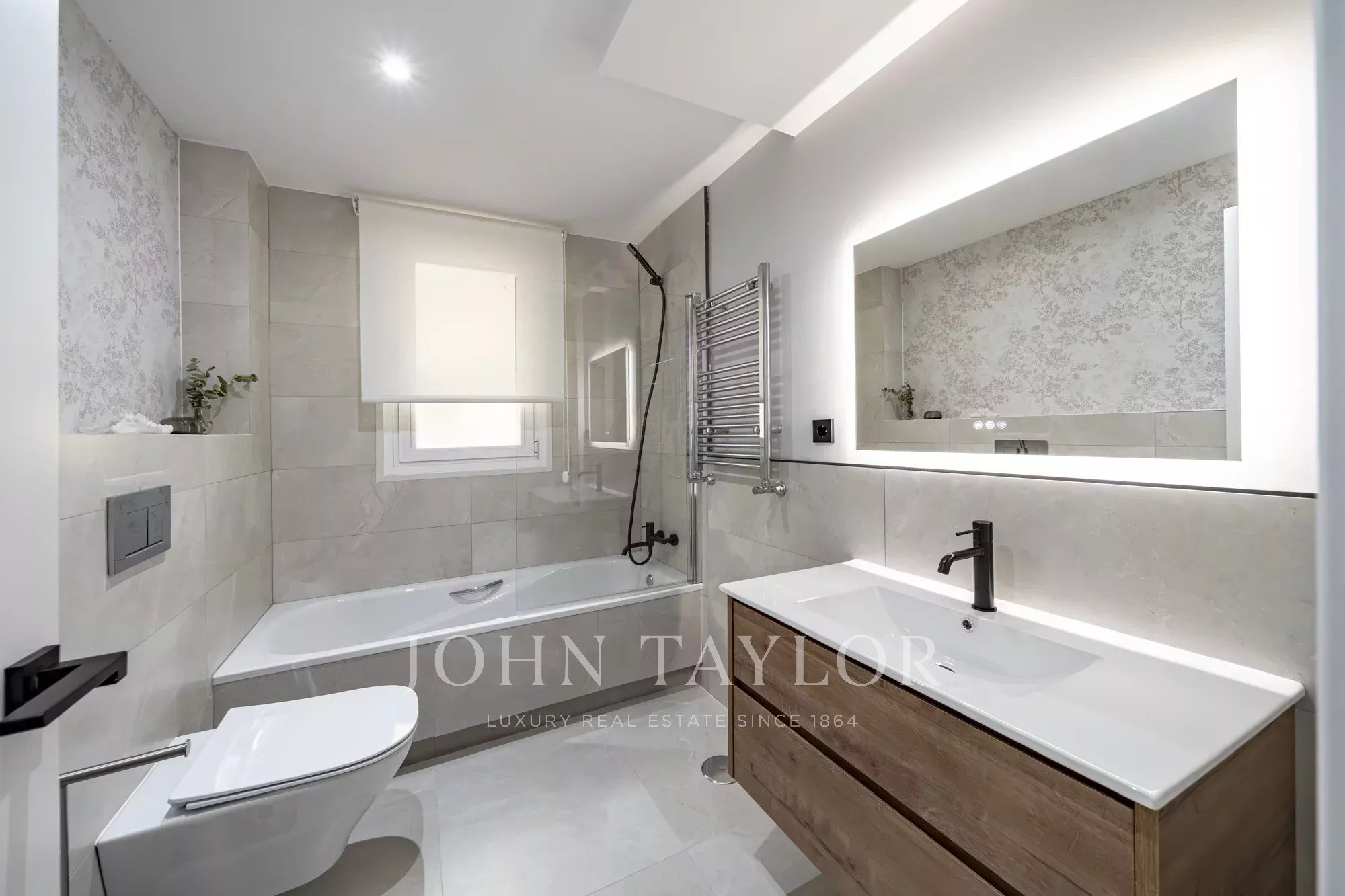 Nemovitost má dvě velké ložnice, dvě designové koupelny a samostatnou prádelnu a nabízí funkční a zároveň elegantní uspořádání.