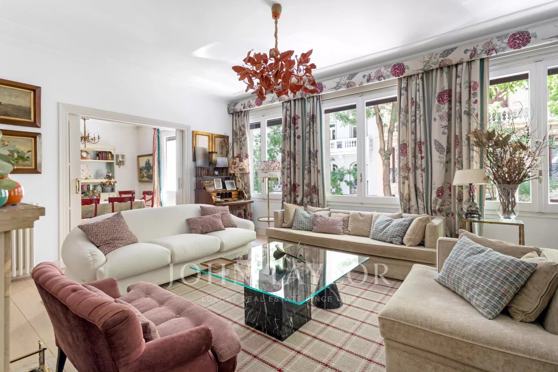 Exkluzivní rezidence o rozloze 305 m² s reprezentativním vstupem a osobitou vstupní halou, kde mramorové a šachovnicové podlahy předznamenávají elegantní tón domu. Prostřední patro, orientované do exteriéru a na východ, umožňuje od prvního okamžiku zaplavit obytné místnosti světlem, které umocňuje velkorysé proporce a plynulost mezi místnostmi: velké reprezentativní salony s krbem a lištami, integrovaná knihovna nebo pracovna a jídelny, které vybízejí k rodinnému životu i k přijímání hostů.