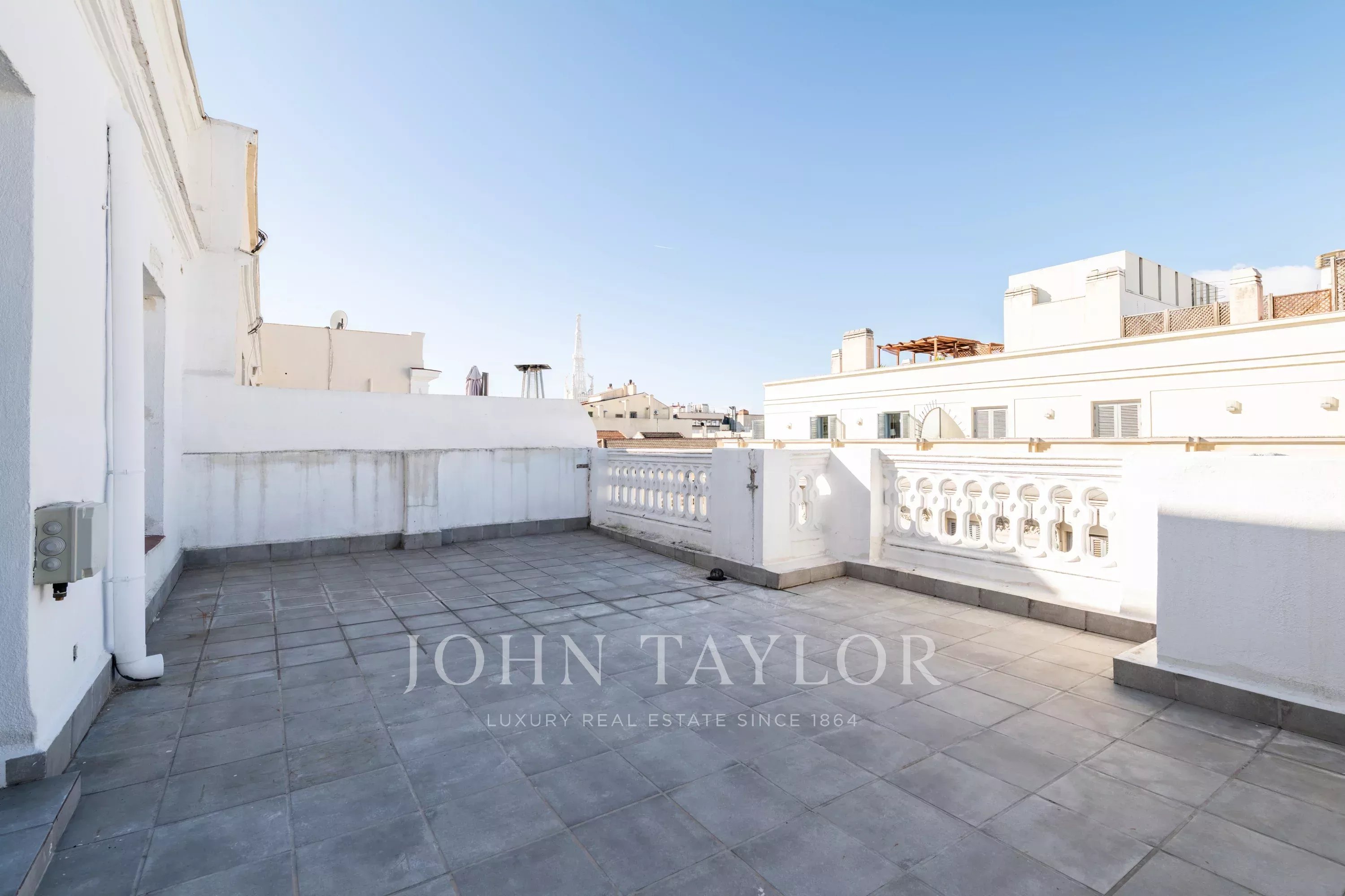 Tato nemovitost, která se nachází v nejvyšším patře reprezentativní majestátní budovy ve čtvrti Recoletos, vyniká svým klasickým charakterem, elegantním vchodem a vynikajícím společenstvím. Orientace na západ poskytuje celodenní světlo a absolutní soukromí, zatímco velká terasa o rozloze 48 m² umožňuje užívat si jedinečné venkovní prostory s nerušeným výhledem.