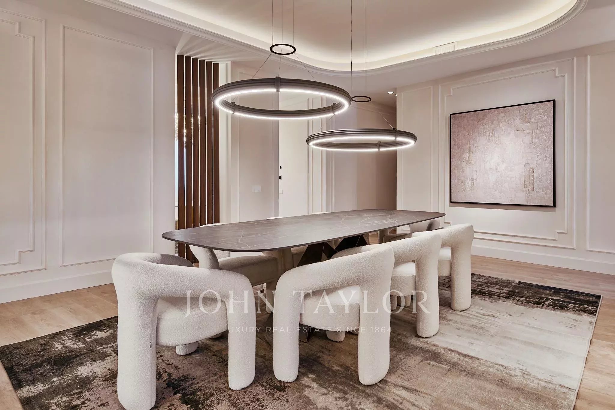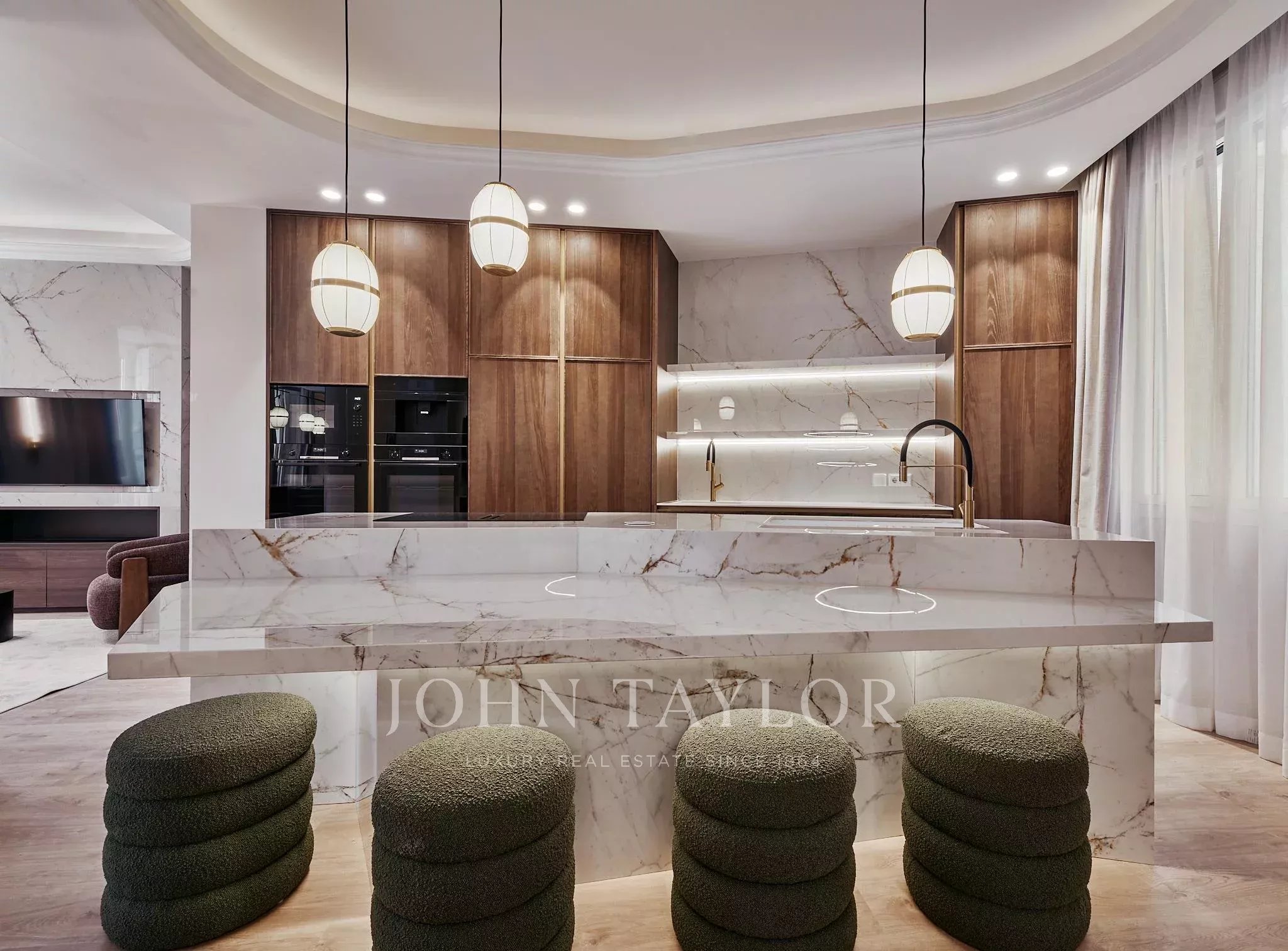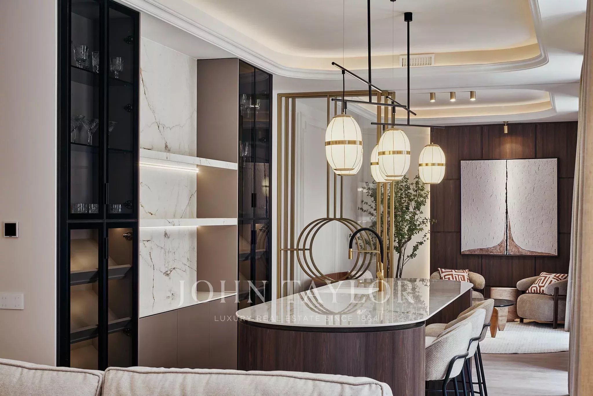 Nemovitost nabízí dvě prostorné obytné místnosti, jednu hlavní místnost koncipovanou jako prostor pro setkávání a reprezentaci a druhou intimnější, která vybízí k odpočinku a soukromí. Noční část tvoří čtyři ložnice a pět kompletních koupelen a toaleta pro hosty.