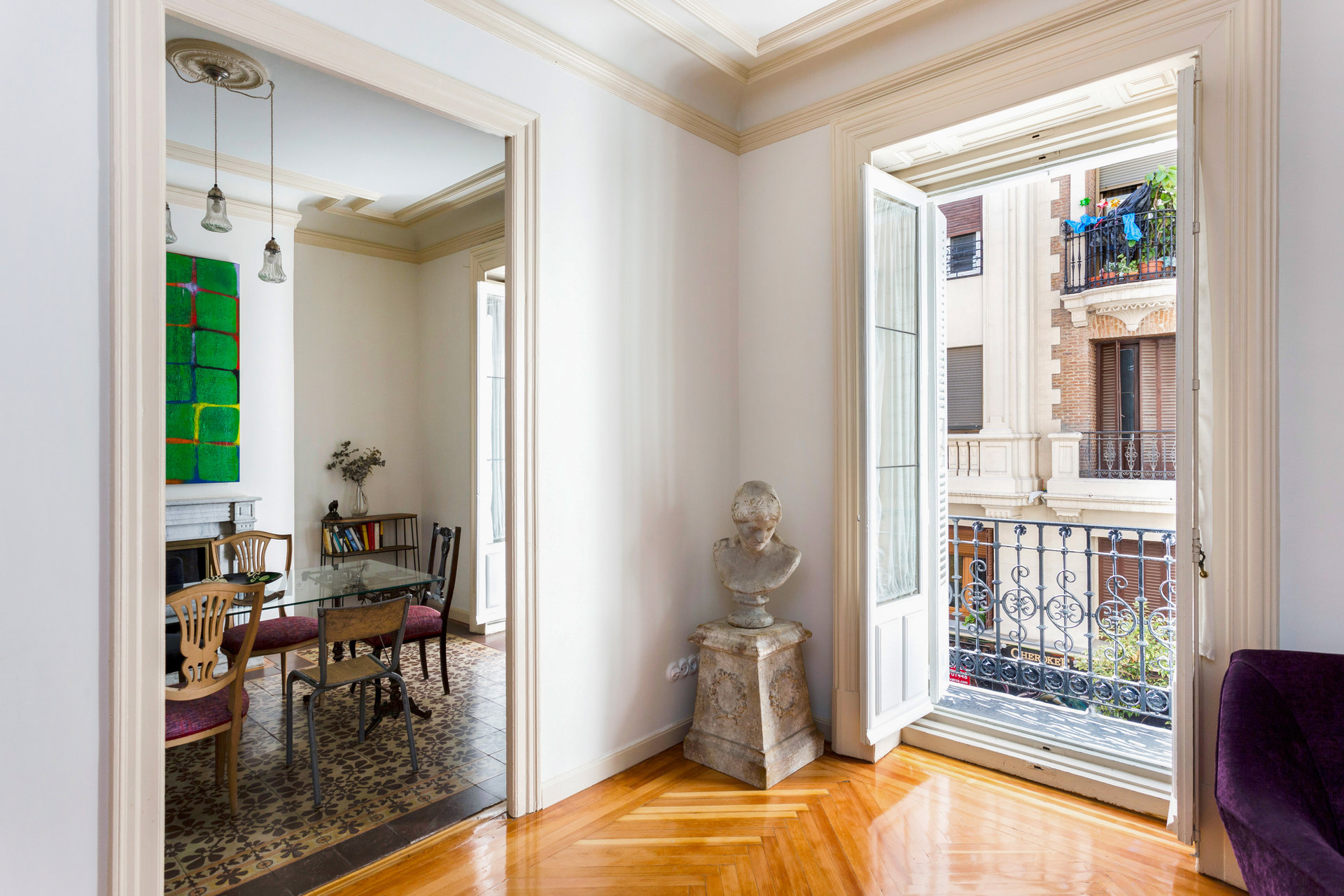 Působivý byt o rozloze 296 m2 ve čtvrti Justicia v klasické budově z počátku 20. století. Více než 3 metry vysoké stropy s původními lištami dodávají nemovitosti klasický nádech, aniž by tím byla dotčena její nedávná rekonstrukce, což z ní činí skvělý rodinný byt v živé čtvrti Barrio de Justicia v samém centru Madridu.