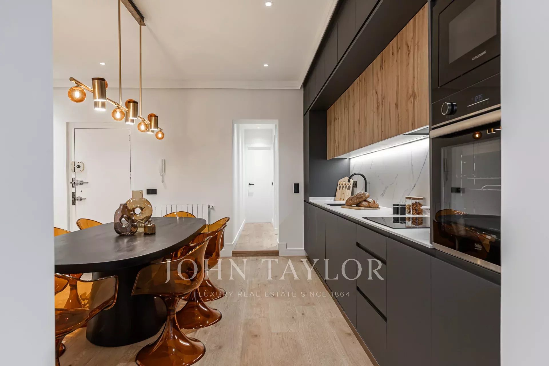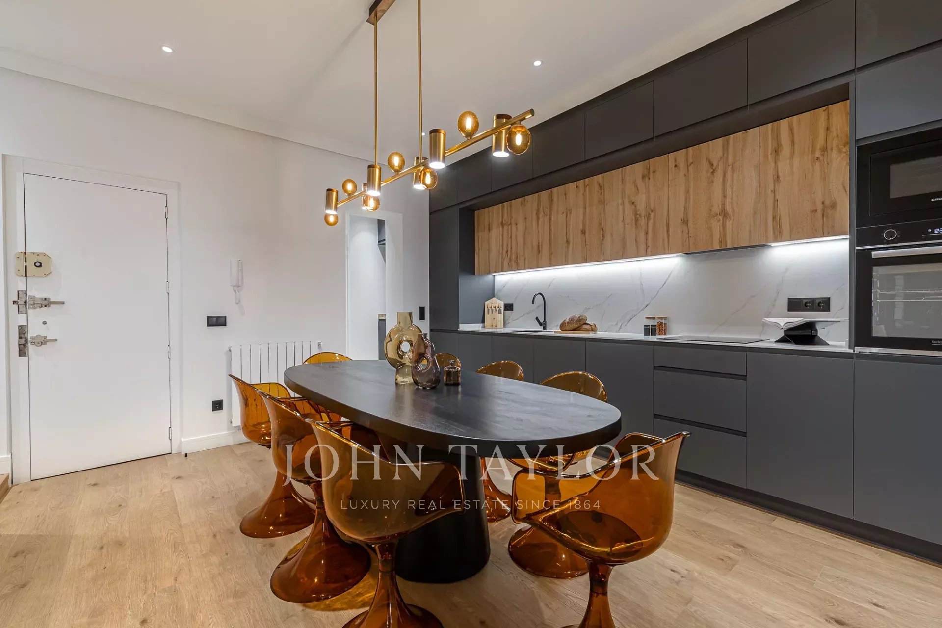 V srdci Barrio de Justicia, jedné z nejživějších a nejkosmopolitnějších enkláv Madridu, vám představujeme tento exkluzivní byt o rozloze 128 m², kompletně zrekonstruovaný v moderním designu, který respektuje podstatu klasické budovy z roku 1900.