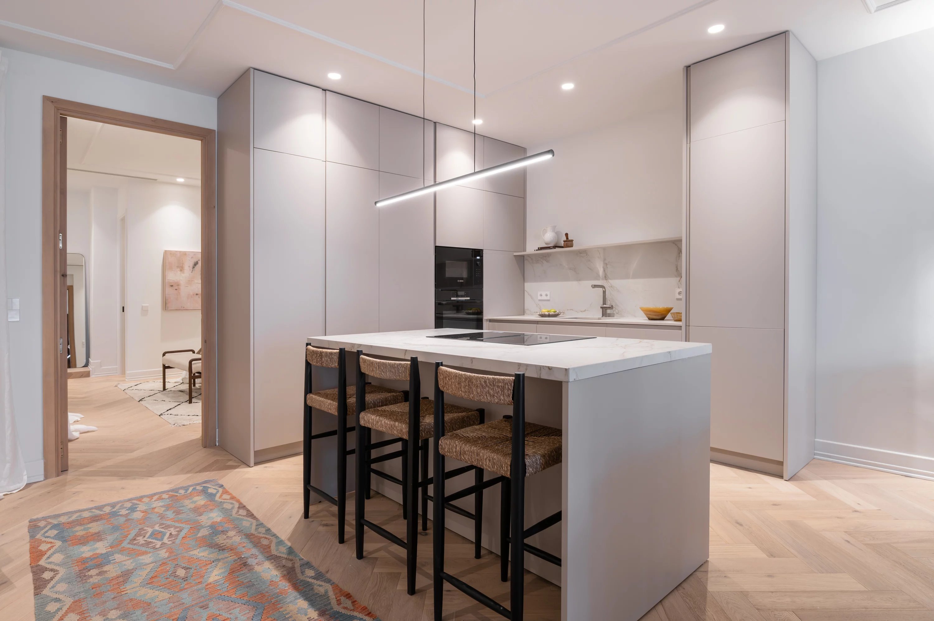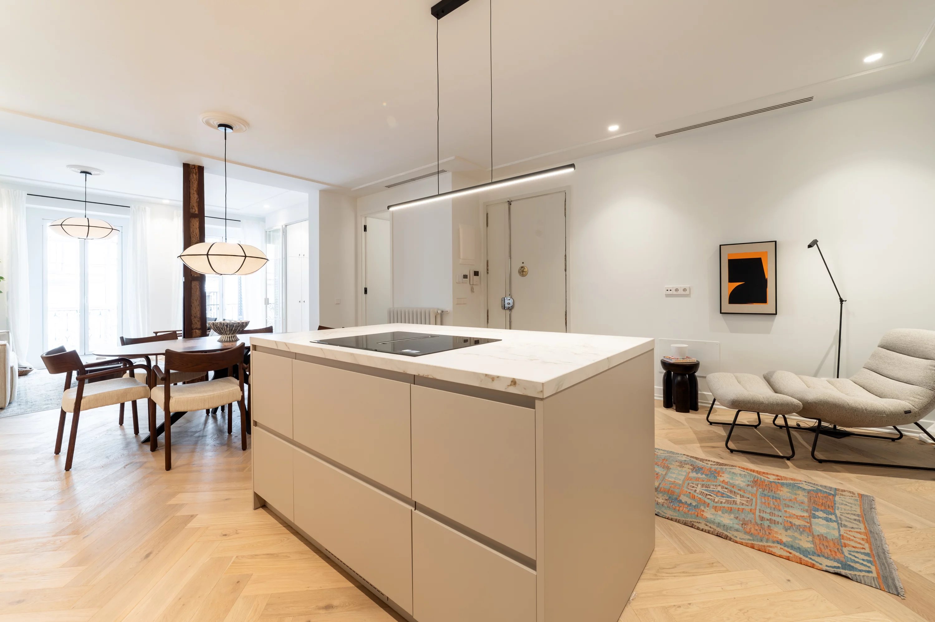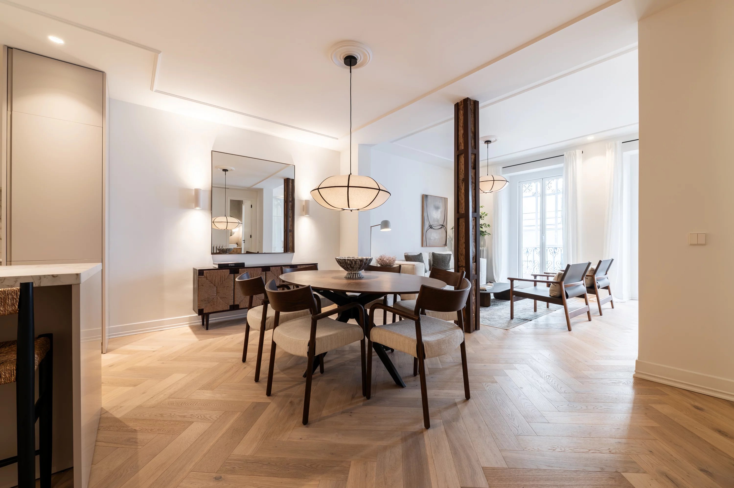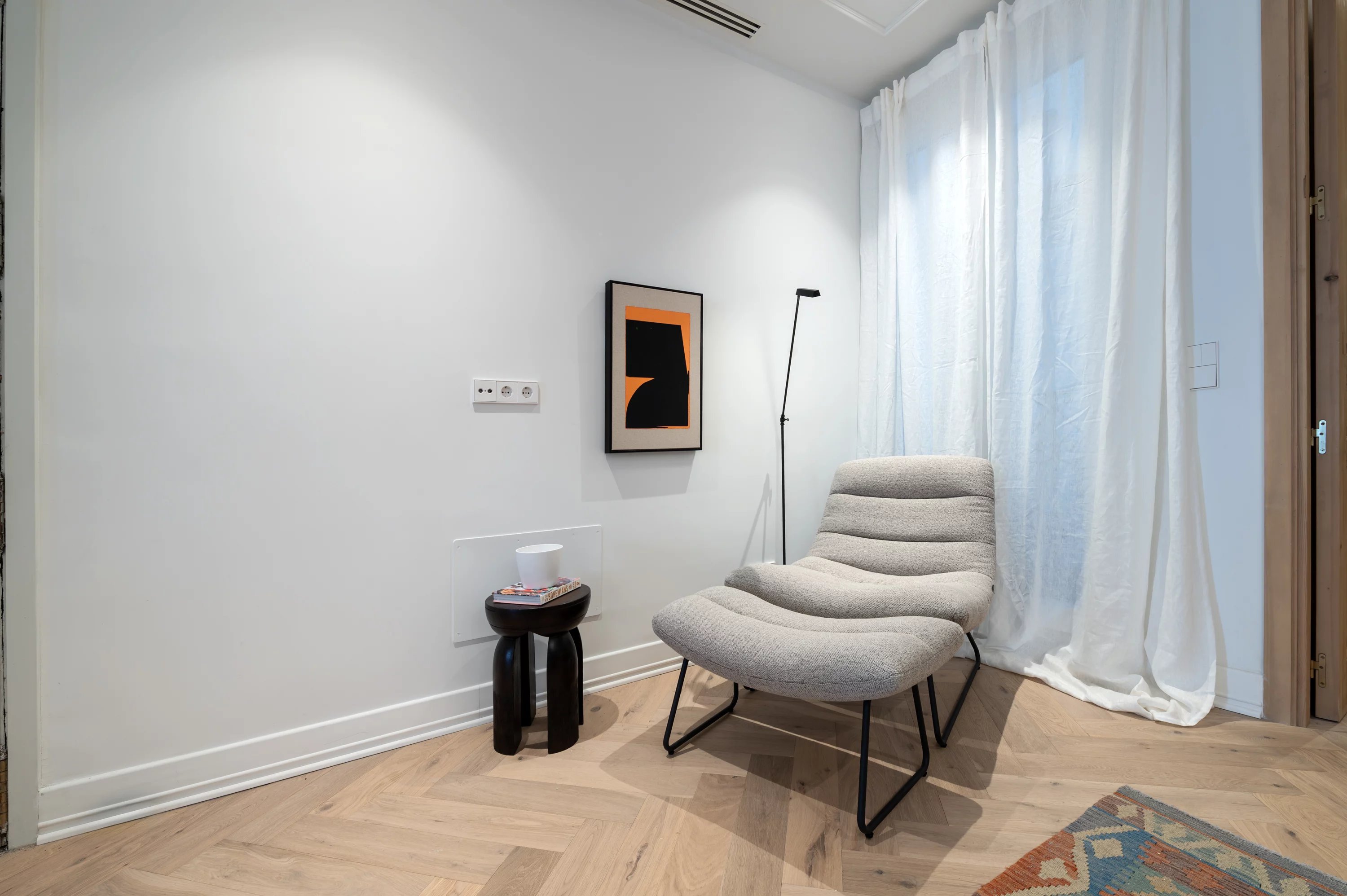Nedílnou součástí rekonstrukce byly ušlechtilé podlahy, designové truhlářské práce, plně vybavená moderní kuchyně a koupelny s prvotřídními povrchovými úpravami, čímž bylo dosaženo dokonalé rovnováhy mezi sofistikovaností a komfortem. Jedinečná příležitost bydlet v jedné z nejvyhledávanějších oblastí Madridu, se vším kouzlem čtvrti a nejvyšší úrovní komfortu.