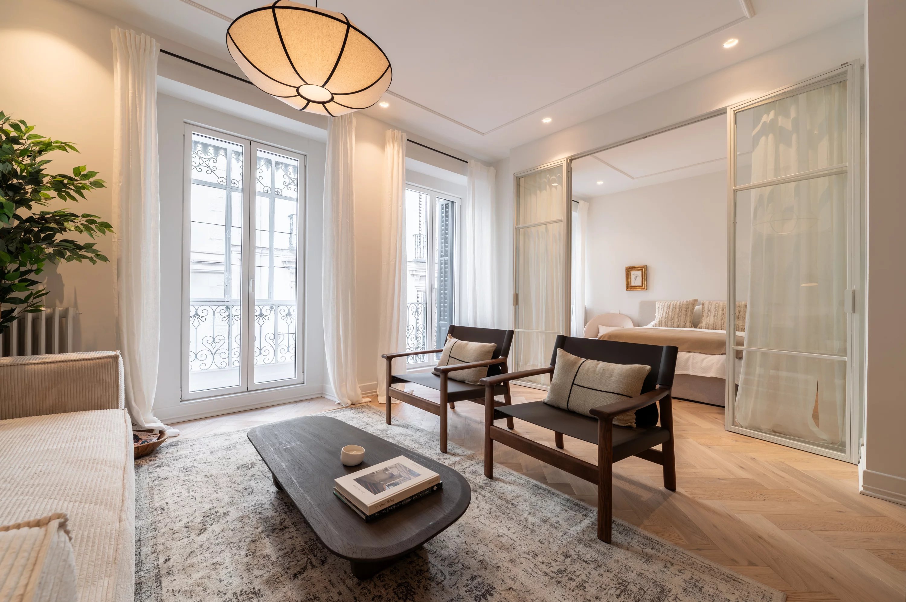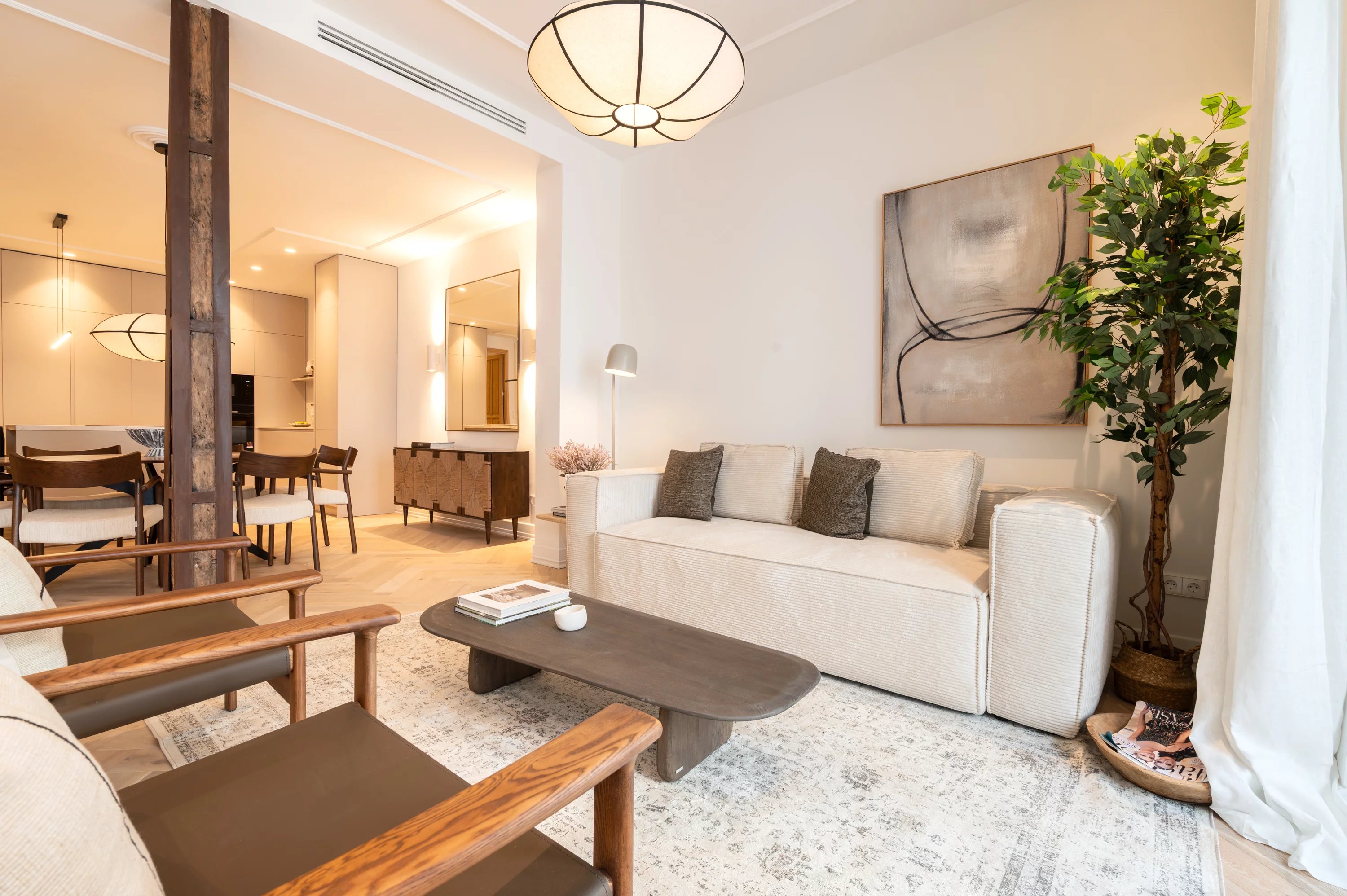 Tento velkolepý nově zrekonstruovaný byt se nachází v srdci čtvrti Justicia a v každém detailu kombinuje moderní eleganci a luxusní povrchovou úpravu. Nemovitost byla navržena s použitím vysoce kvalitních materiálů, přičemž bylo dbáno na každý prvek, který nabízí pohodlí, styl a funkčnost.