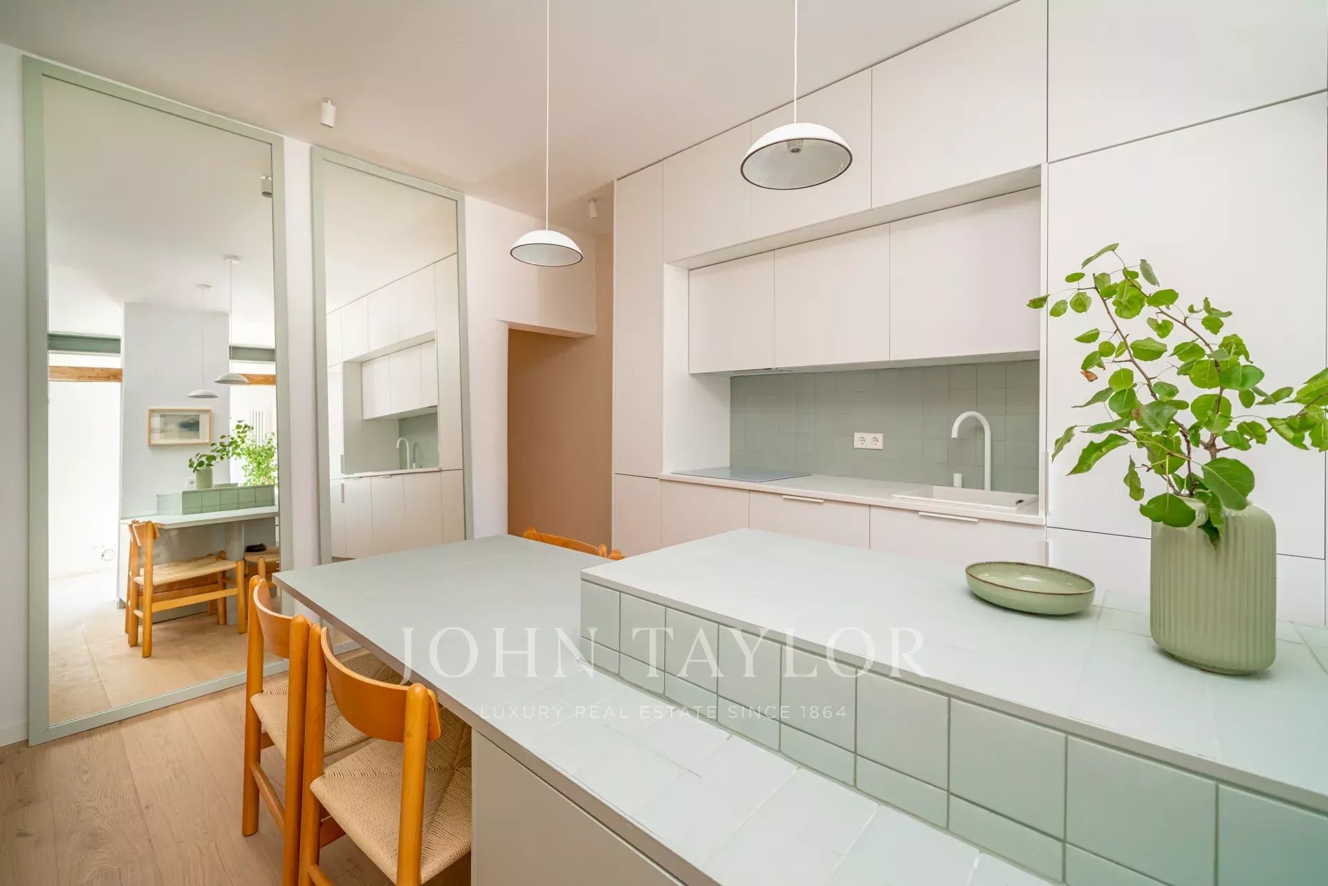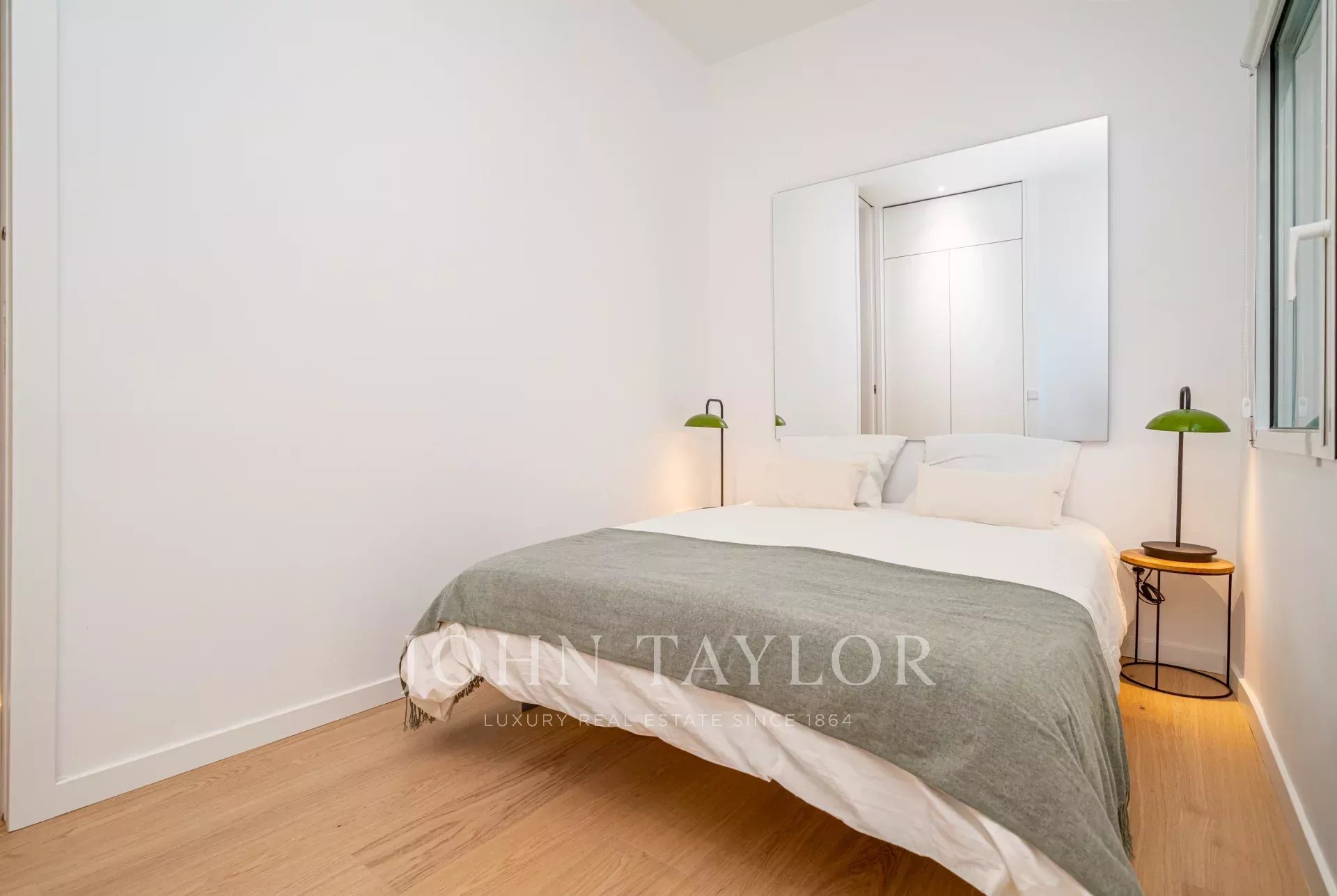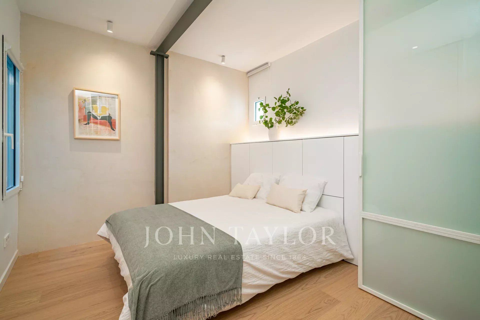 Byt má krásný obývací pokoj s balkonem s výhledem do ulice, vedle kterého se nachází modulární prosklený pokoj se skrytou postelí, který lze využít jako ložnici pro hosty nebo pracovnu. V plně vybavené kuchyni je ostrůvek a jídelní stůl. K dispozici jsou také další dvě ložnice a dvě koupelny, z nichž hlavní má vlastní koupelnu.