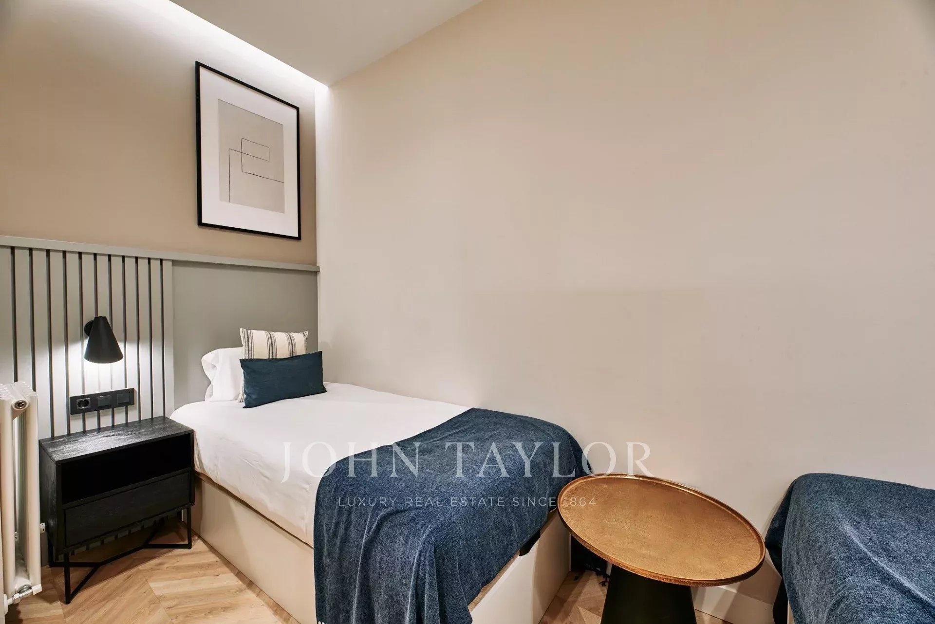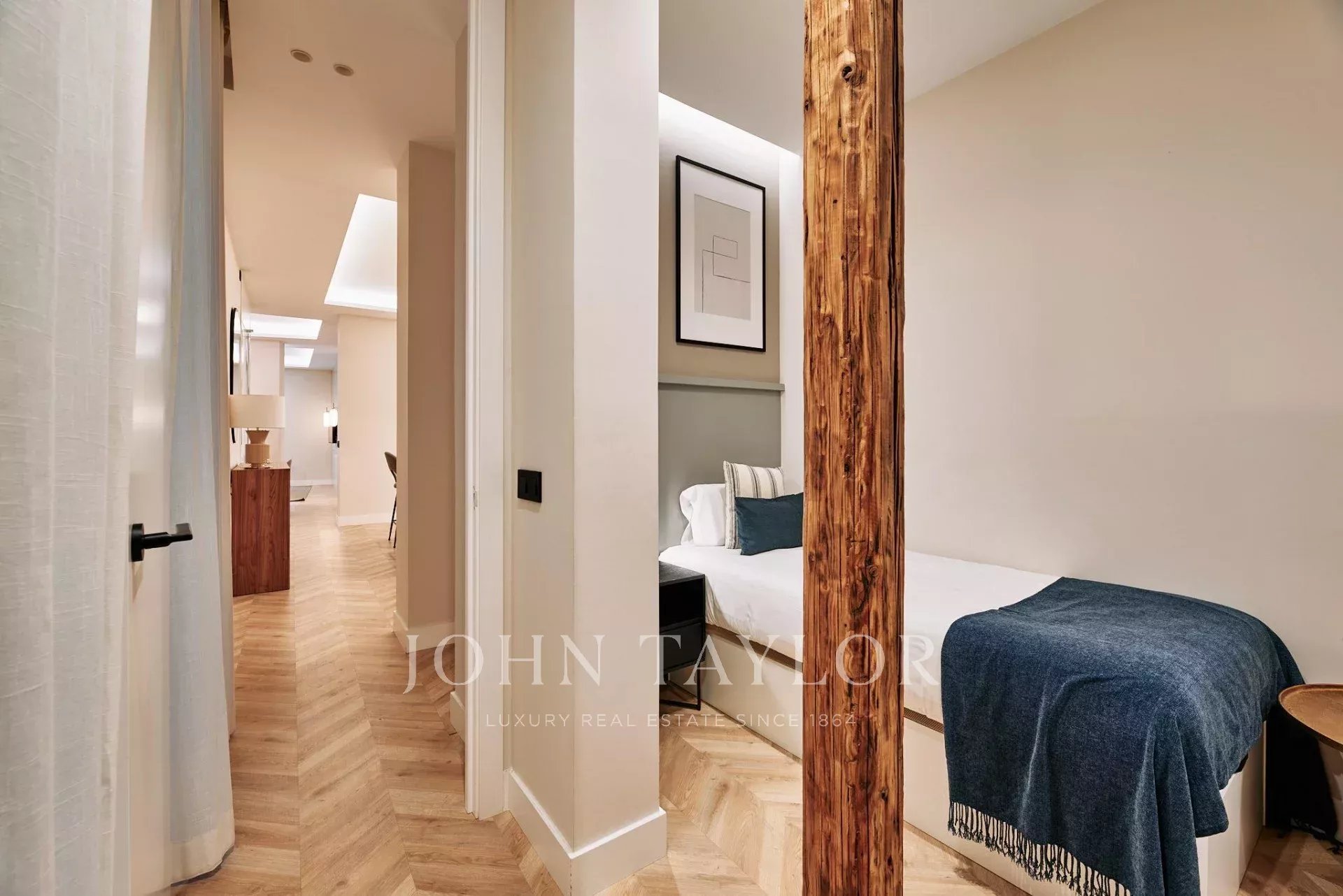 Nemovitost má tři prostorné ložnice a tři kompletní koupelny, z nichž dvě mají vlastní koupelnu, což poskytuje soukromí a pohodlí v každém pokoji. Dispozice byla koncipována tak, aby optimalizovala vstup přirozeného světla, doplněného pečlivě vybraným LED osvětlením, které zvýrazňuje dřevěné povrchy a na zakázku vyrobený designový nábytek.
