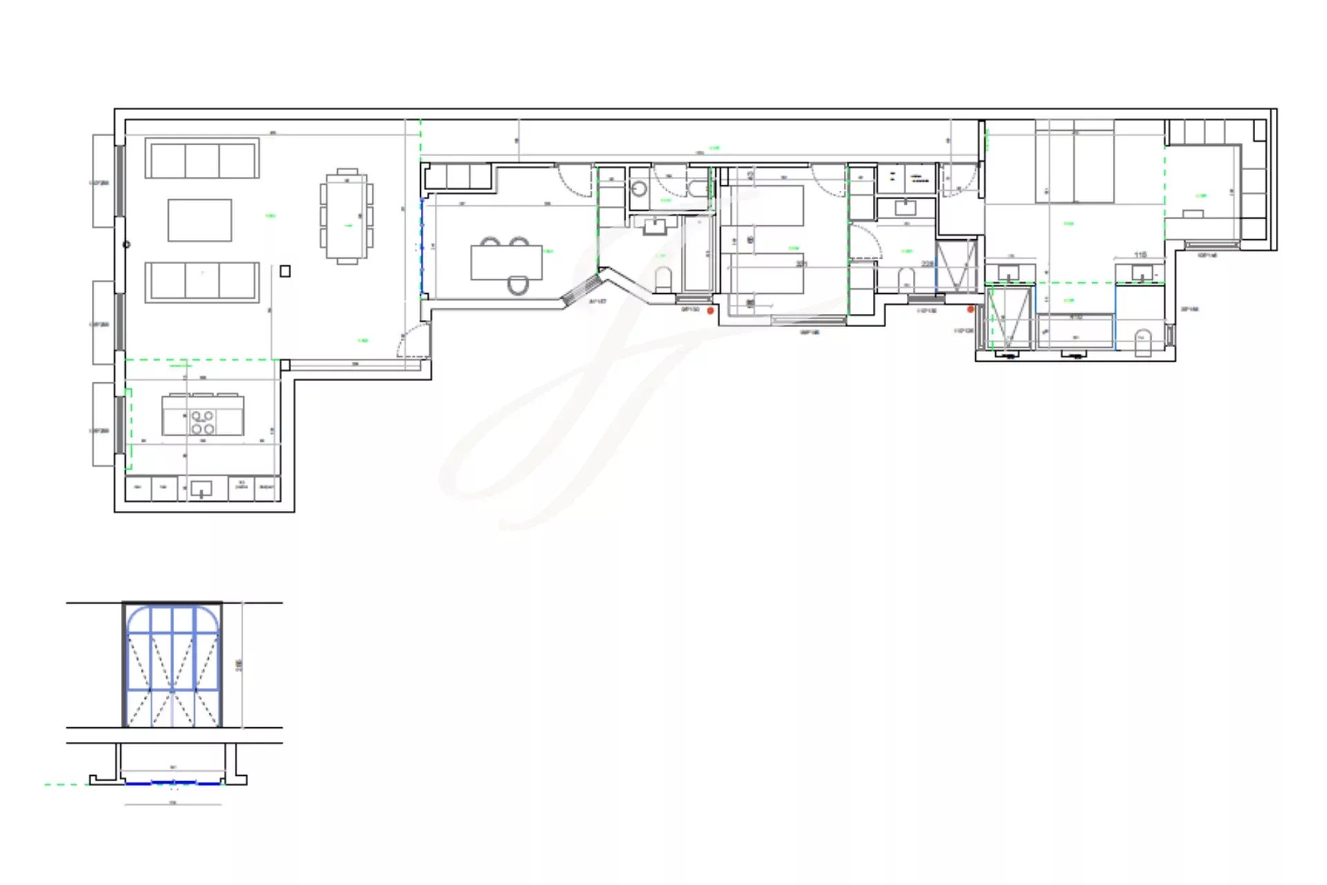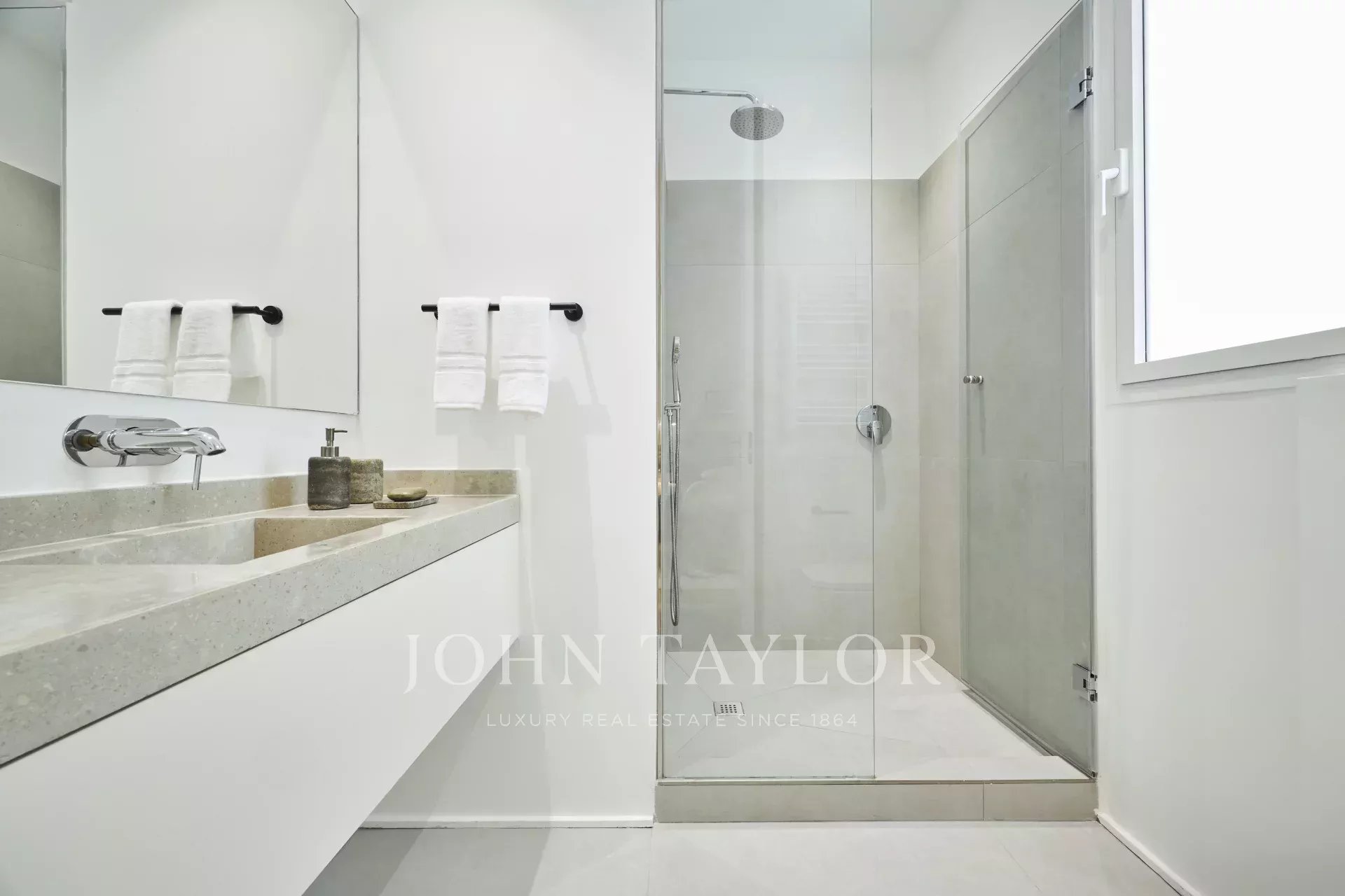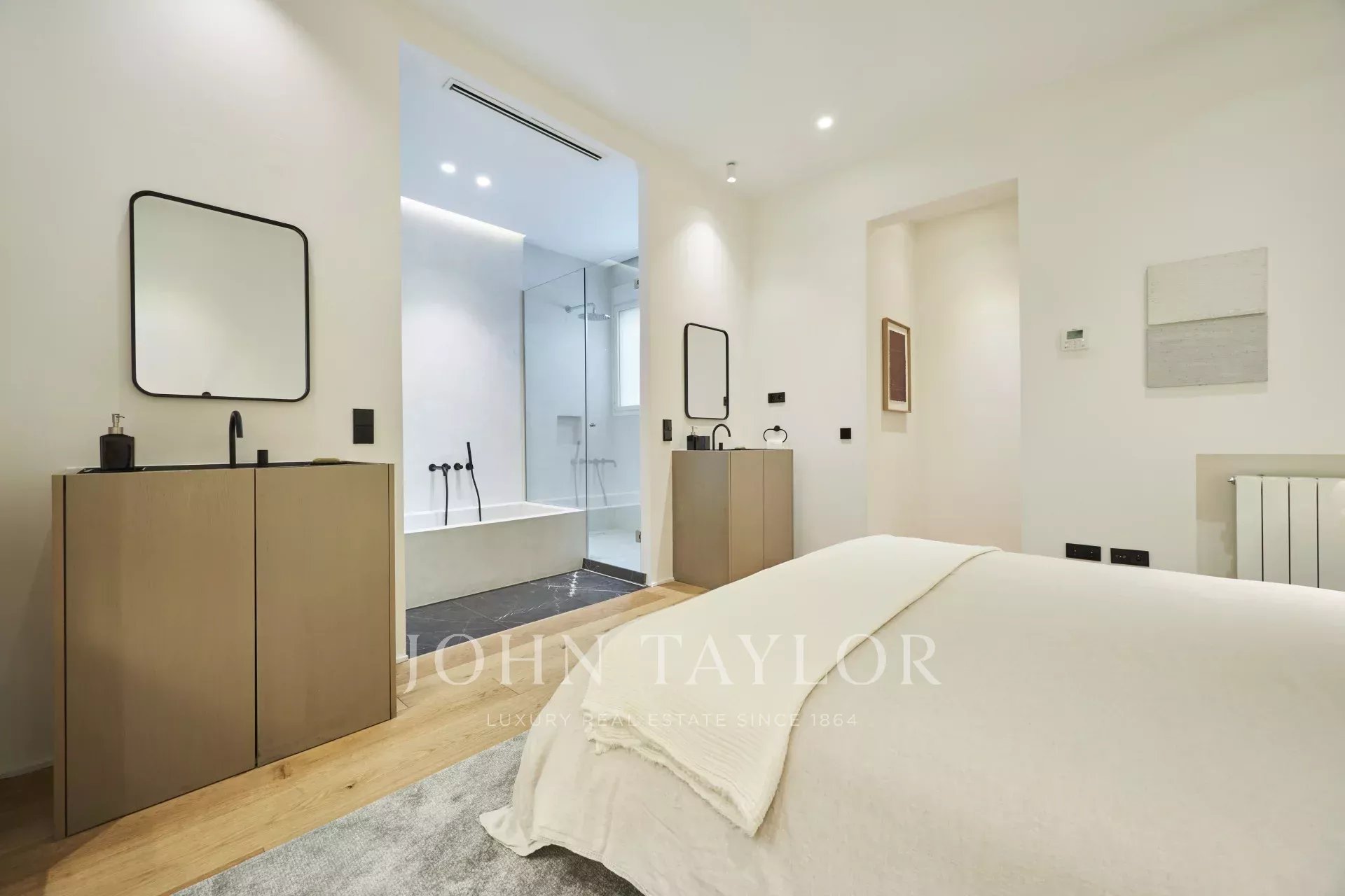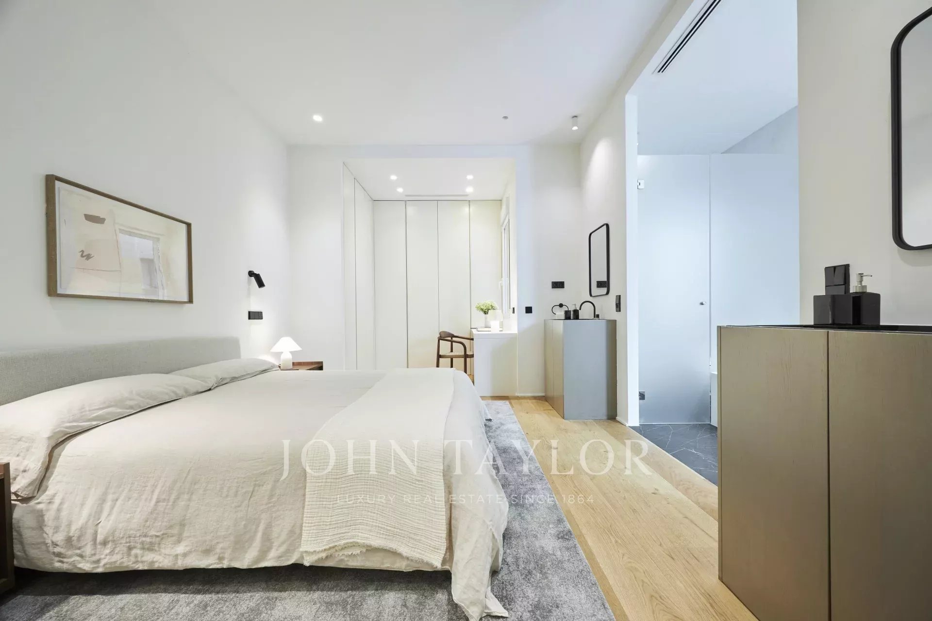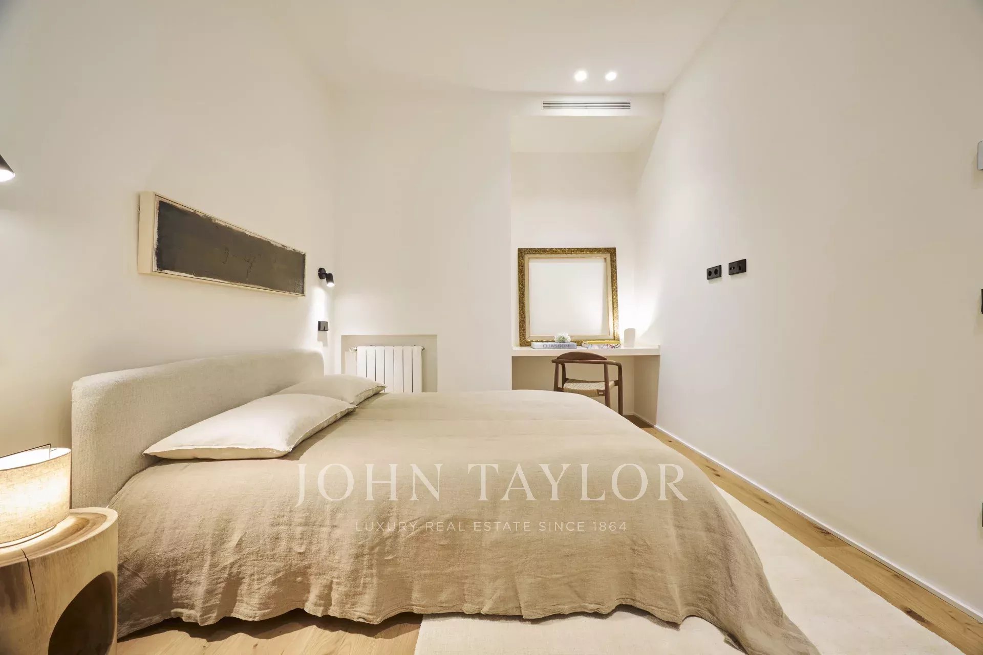 Má tři prostorné ložnice, každou s vlastní koupelnou, toaletu pro hosty a komoru, což nabízí dokonalé rozložení, které umocňuje přirozené světlo a eleganci každého pokoje.
