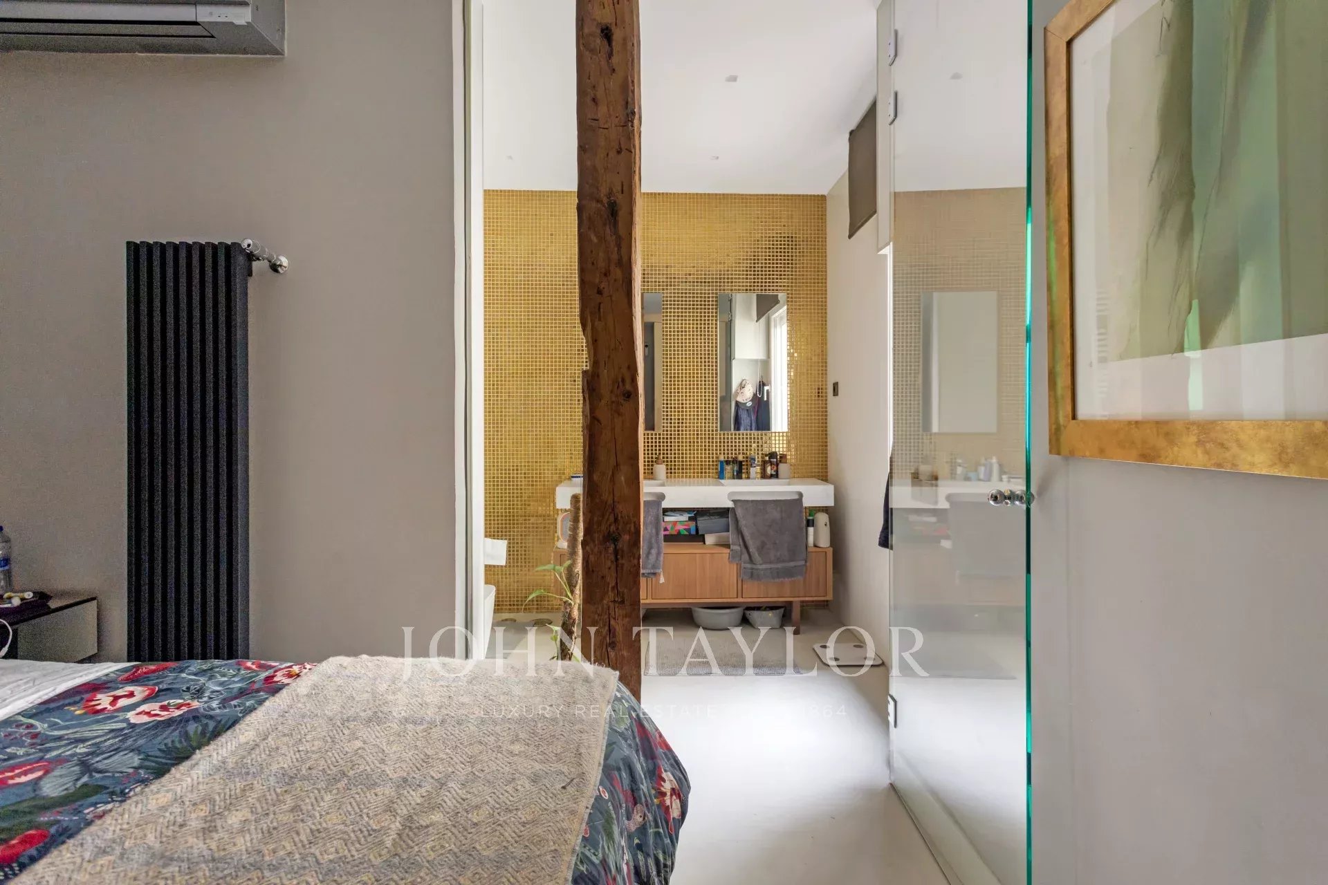 Společenská zóna, koncipovaná s vytříbeným vkusem, zve ke sdílení nezapomenutelných okamžiků nebo k prostému vychutnávání klidu soukromého a harmonického prostředí. Dva elegantní a světlé pokoje odrážejí vytříbenou estetiku, která kombinuje funkčnost a styl, ideální pro ty, kteří hledají moderní domov v jedné z nejdynamičtějších evropských metropolí.