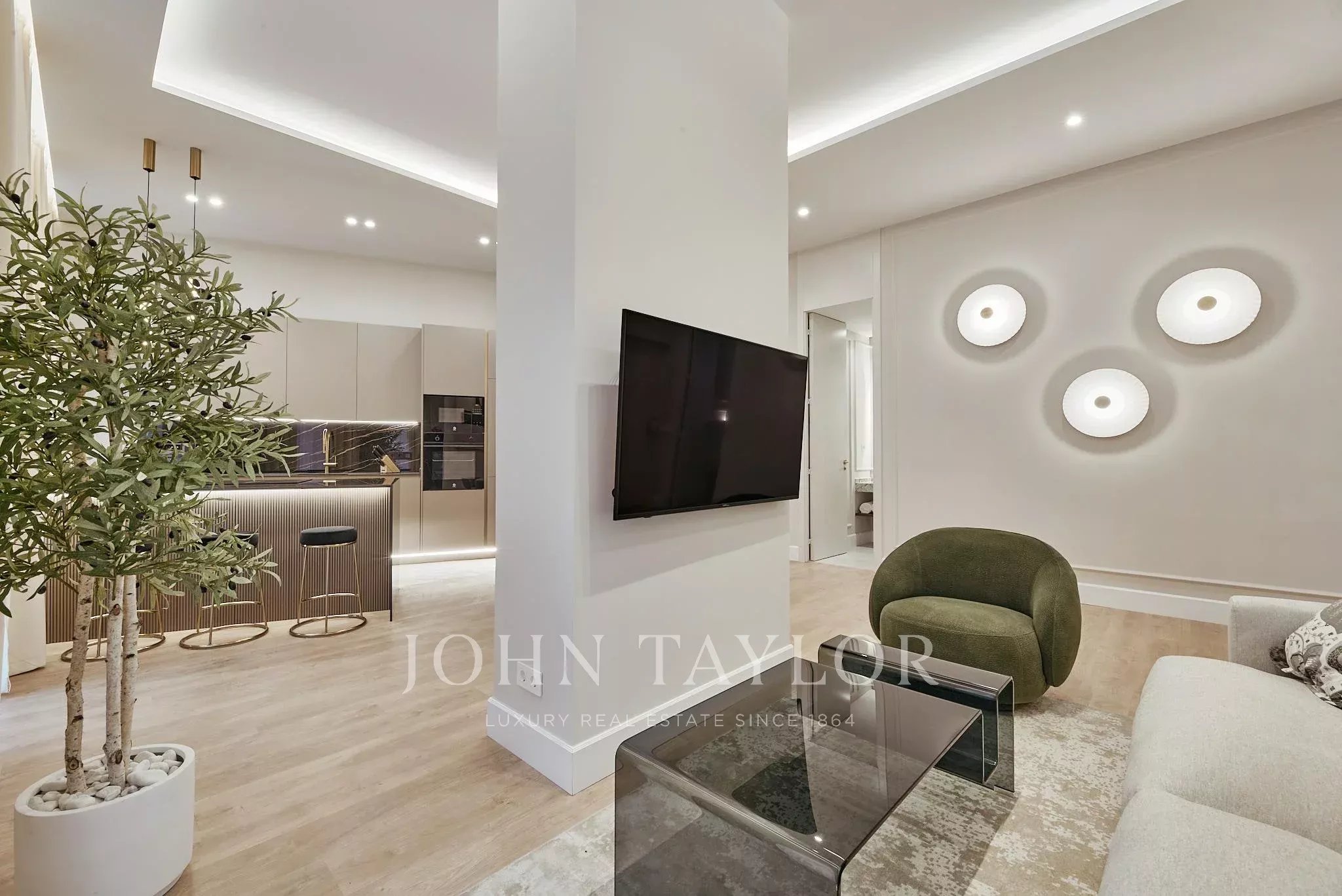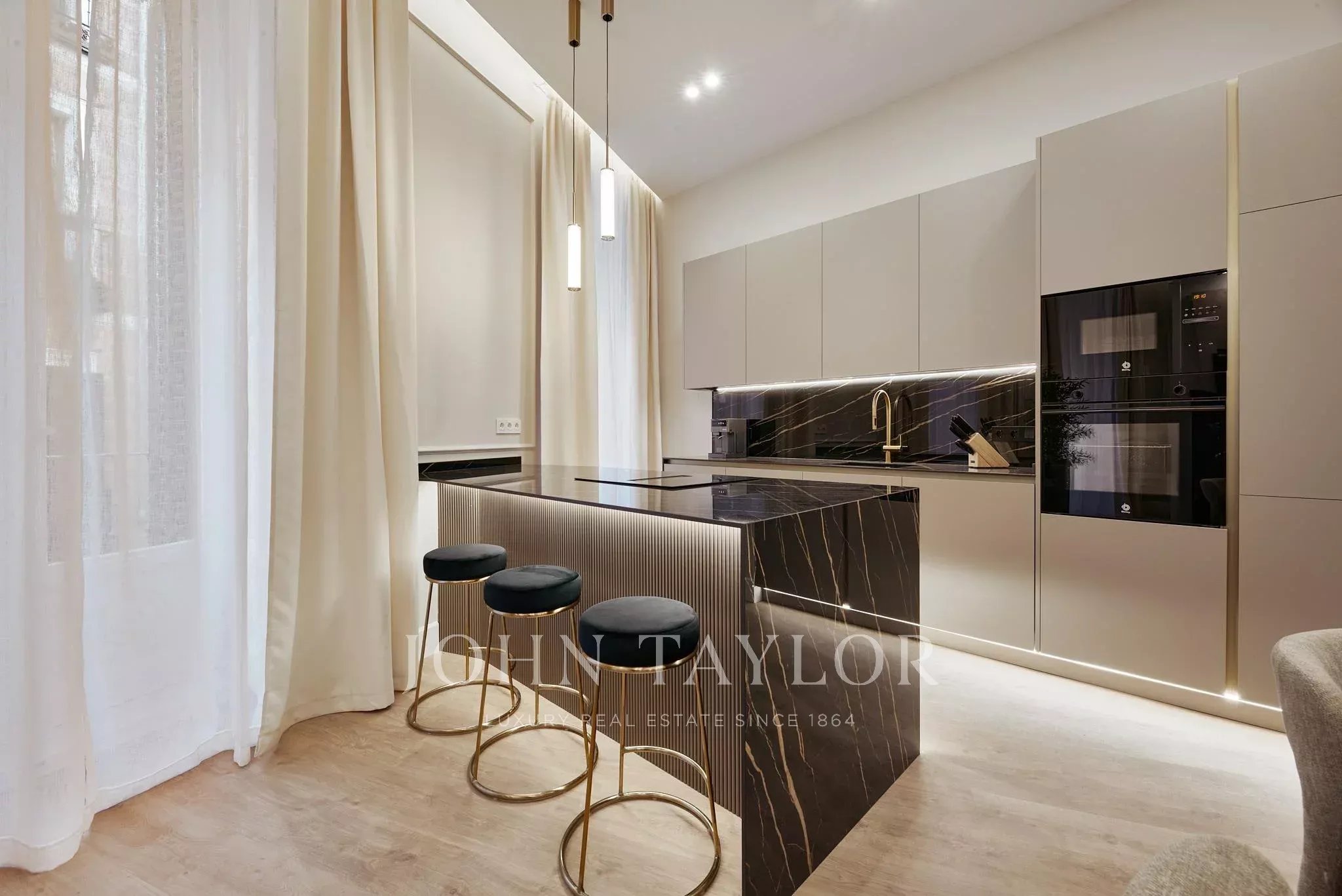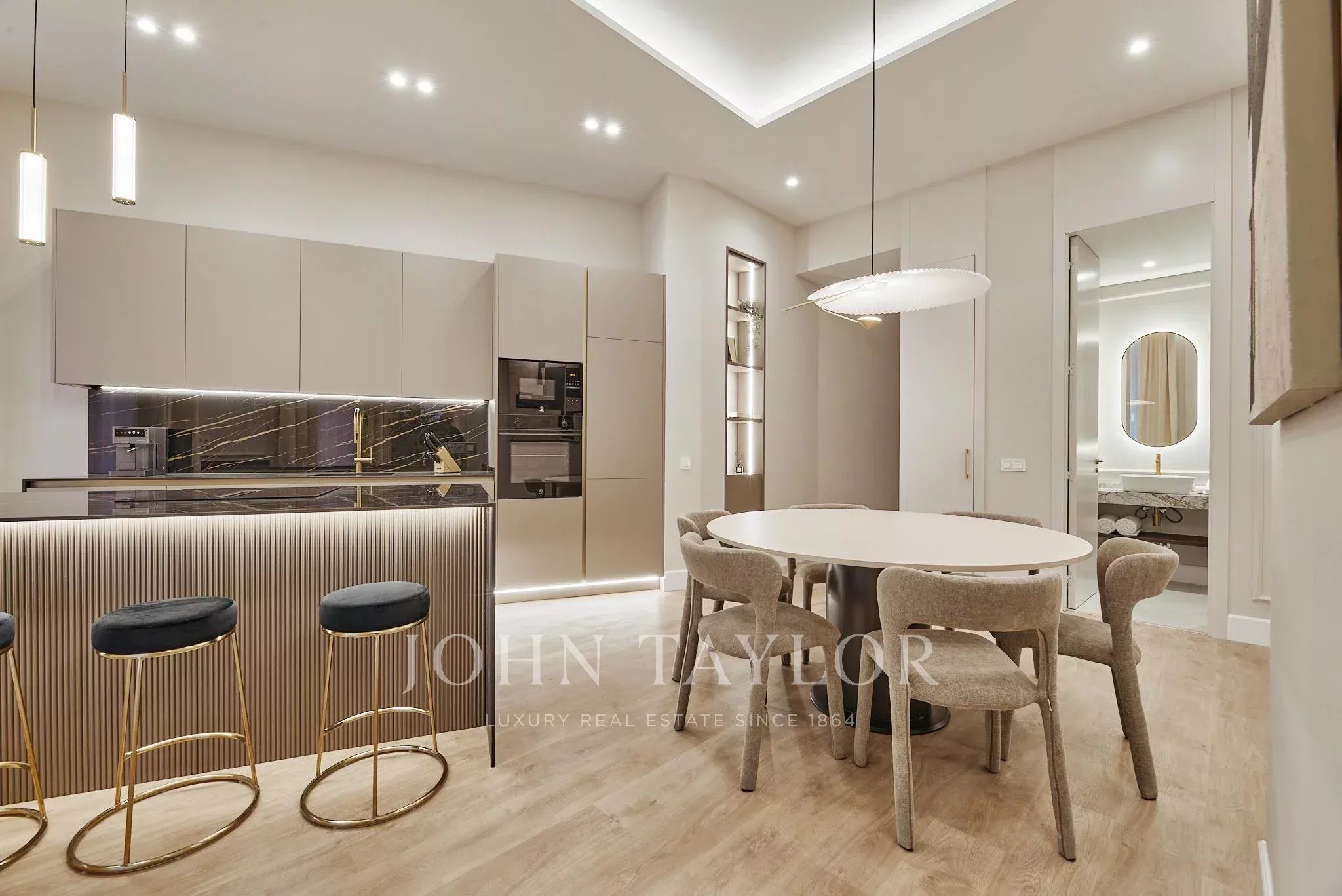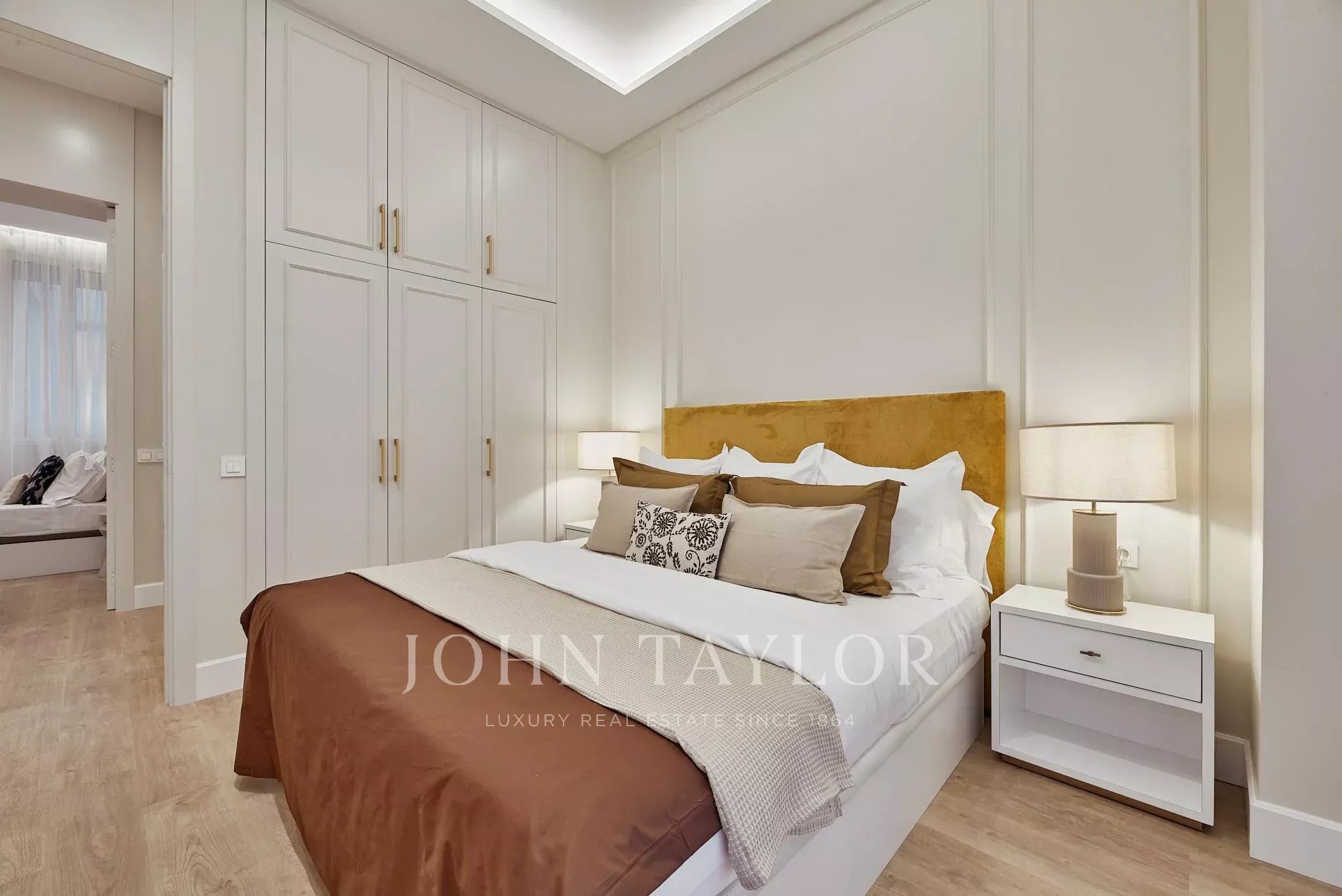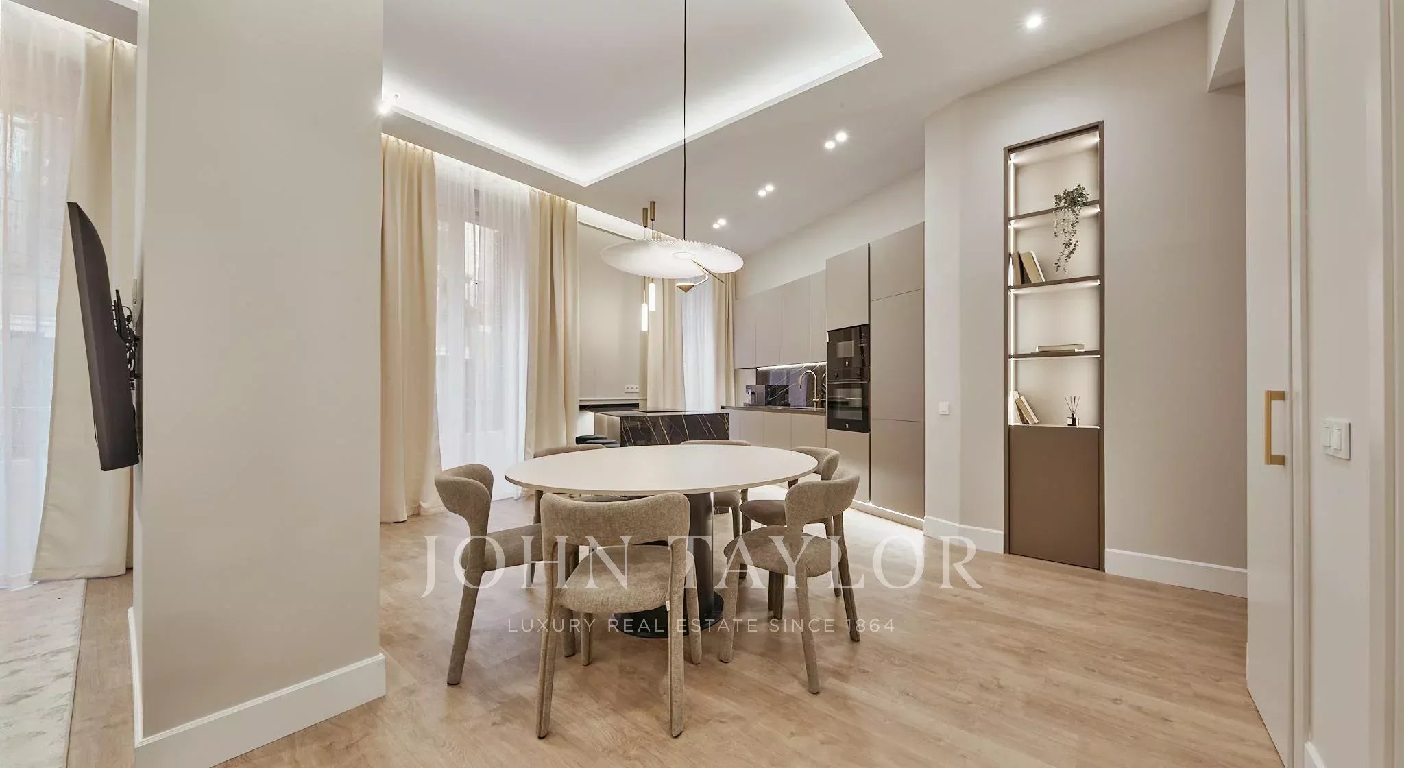 Exteriérové bydlení 146 m² nacházející se v dynamické čtvrti Univerzita, v samotném centru Madridu. Nachází se v prestižní klasické budově z roku 1900 s výtahem, nemovitost kombinuje půvaby původní architektury s pečlivou celkovou rekonstrukcí ve současném stylu.