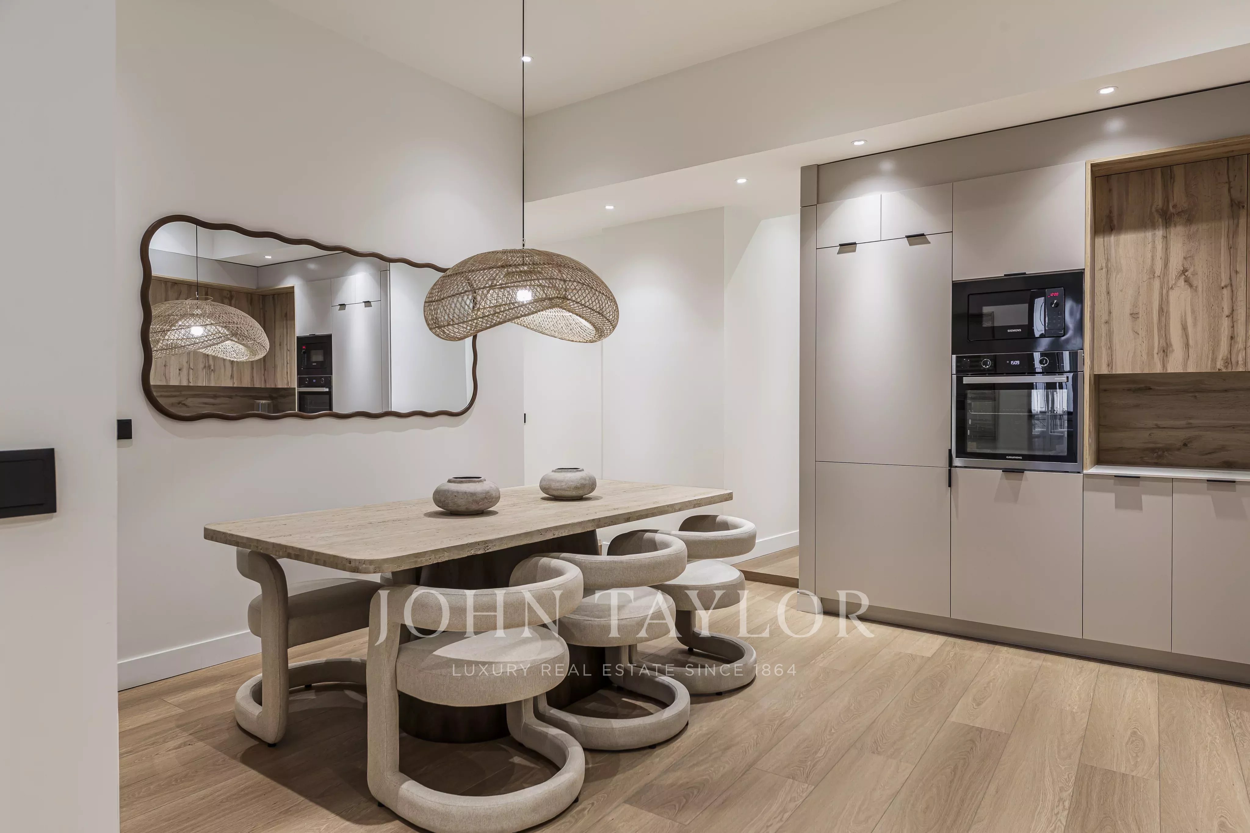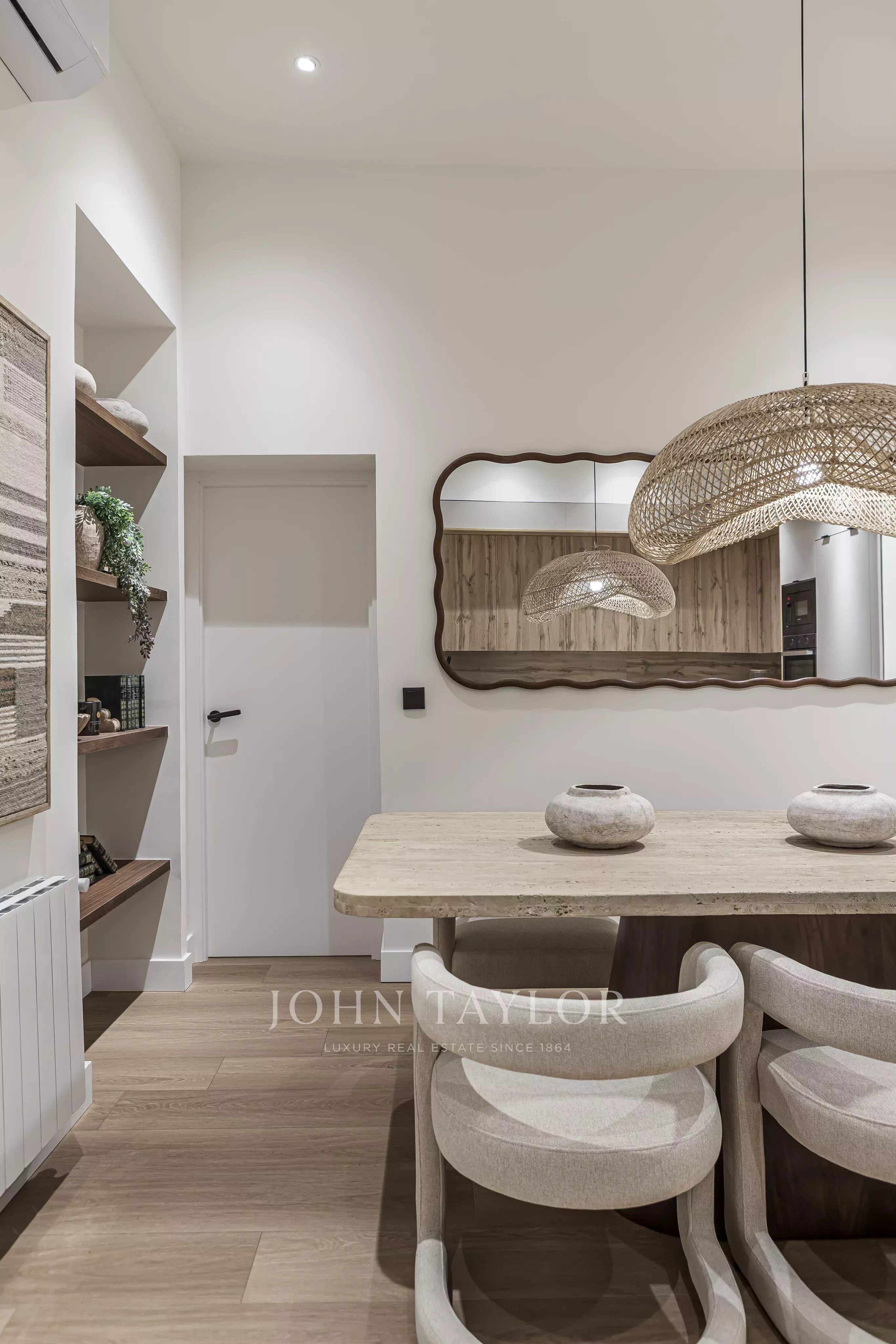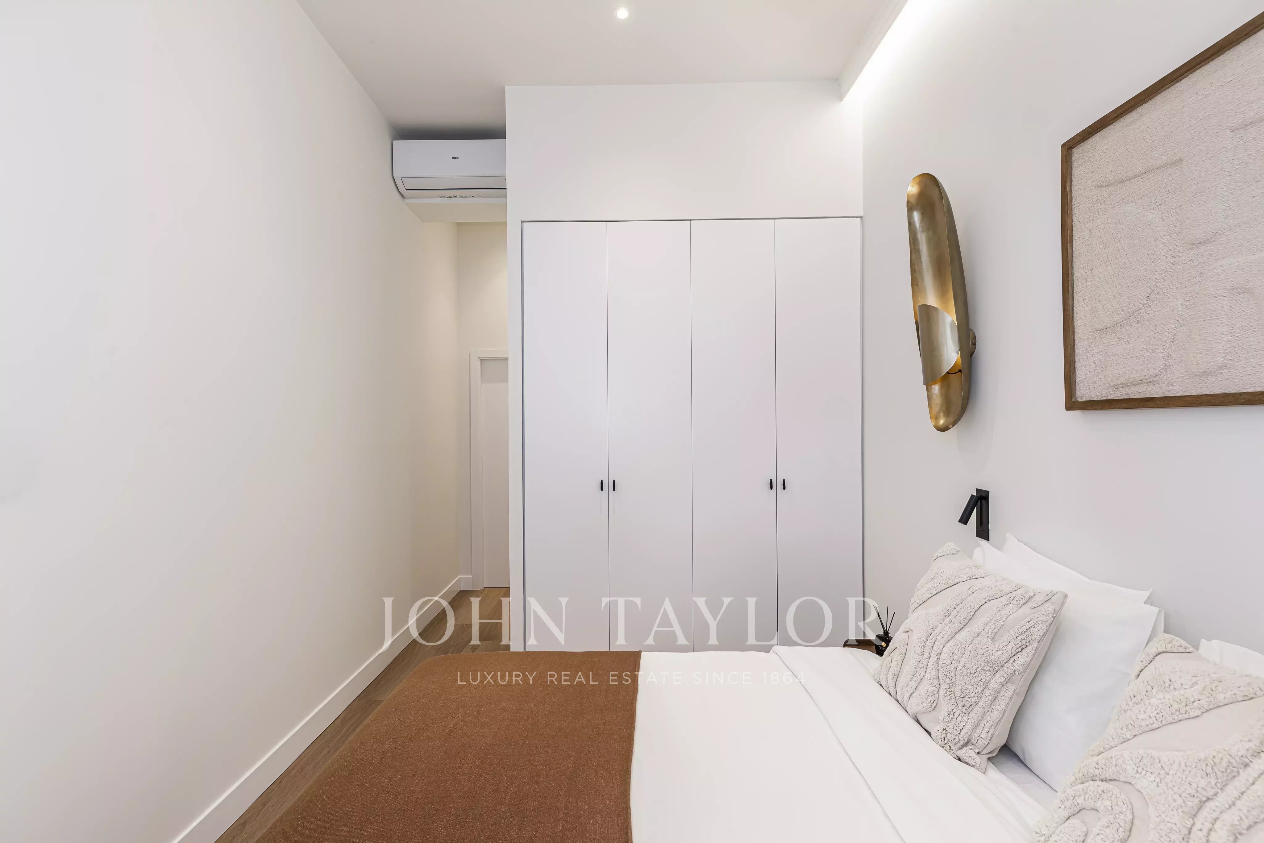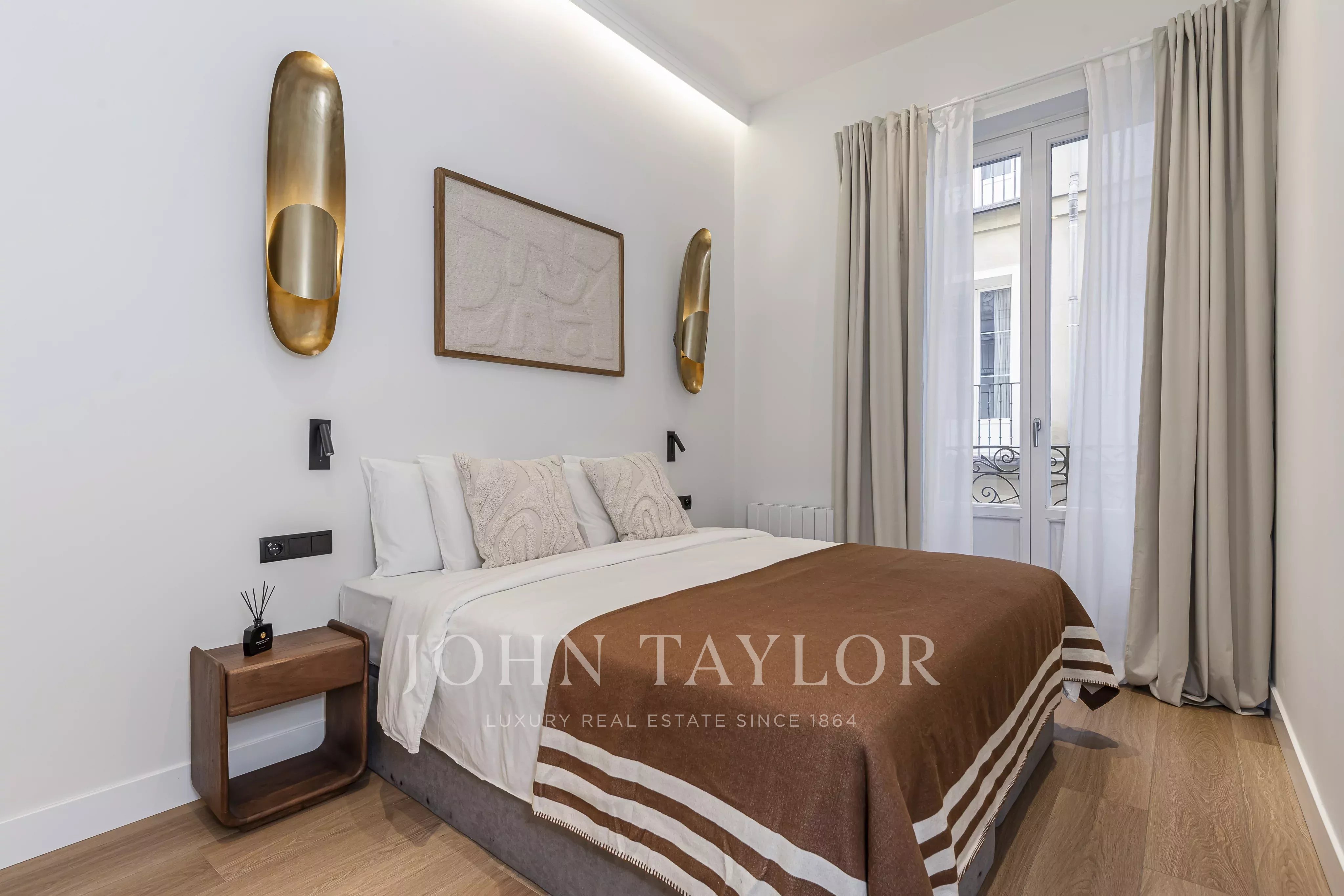Nachází se v prvním patře budovy, s elegantními prosklenými balkony v obývacím pokoji a hlavní ložnici, které si zachovávají svůj původní půvab.