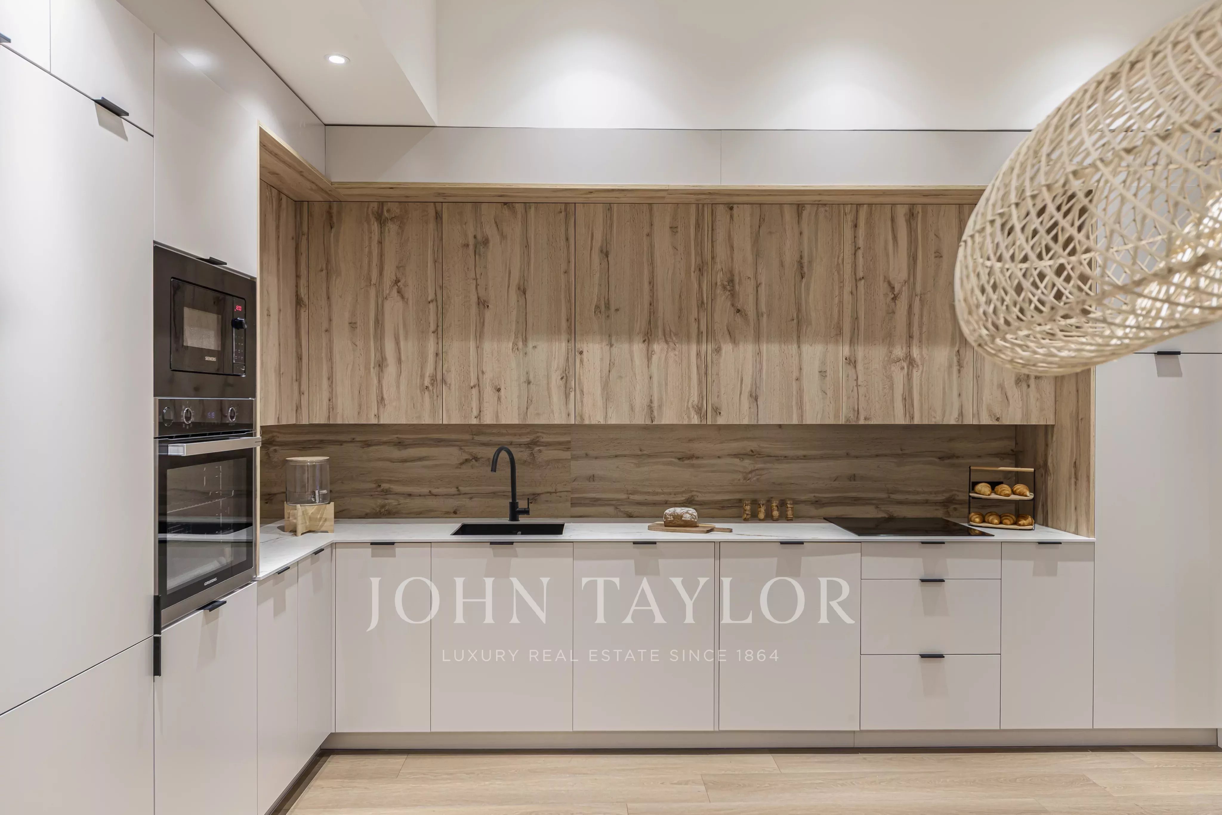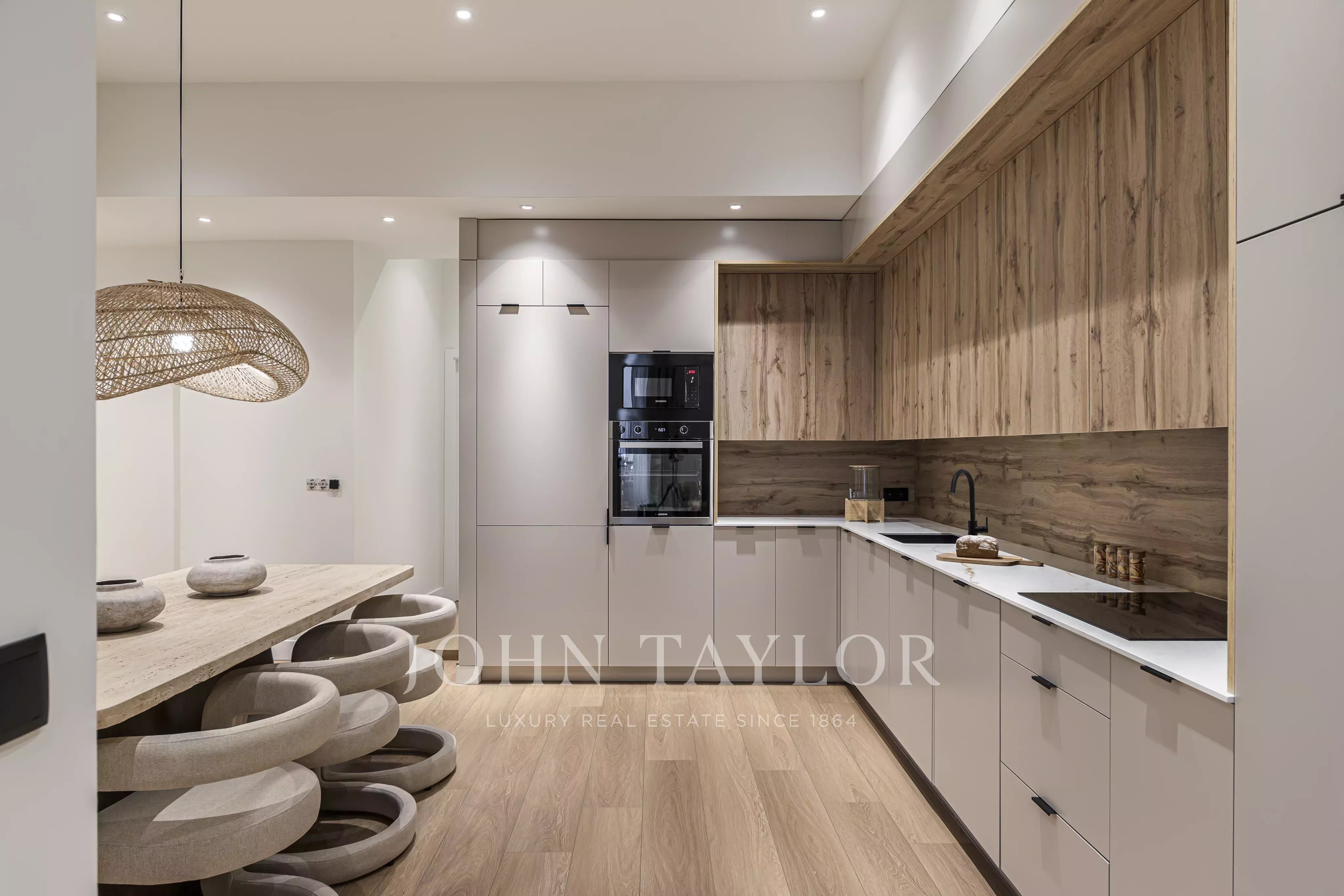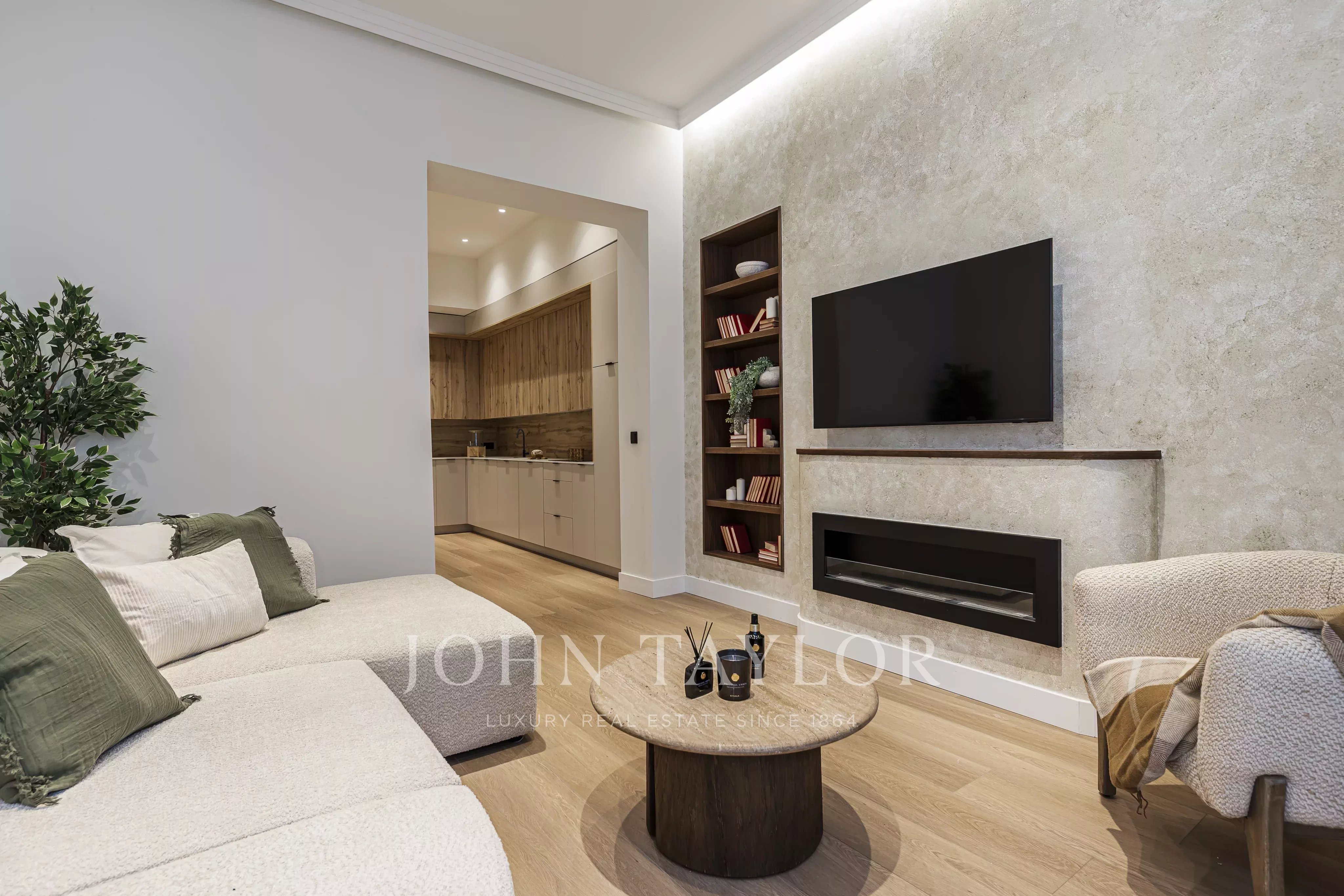 Nachází se v prvním patře budovy, s elegantními prosklenými balkony v obývacím pokoji a hlavní ložnici, které si zachovávají svůj původní půvab.
