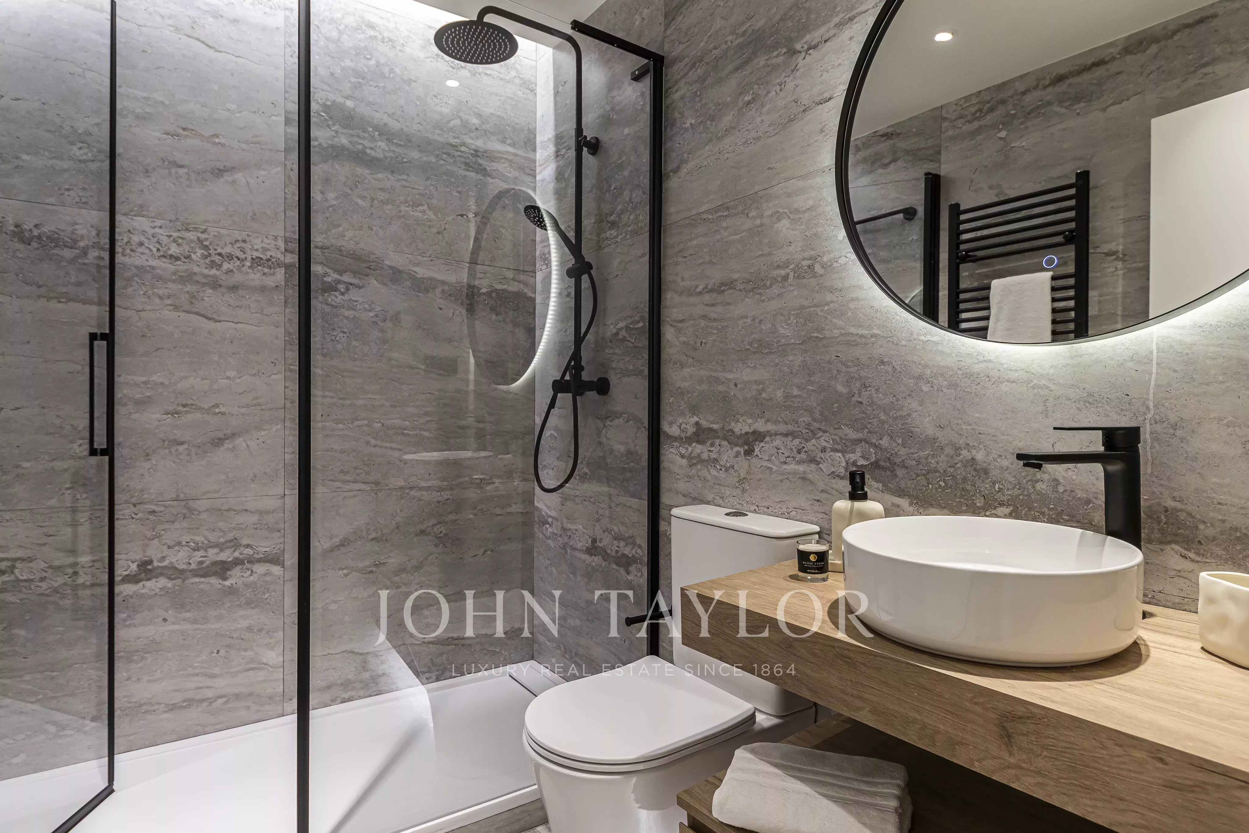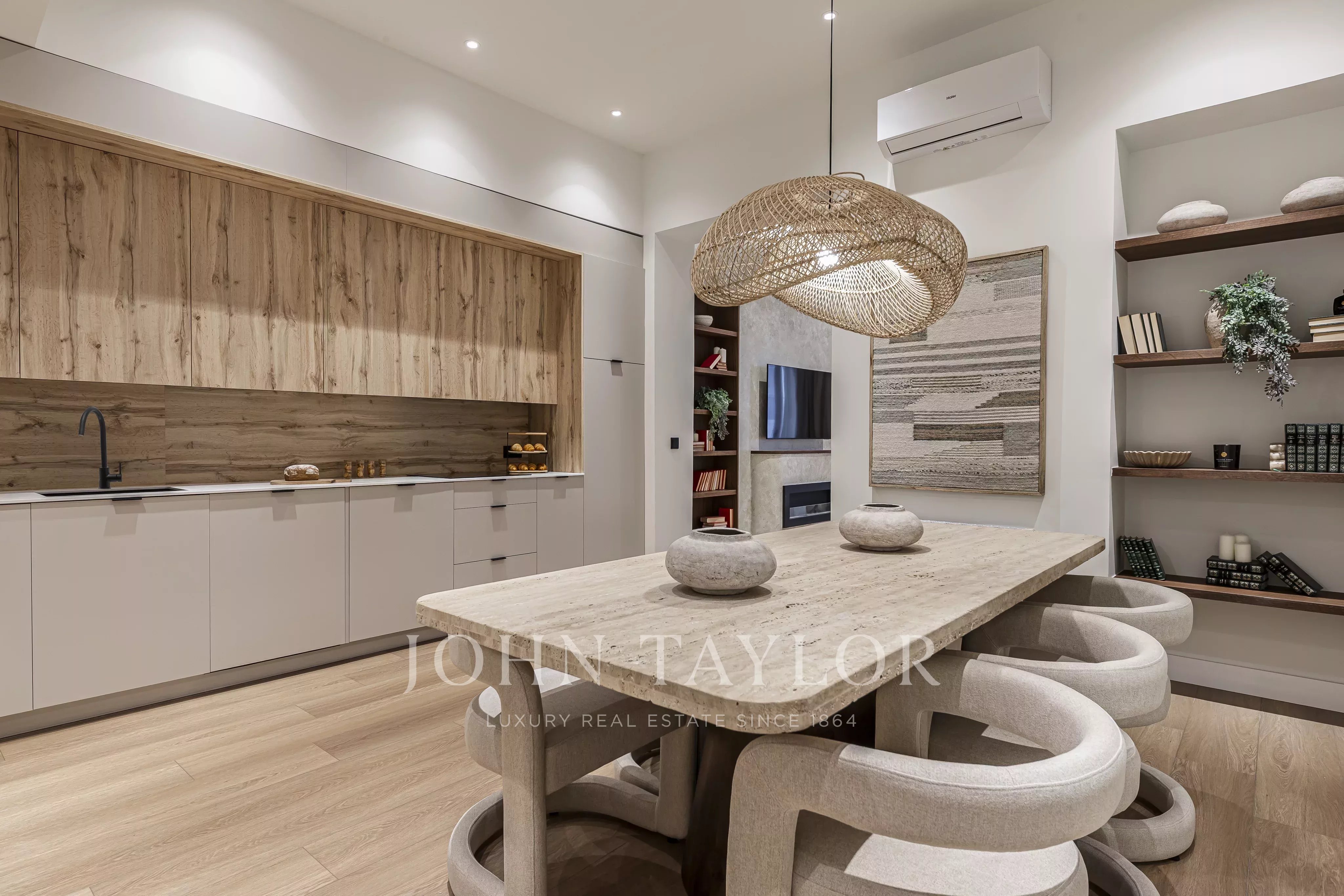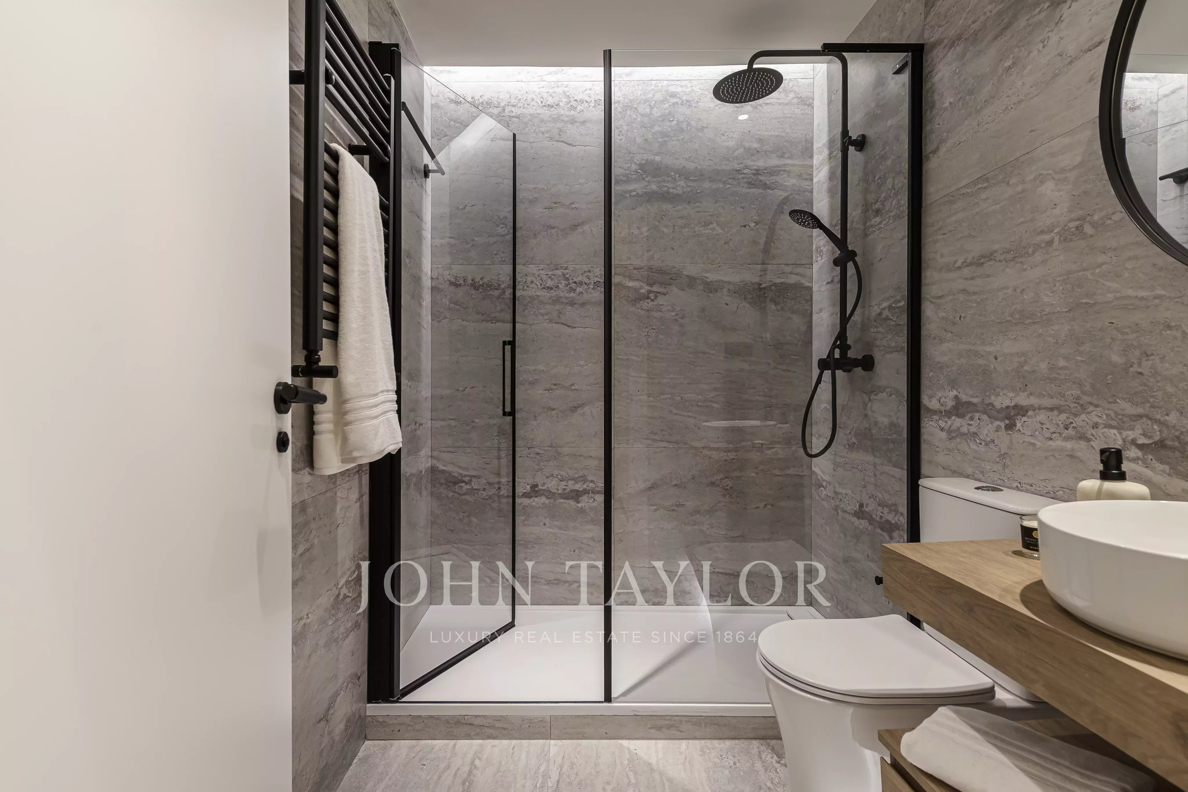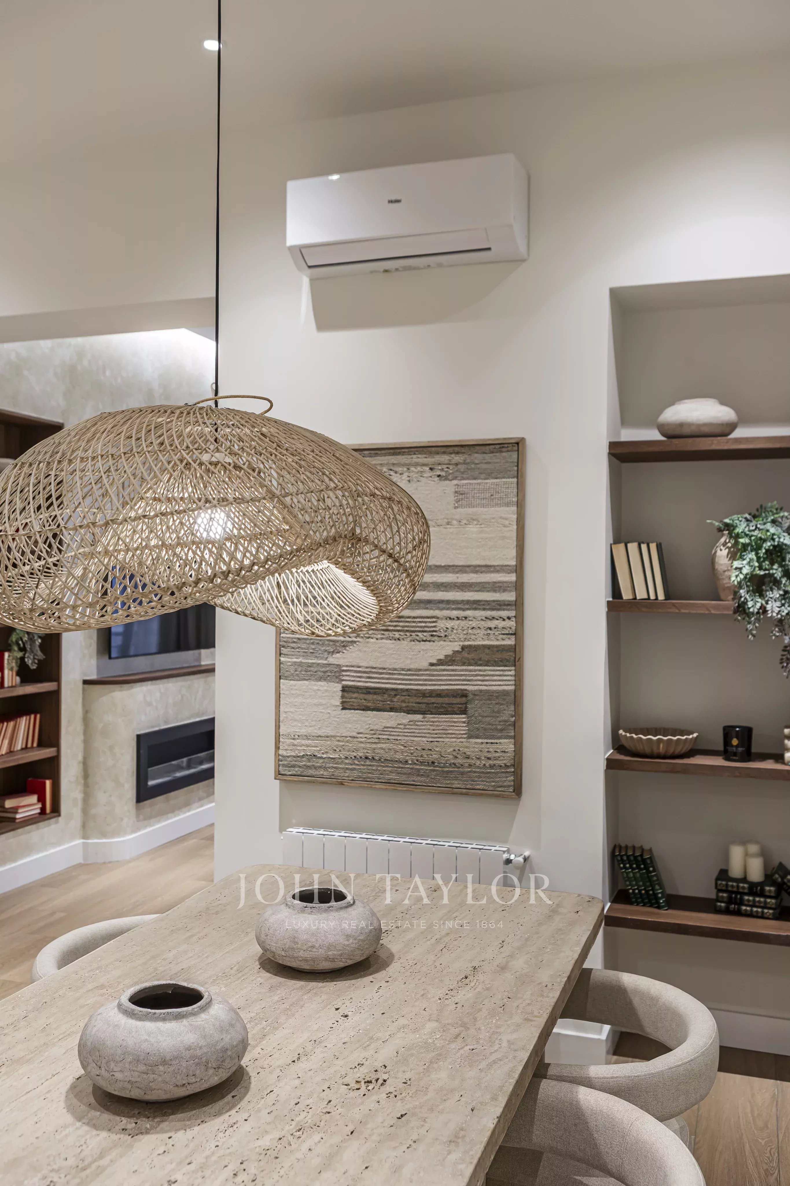 Nachází se v prvním patře budovy, s elegantními prosklenými balkony v obývacím pokoji a hlavní ložnici, které si zachovávají svůj původní půvab.