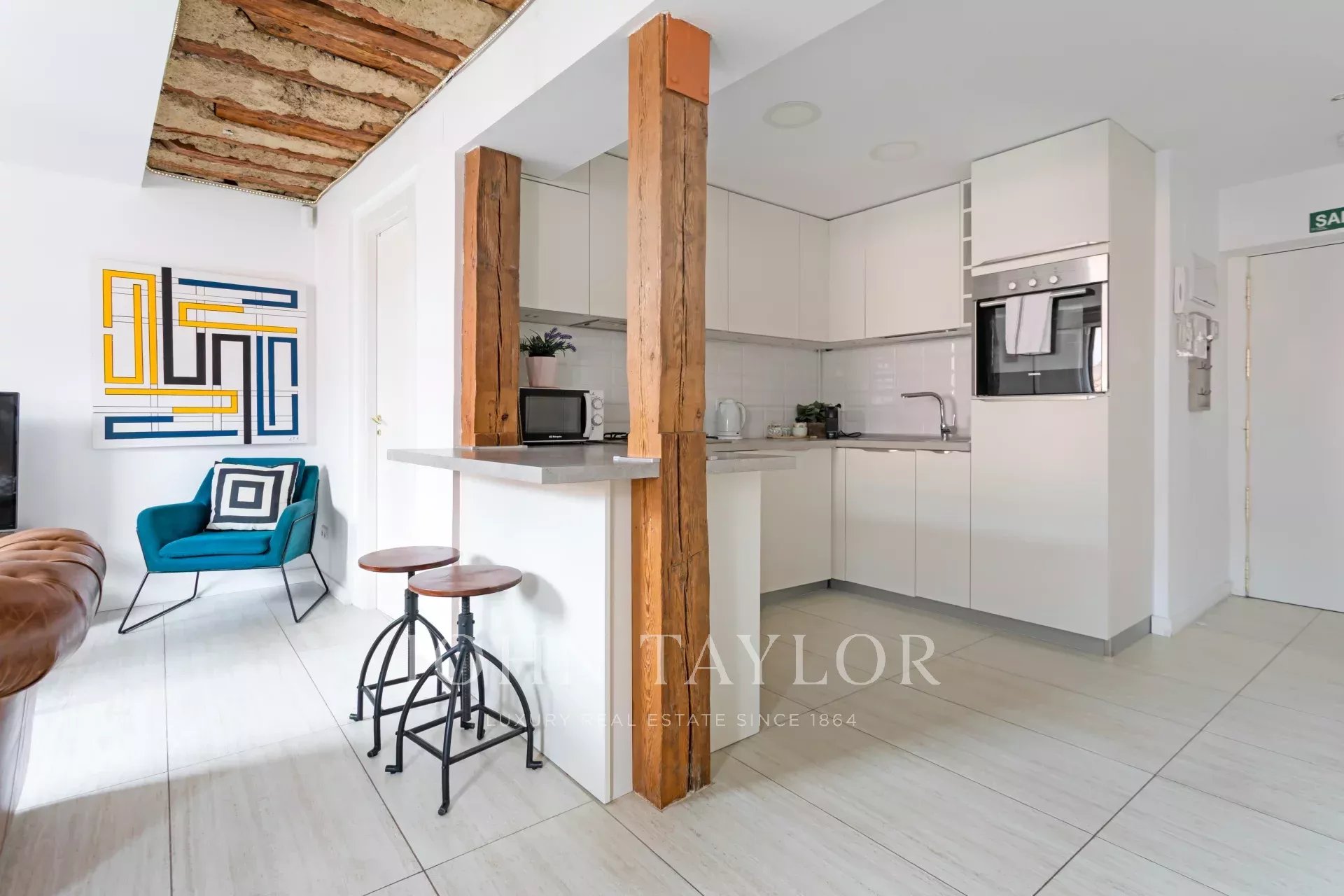 V jedné z nejživějších čtvrtí města, v krásné klasické budově z roku 1900, se nachází tento krásný byt, kompletně zrekonstruovaný, zařízený a připravený k bydlení. Nachází se v nejvyšším patře budovy, se dvěma okny orientovanými na jihovýchod, takže se těší skvělému přirozenému světlu. Jeho inteligentní rekonstrukce maximálně využívá prostor a zachovává původní ráz budovy s odhalenými dřevěnými trámy na stropech a stěnách.