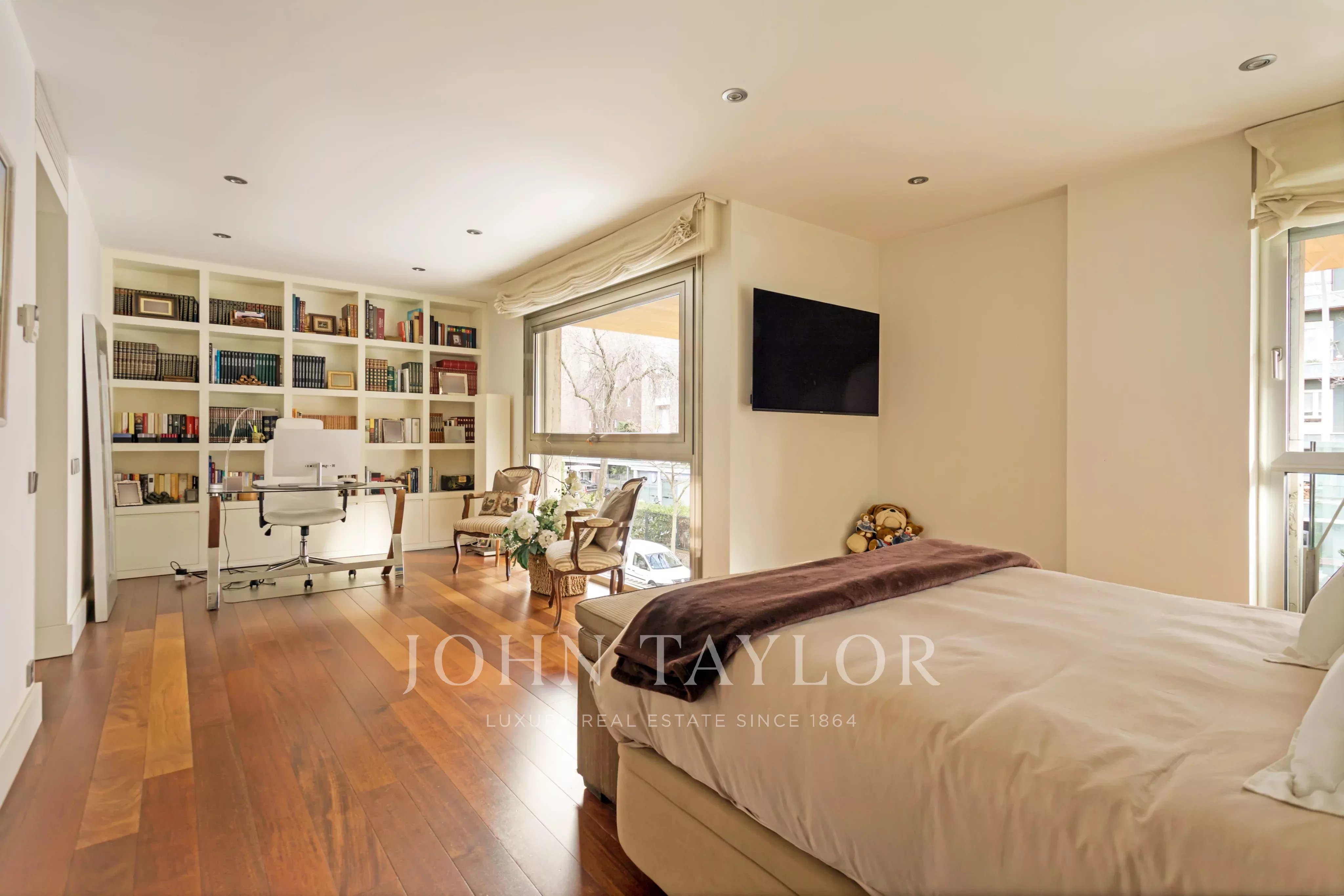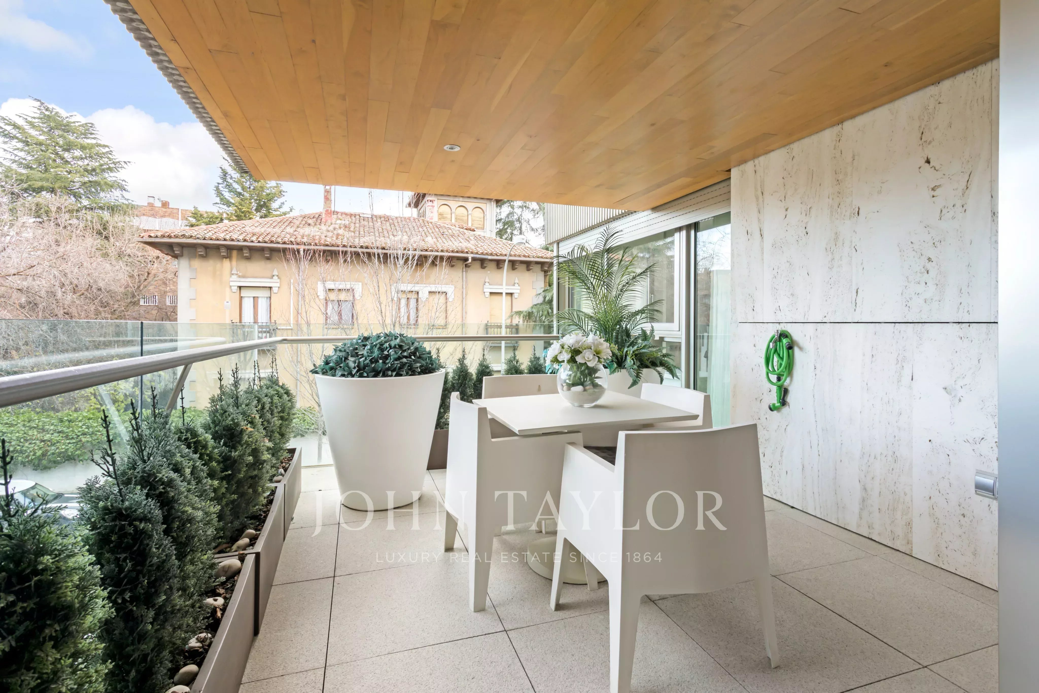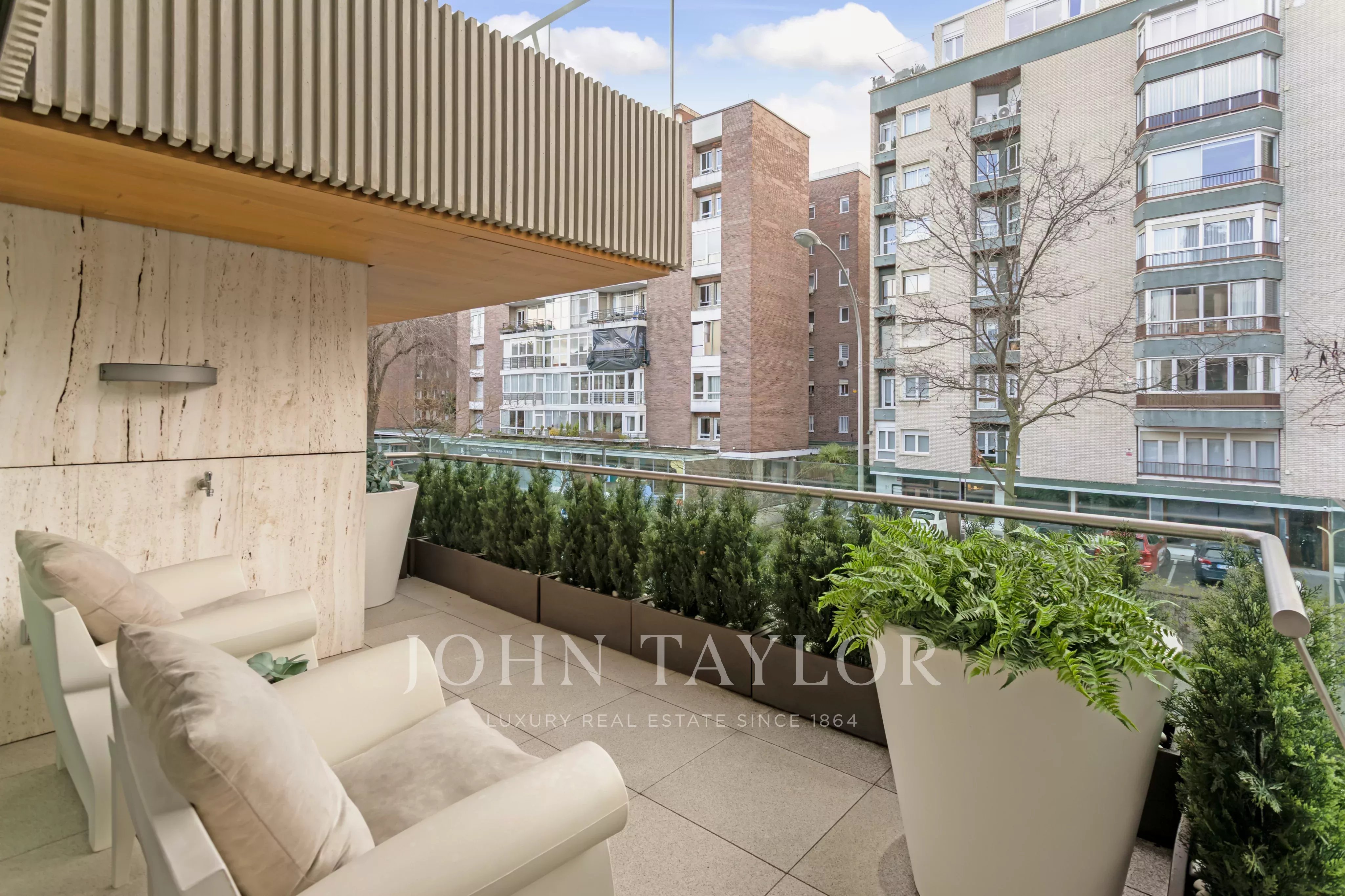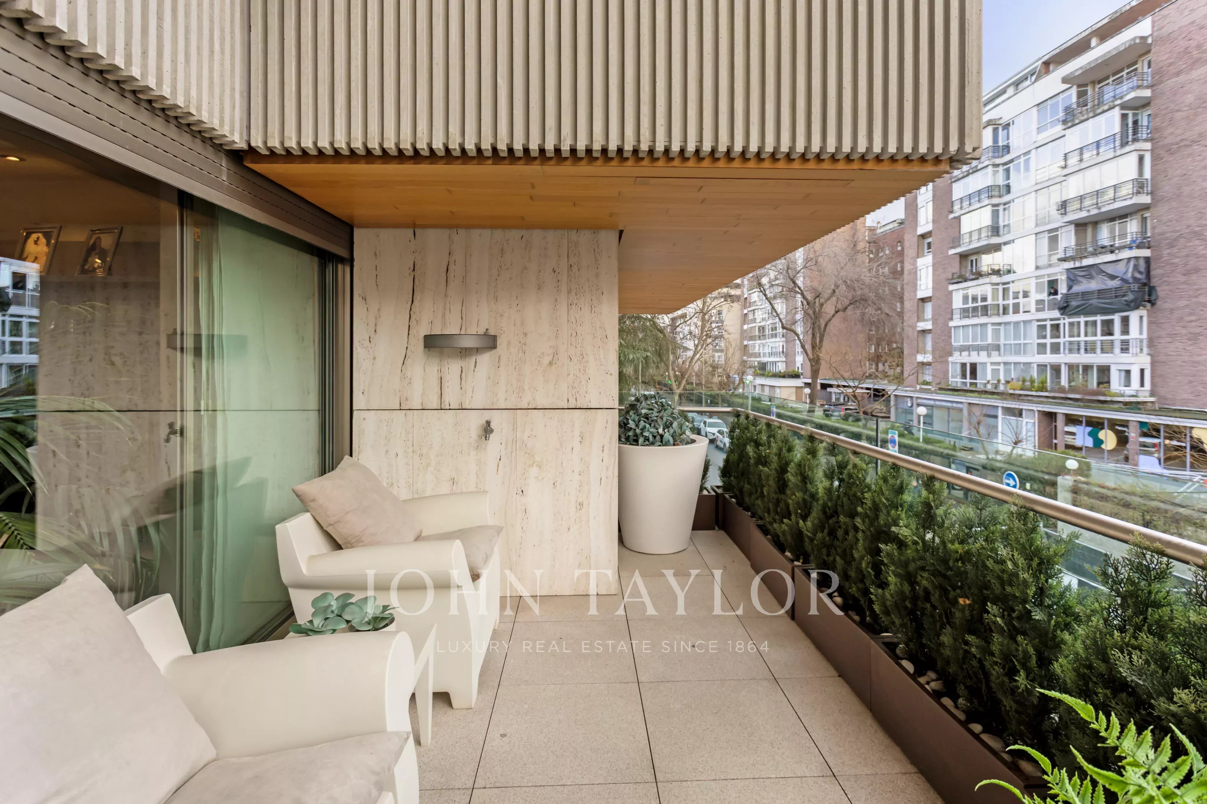 John Taylor Luxury Real Estate představuje tento exkluzivní byt v jedinečné budově oceněné v roce 2008. Nemovitost se nachází v prestižní rezidenční čtvrti Nueva España, ve čtvrti Chamartín na severu hlavního města. Jedná se o klidnou a bezpečnou čtvrť s veškerou občanskou vybaveností a jednu z nejvyhledávanějších oblastí hlavního města.