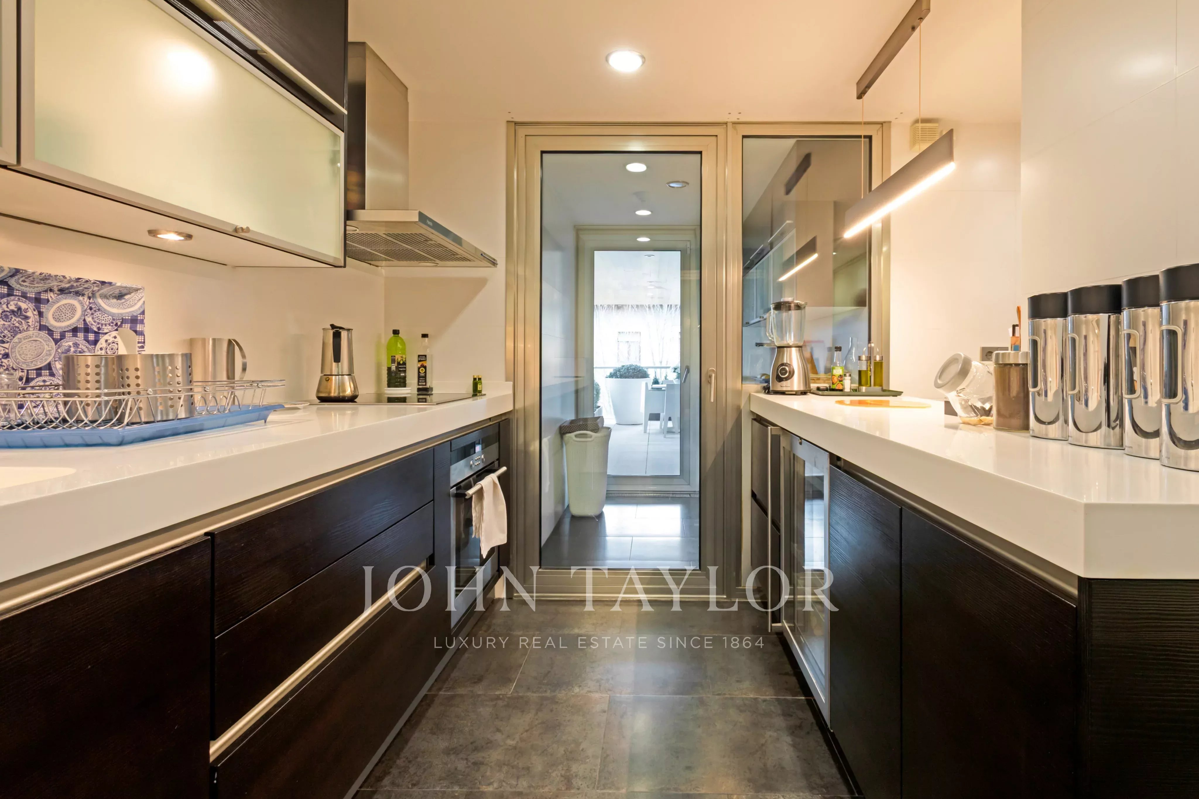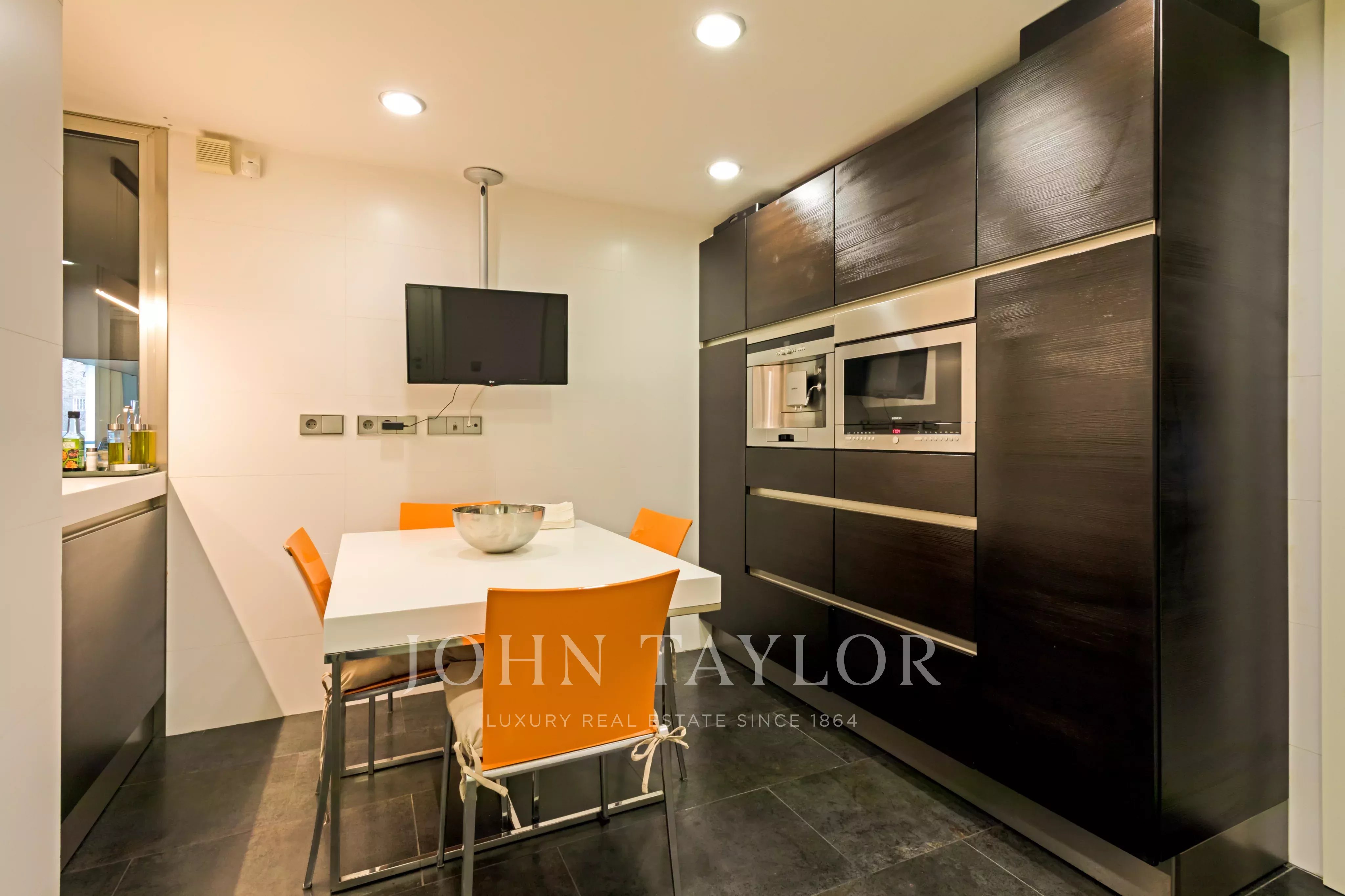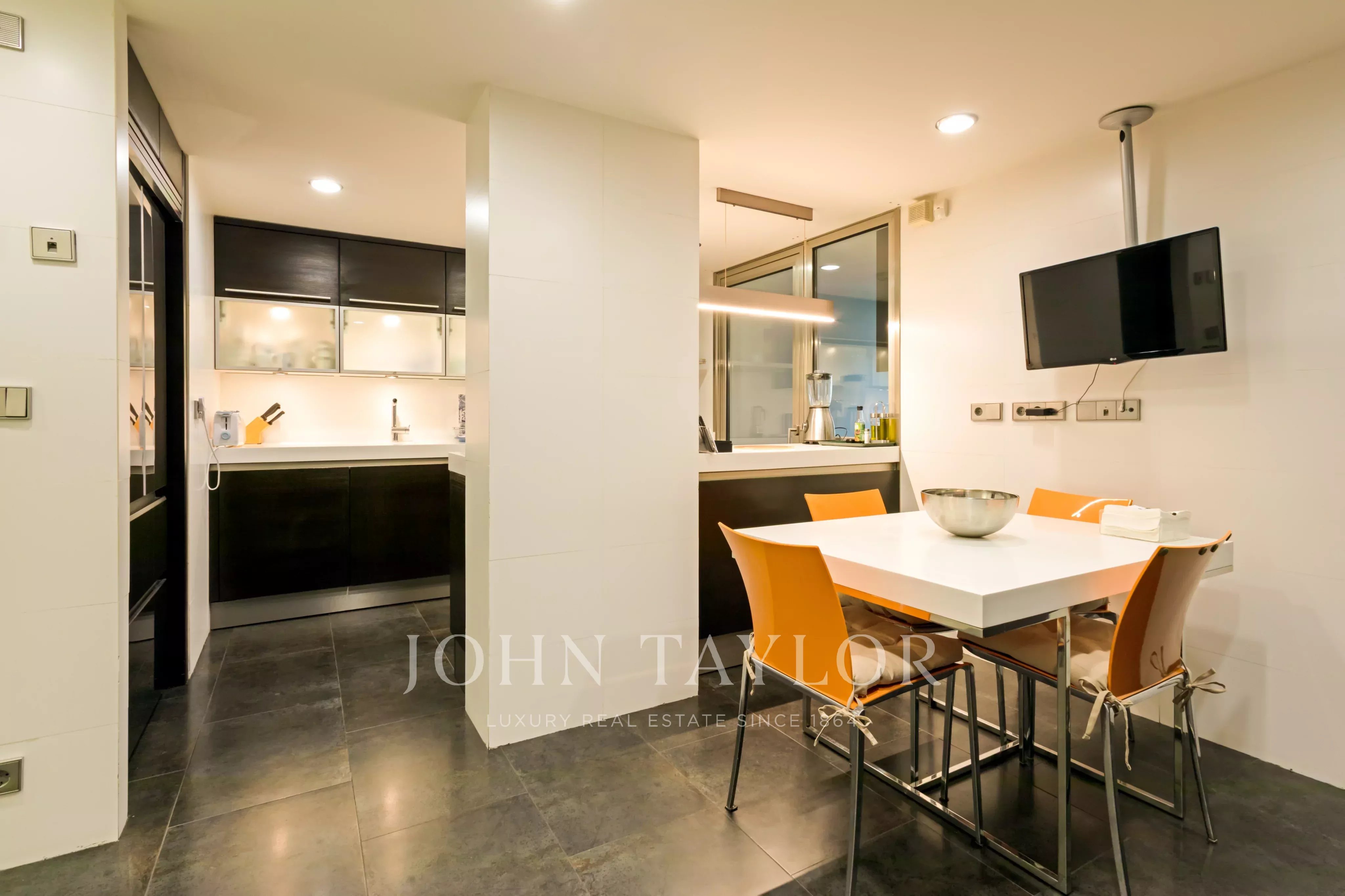 Velký plně vybavený kuchyňský kout, s obytnou terasou orientovanou na východ. Za zmínku stojí prostornost místností i vysoká úložná kapacita, kterou zajišťují četné vestavěné skříně od podlahy až ke stropu. Nemovitost má individuální podlahové vytápění a kanálovou klimatizaci.