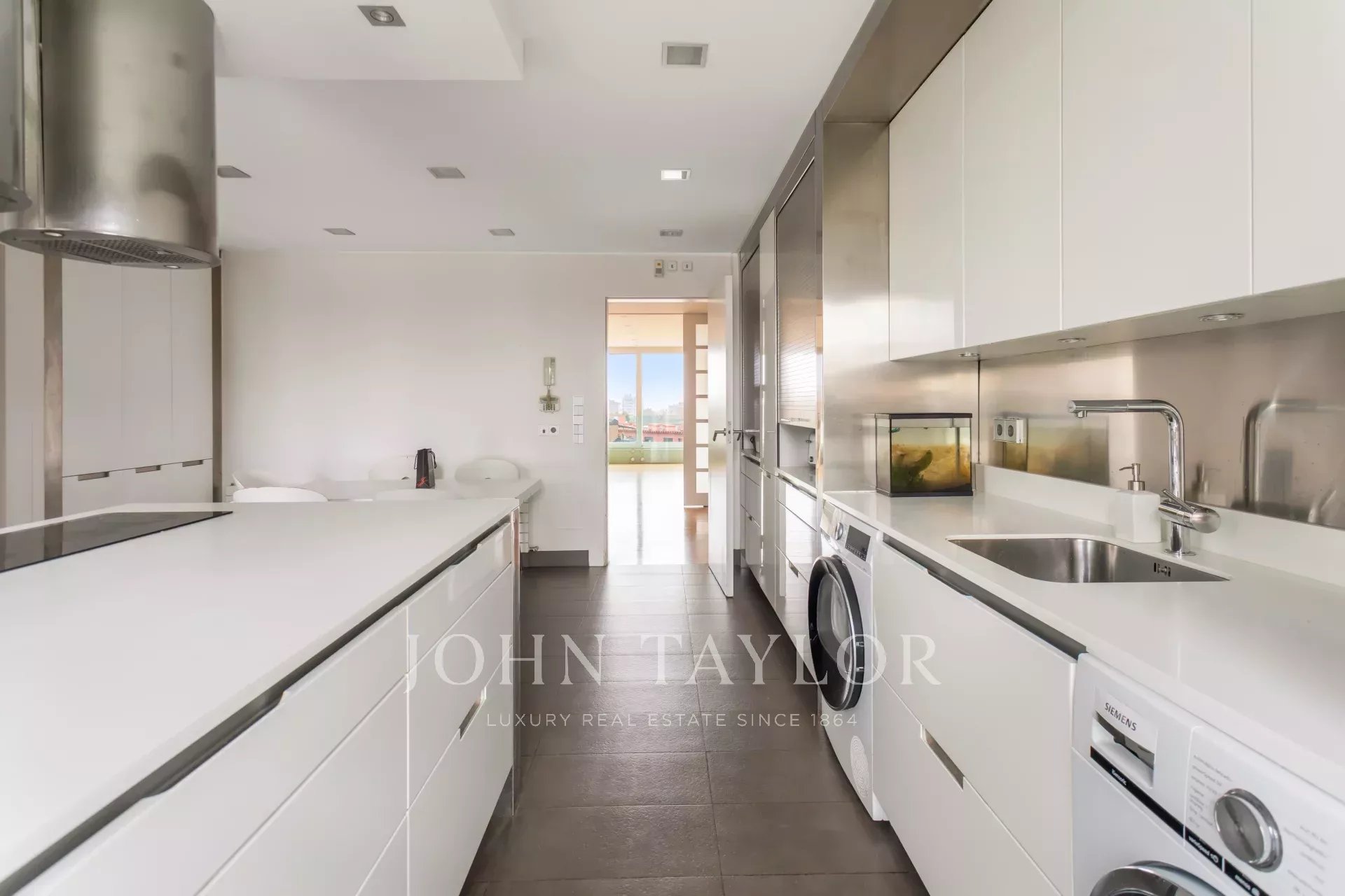 Tato jedinečná nemovitost se nachází v sedmém patře budovy, byla bezvadně zrekonstruována s důrazem na každý detail a s výběrem špičkových materiálů, s velkými okny orientovanými na jih, která nabízejí bezkonkurenční výhled na město.