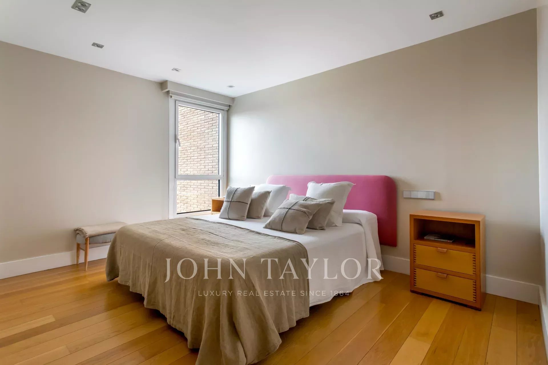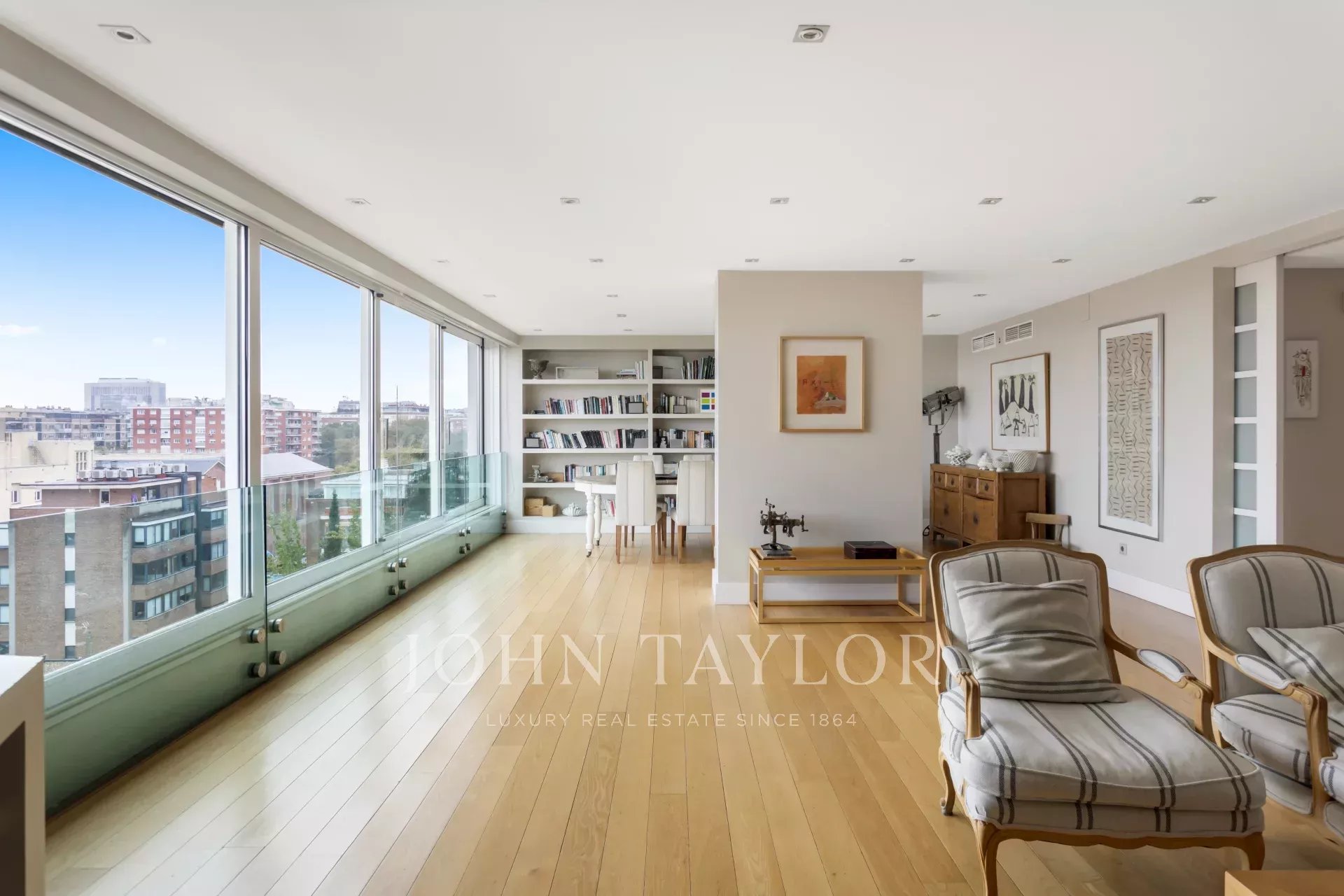 Nádherná nemovitost na prodej v Nueva España, jedné z nejvyhledávanějších částí Chamartínu, díky výbornému dopravnímu spojení, široké nabídce obchodů a restaurací a blízkosti prestižních škol.