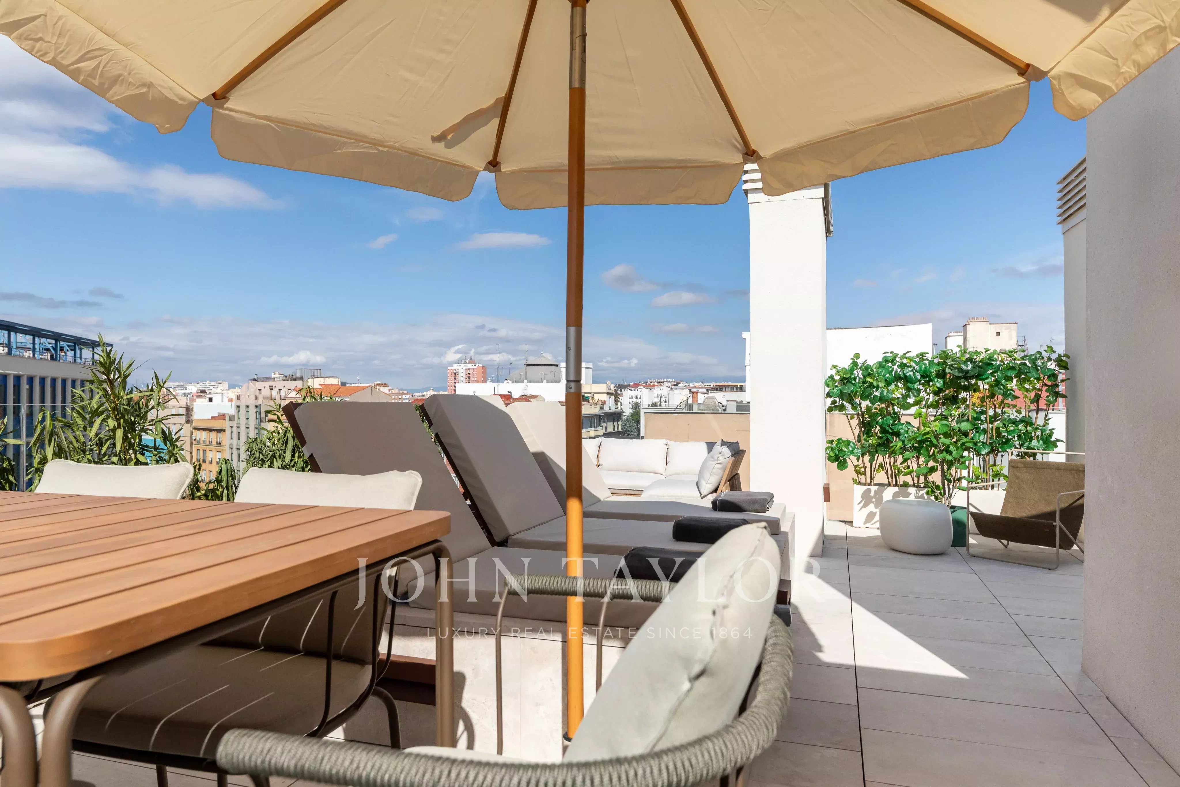 Zcela nový mezonetový penthouse v šestém patře o rozloze 175 m² v madridské čtvrti Chamberí nabízí dokonalou kombinaci pohodlí a moderních technologií.