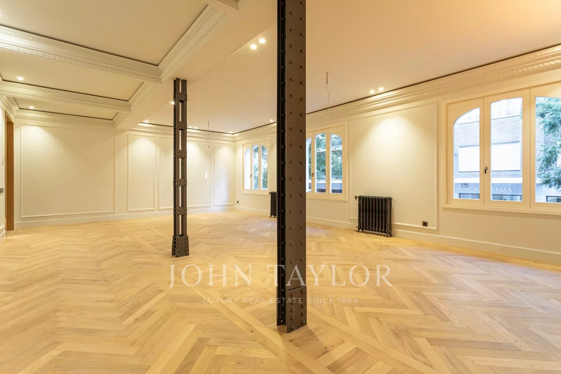 Představujeme tento mimořádný nový byt na prodej, s luxusními materiály a velmi světlý. Nachází se v klidné ulici v jedné z nejvyhledávanějších oblastí Almagro. Tento byt o rozloze 253 m² zabírá celé první patro klasické budovy z počátku 20. století se 4 velkými okny do exteriéru. Vnitřní okna se otevírají do velkého dvora, kam velmi dobře proudí světlo.