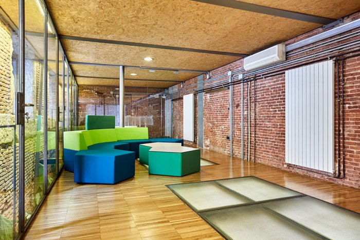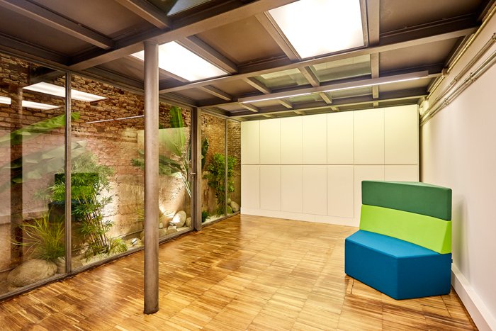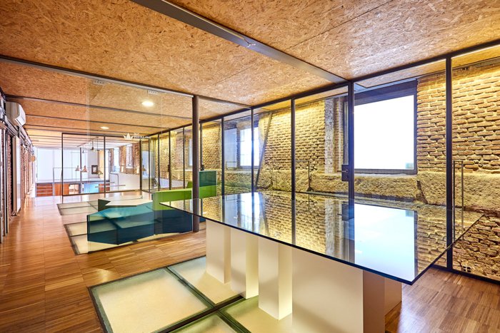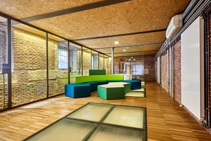 Zrenovovaný s ohledem na urbanistický-industrial design, kombinuje moderní materiály (sklo a ocel) s originálními staletými prvky, jako jsou pohledové cihly a kámen.