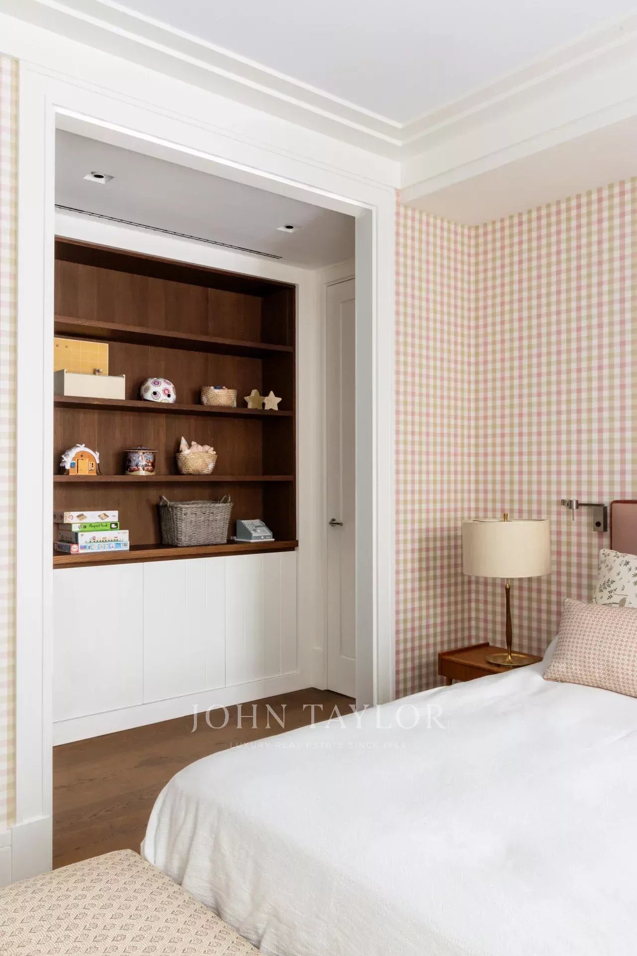 K dispozici jsou další tři ložnice, všechny s vlastní koupelnou, ložnice pro služebnou s koupelnou a kompletní prádelna a žehlírna vybavená podle profesionálních standardů.