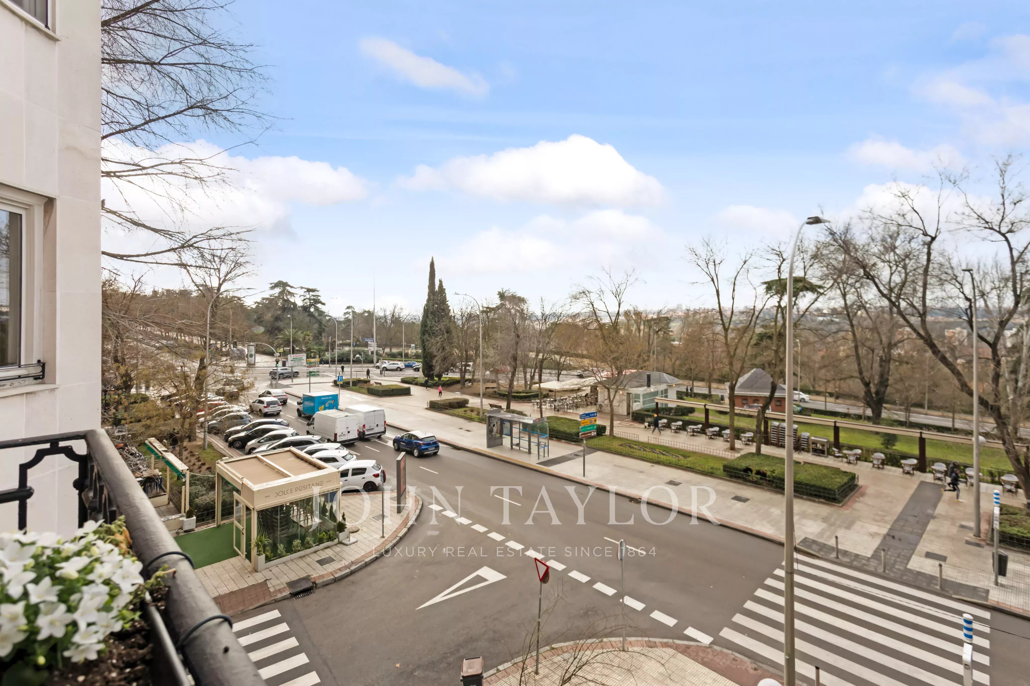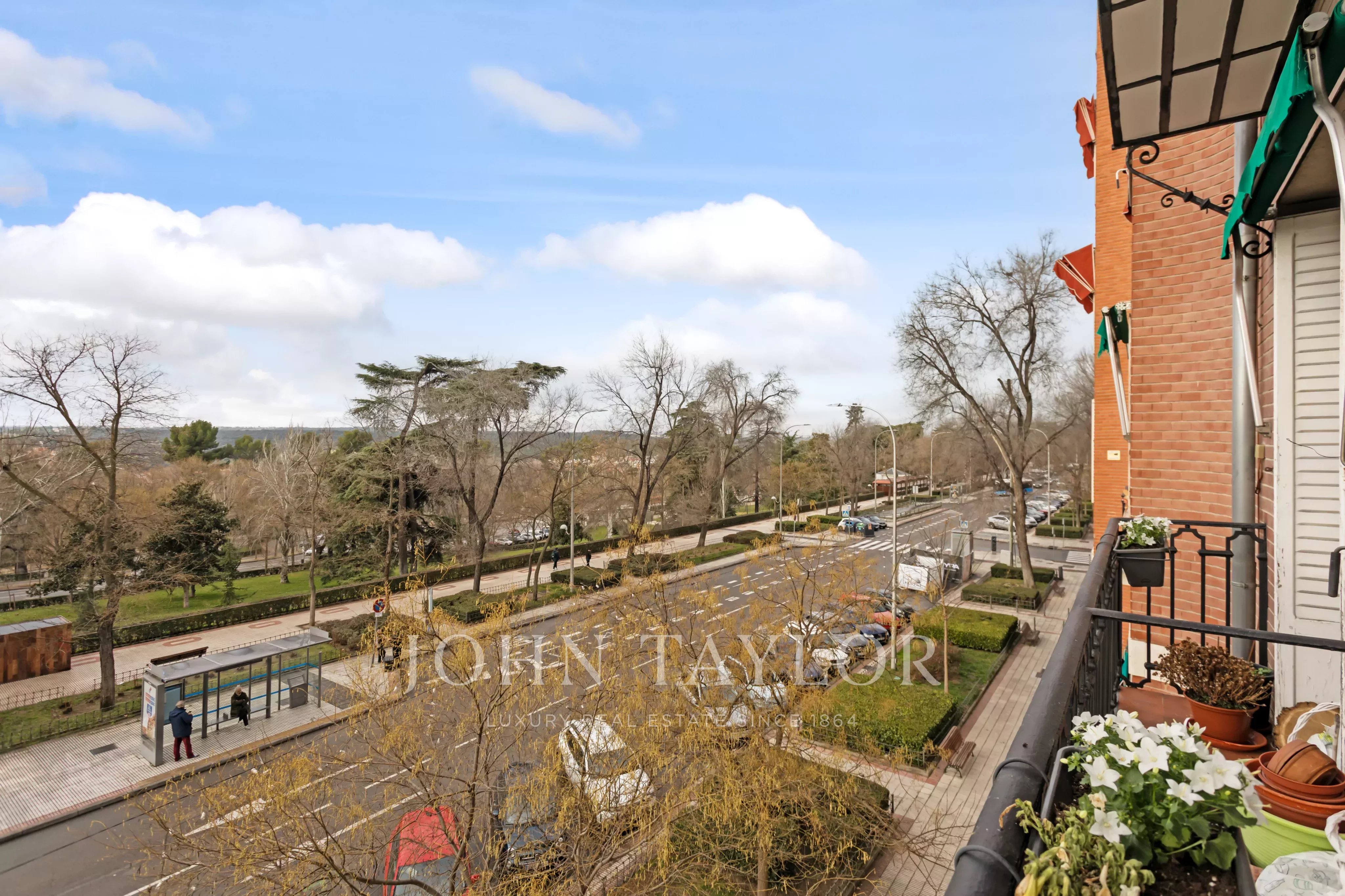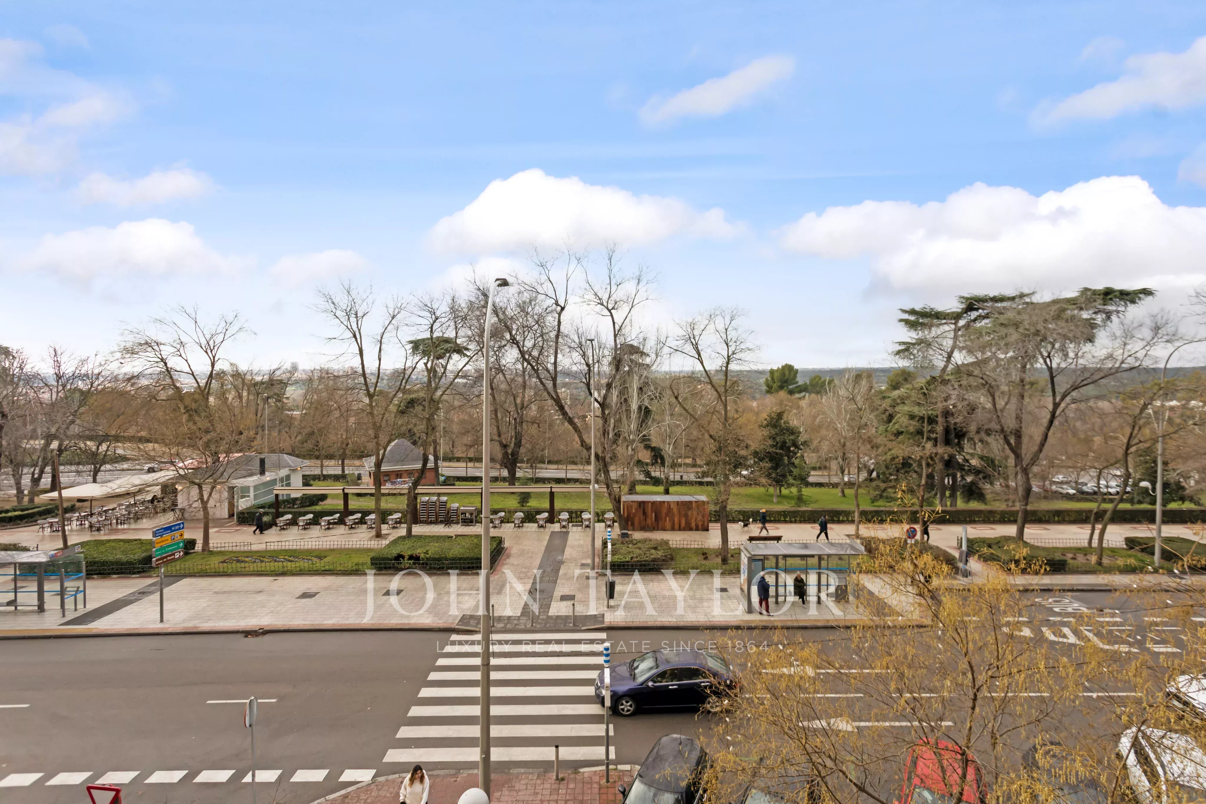 Exkluzivně vám představujeme tuto impozantní nemovitost s nádherným výhledem na park Parque del Oeste, který vizuálně zasahuje až do zeleně Casa de Campo. Z jeho balkonů se každý západ slunce promění v jedinečnou podívanou, která nabízí fascinující západ slunce v jednom z nejprivilegovanějších míst v Madridu.