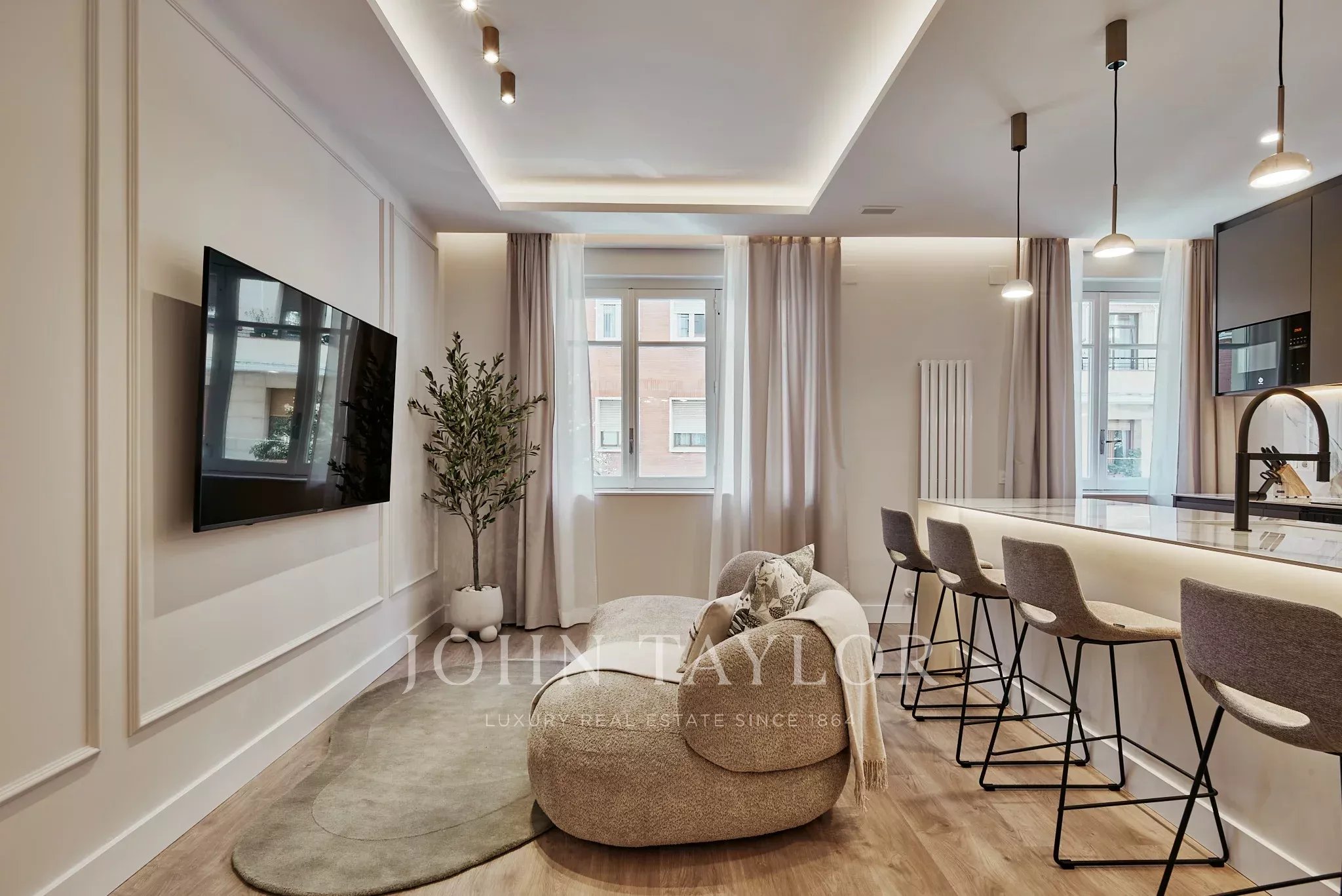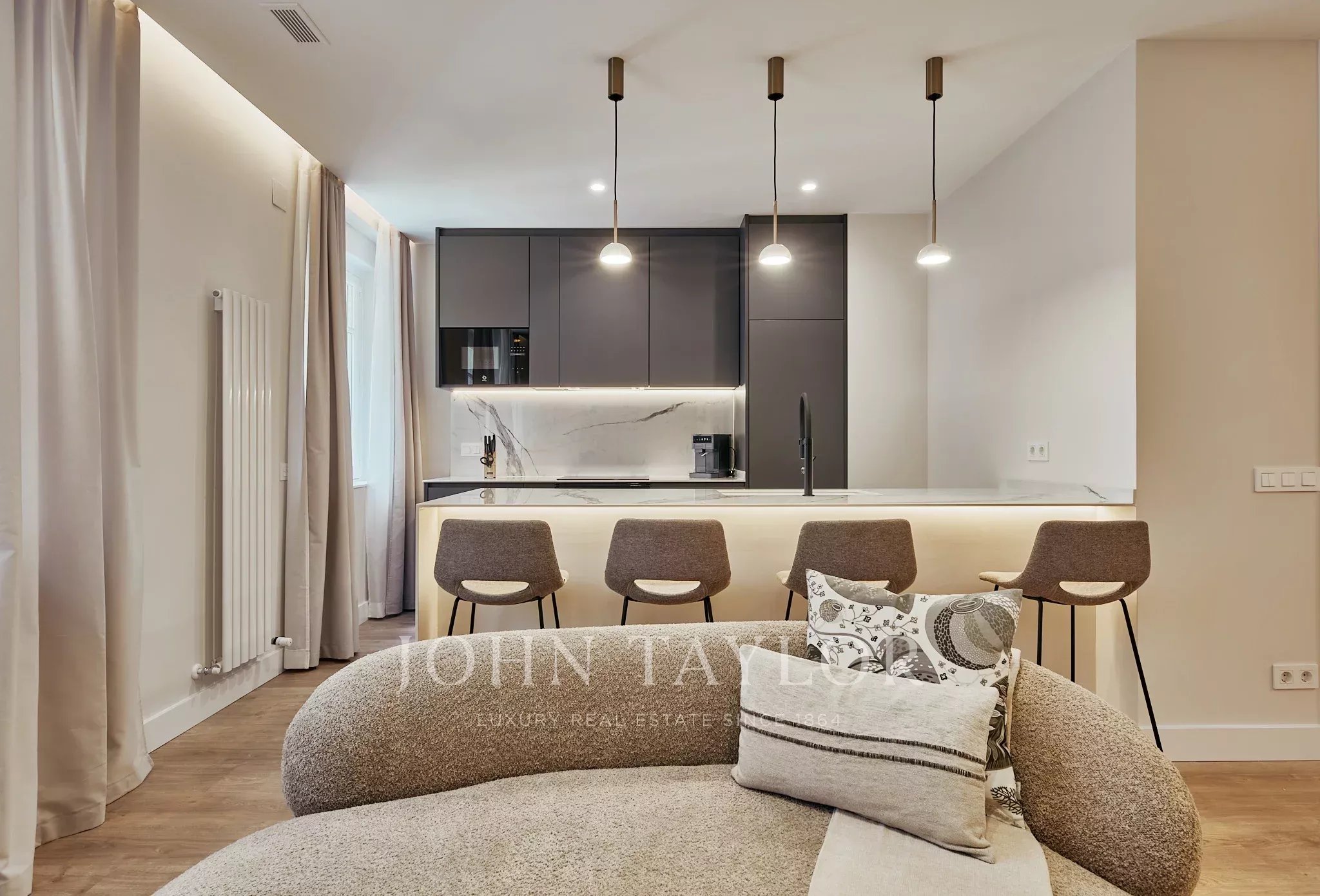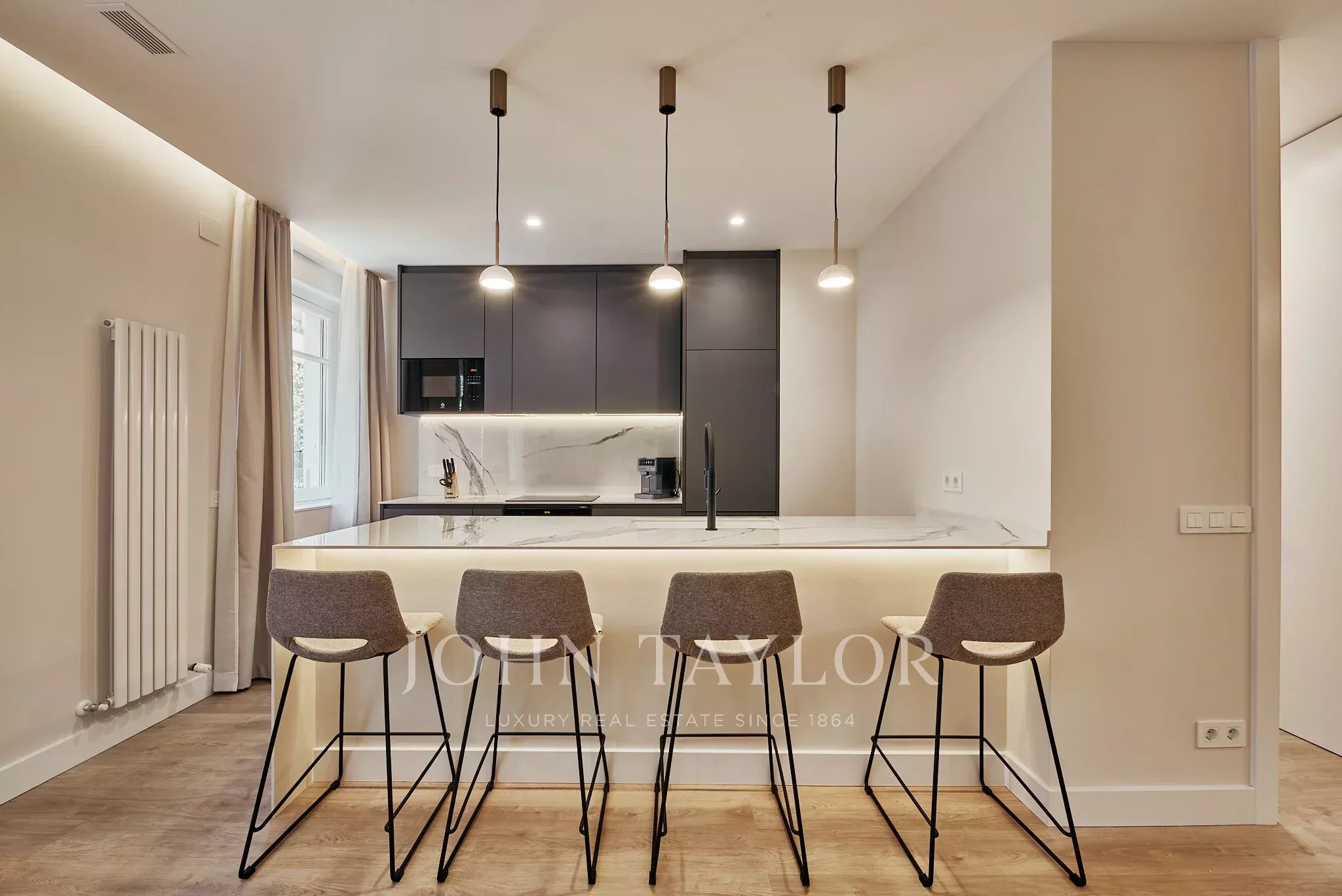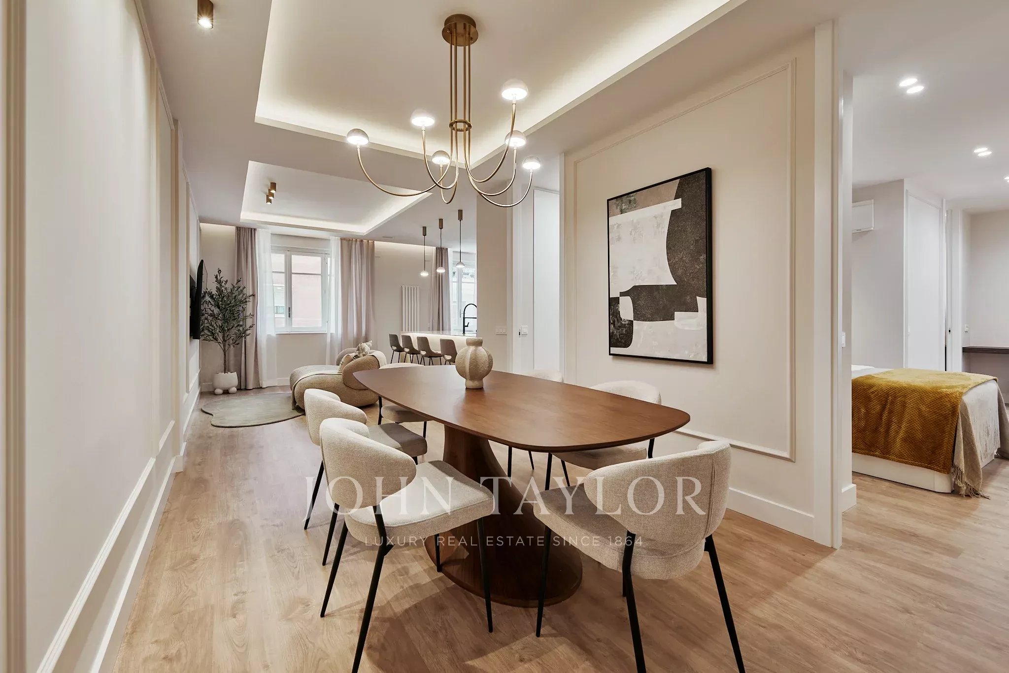 Exkluzivní byt o výměře 134 m² v klasické budově, nacházející se v žádáné čtvrti Ibiza, okres Retiro, jen pár kroků od parku Retiro. Rekonstruován s pečlivým současným designem, kombinuje funkčnost a sofistikovanost v každé místnosti.
