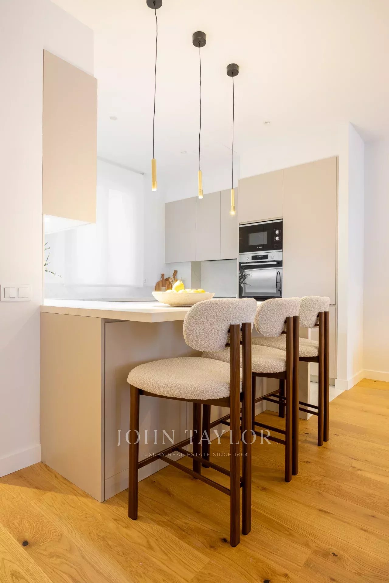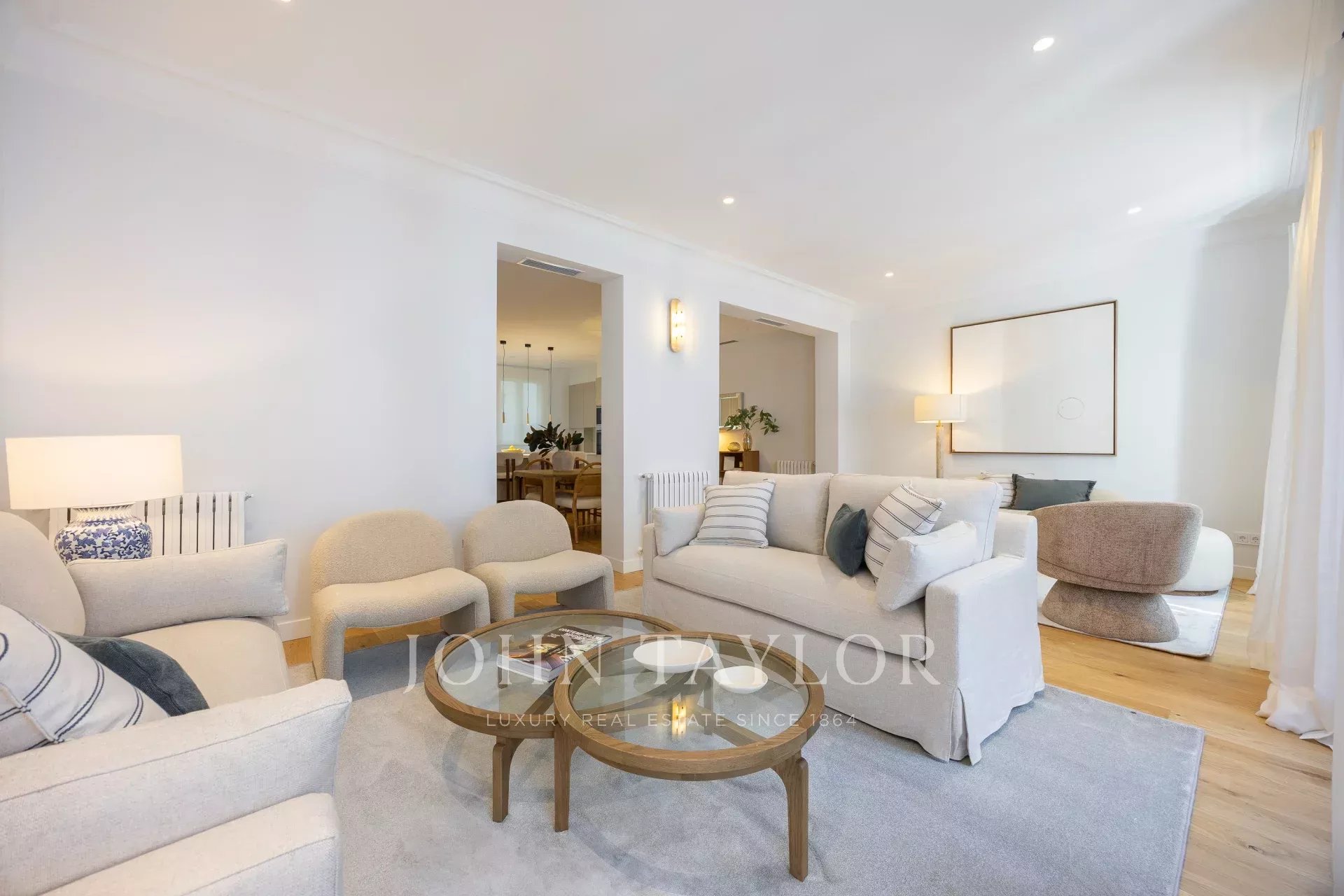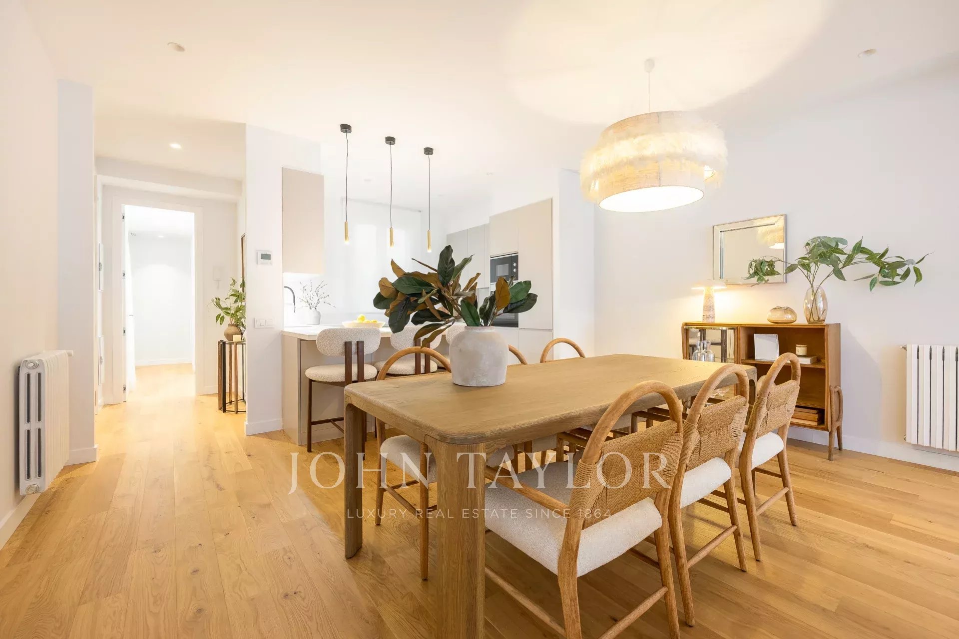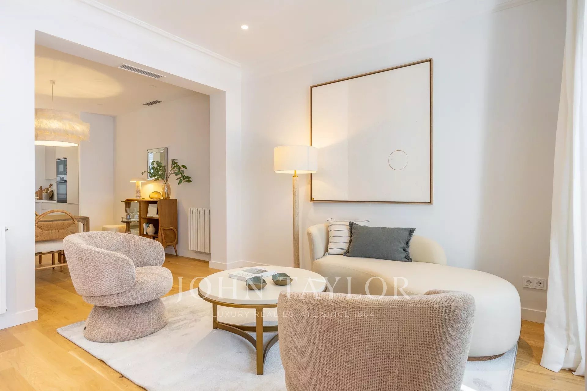 V krásné budově s klasickou fasádou a bočním výhledem na park Retiro se nachází tento krásný byt, kompletně zrekonstruovaný, zařízený a zcela nový. Nachází se ve čtvrtém patře a je orientován na jih, což mu spolu se dvěma balkony a krásným výhledem dodává skvělé přirozené světlo.