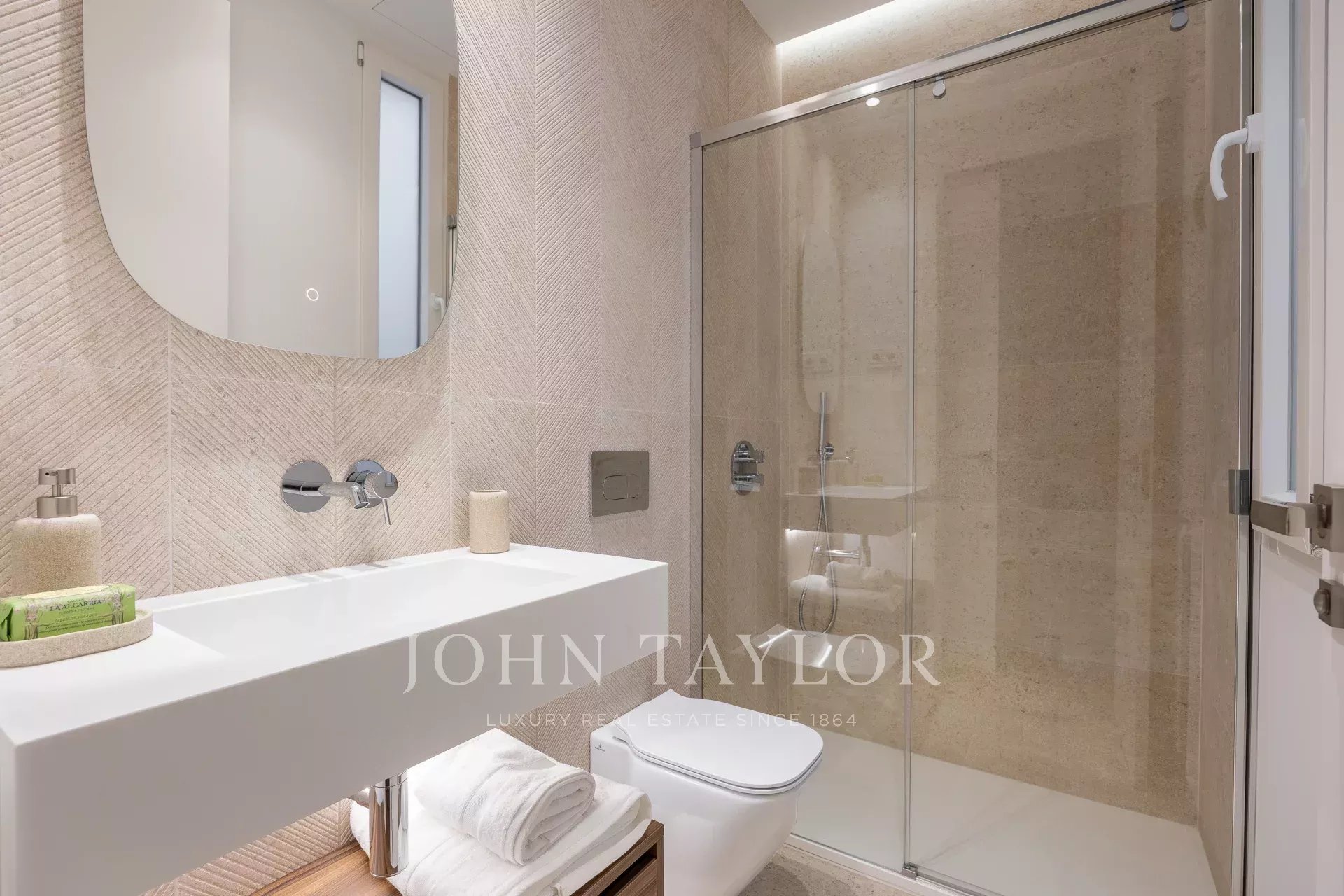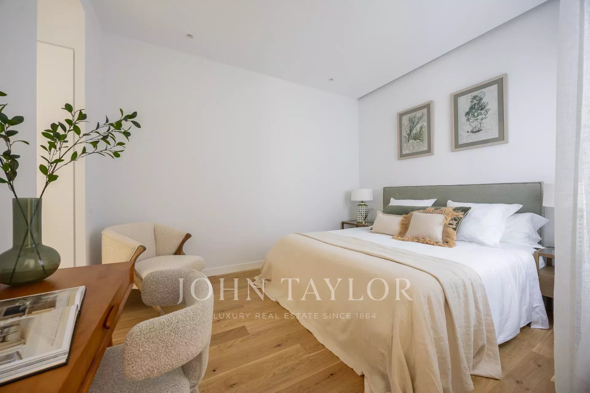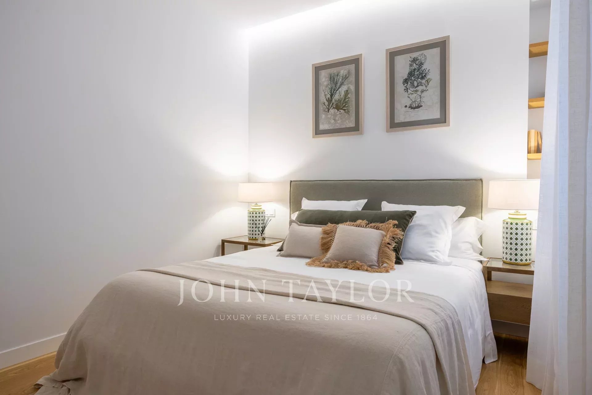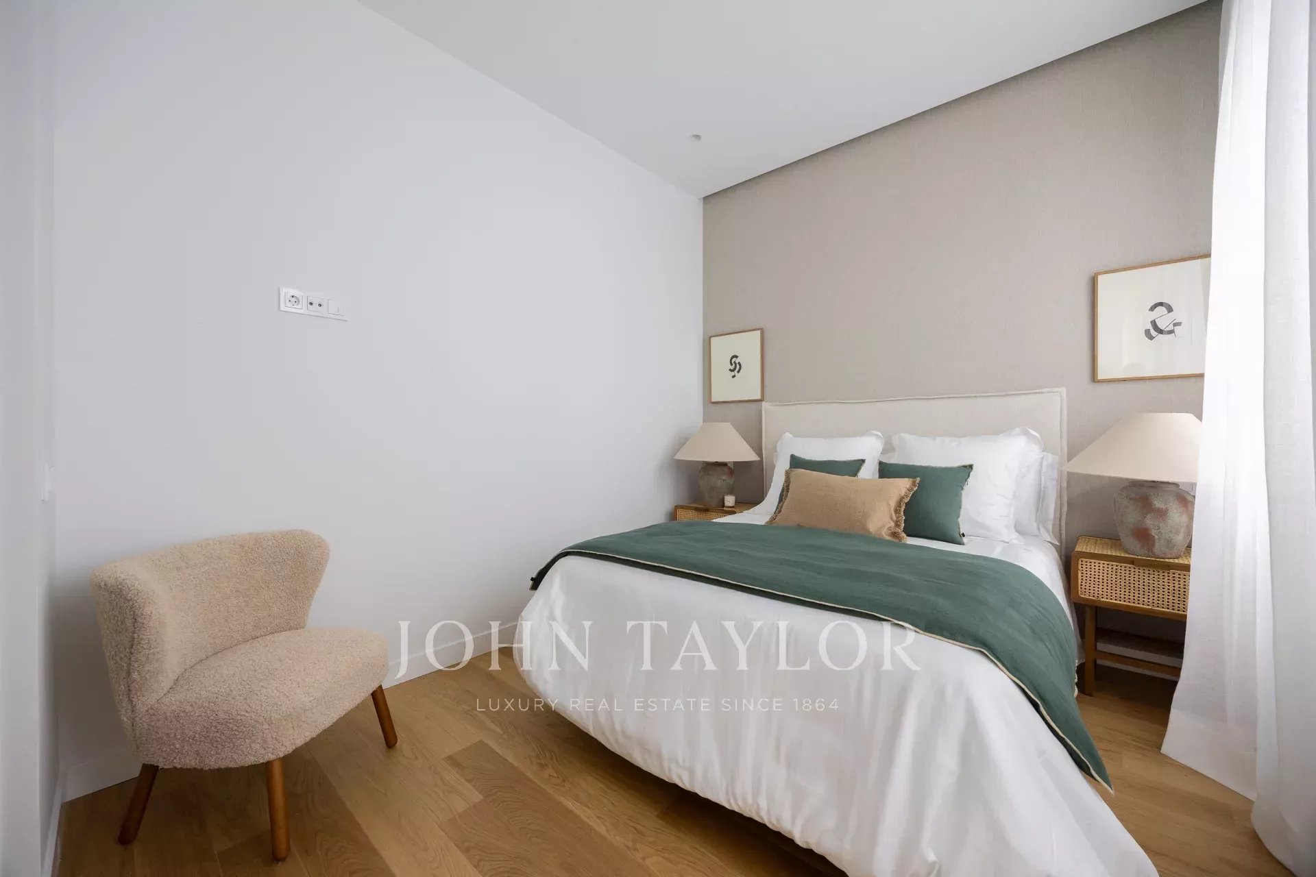 V krásné budově s klasickou fasádou a bočním výhledem na park Retiro se nachází tento krásný byt, kompletně zrekonstruovaný, zařízený a zcela nový. Nachází se ve čtvrtém patře a je orientován na jih, což mu spolu se dvěma balkony a krásným výhledem dodává skvělé přirozené světlo.