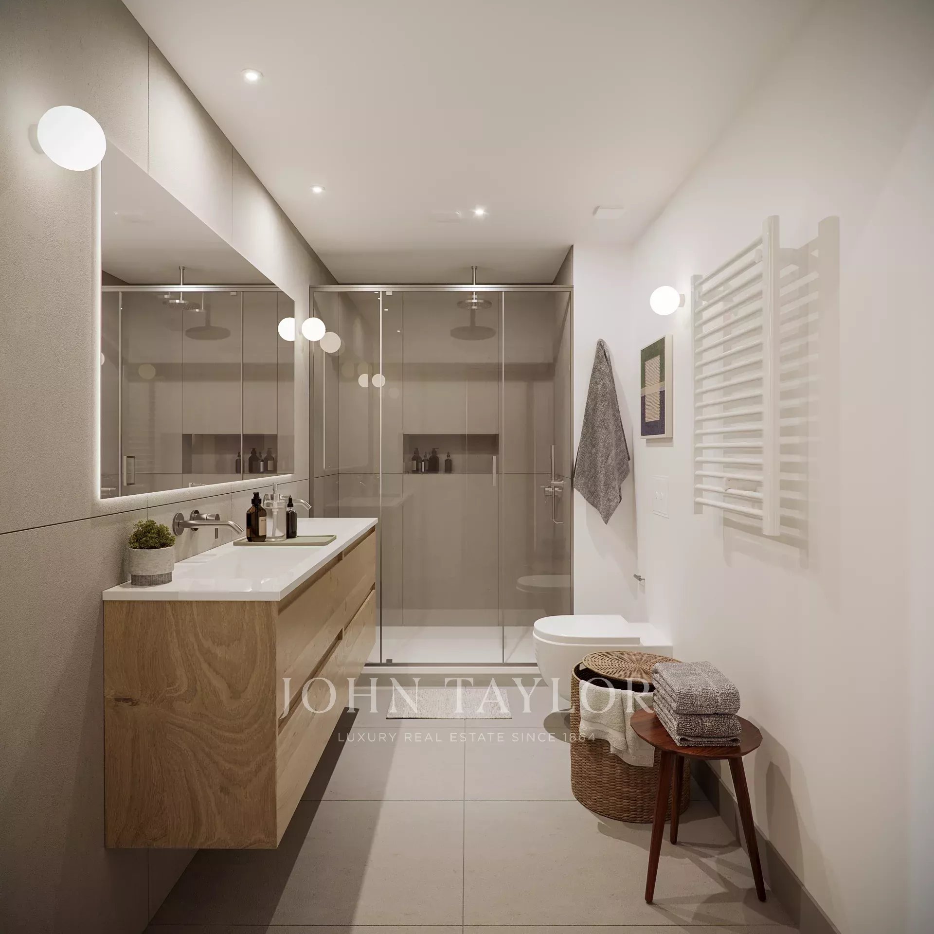 Spací část tvoří dvě ložnice s vlastní koupelnou a vestavěnými skříněmi, které nabízejí nezávislost a pohodlí. Je zde také možnost zařídit třetí ložnici, která je ideální jako kancelář nebo další ložnice. Denní část doplňuje třetí kompletní koupelna, která poskytuje praktické řešení pro hosty.