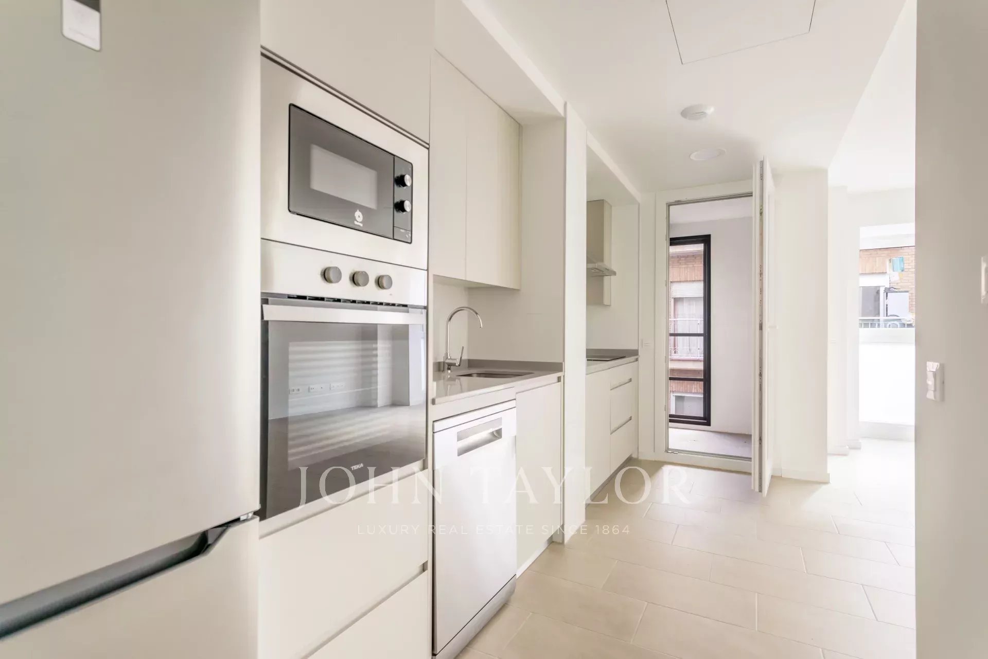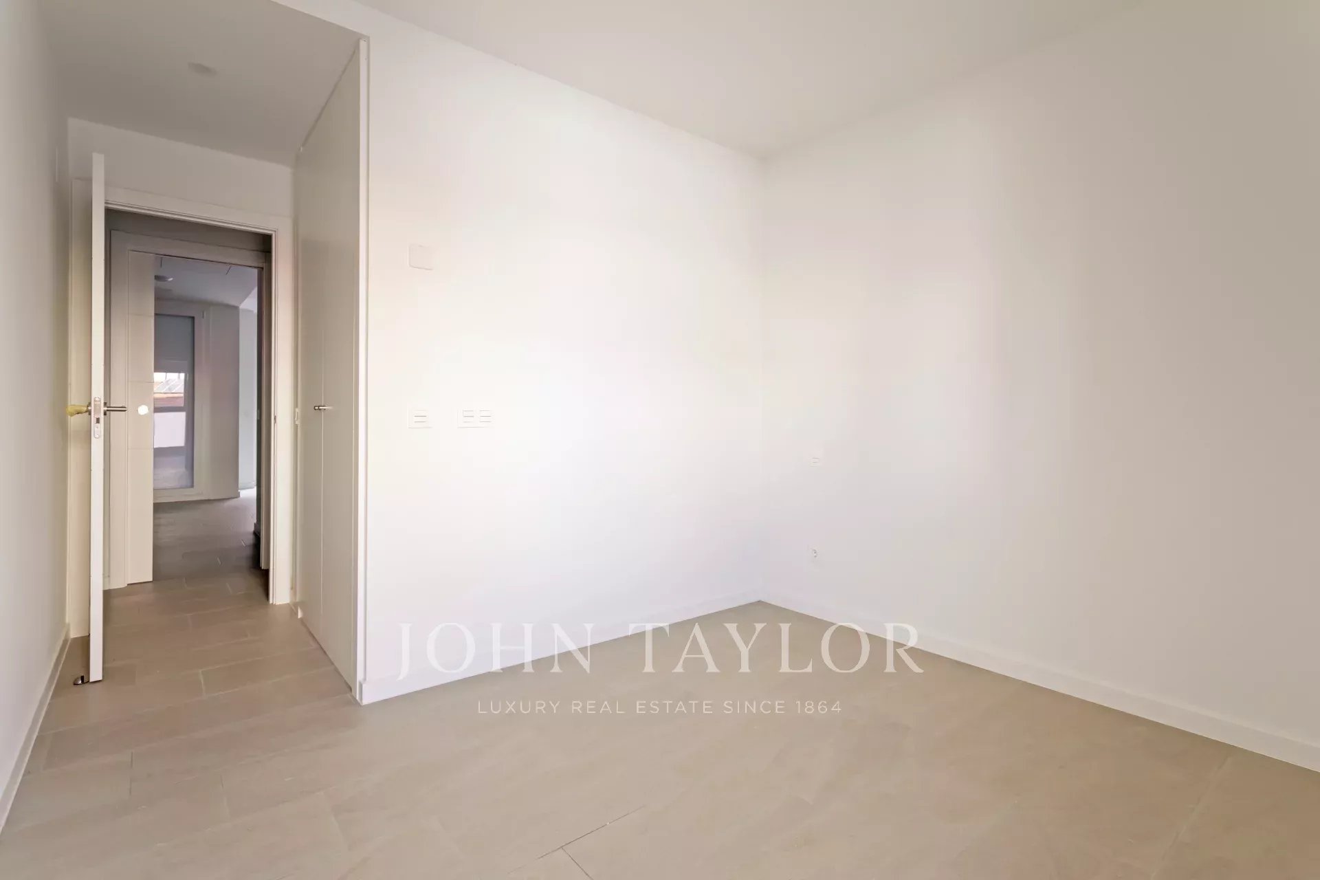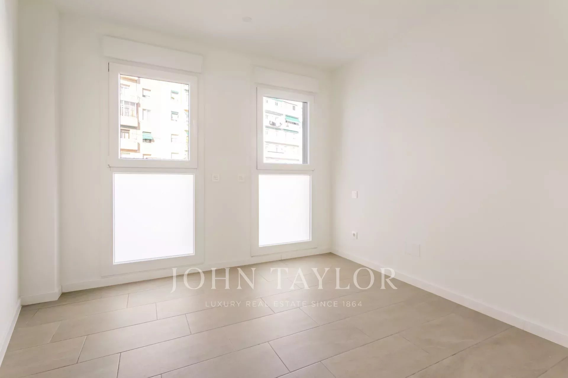 Nemovitost, která se nachází v prvním patře, má 82 m² skvěle rozdělených soukromých prostor, 105 m² včetně repertoáru společných prostor budovy. Má elegantní chodbu s vestavěnými skříněmi, která vede do plně vybavené kuchyně integrované do obývacího pokoje, a také praktickou oddělenou prádelnu. Prosvětlený obývací pokoj s jídelnou navazuje na odpočinkovou zónu, kterou tvoří dvě ložnice, z nichž hlavní má šatnu a vlastní koupelnu, zatímco druhá kompletní koupelna poskytuje servis vedlejší ložnici a návštěvám. Celý objekt je kromě koupelen v exteriéru, což zaručuje nádherný vstup přirozeného světla a příjemný pocit prostornosti.