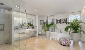 Tento velký luxusní byt je součástí malé a exkluzivní komunity pouze několika sousedů v prestižní oblasti Cas Catalá, která je velmi vyhledávaná pro svou kombinaci klidu a blízkosti Palmy a všech druhů služeb. K malé písečné zátoce je to dokonce 5 minut chůze. Nemovitost zabírá celé patro budovy a je obklopena terasami. Má také vlastní soukromý bazén. Obytná část se skládá z velkého obývacího pokoje s jídelnou a plně vybavené otevřené kuchyně. Komunikace s venkovními prostory je vynikající. Obývací pokoj navazuje na krytou terasu s krásným výhledem na moře. V zadní části je přístup na velkou otevřenou terasu vedle bazénu, který vybízí ke slunění a koupání v kteroukoli denní dobu. Dispozice nemovitosti byla v době výstavby upravena podle přání současných majitelů. K dispozici je působivé hlavní apartmá s šatnou a velmi velkorysou koupelnou. Z této ložnice je také přímý vstup na terasu a z postele se můžete kochat výhledem na moře. K dispozici je ložnice pro hosty s vlastní koupelnou. 2 garážová stání a velký sklad doplňují tuto nádhernou nemovitost, ideální pro pár nebo malou rodinu, která ocení dostatek prostoru, dobrý výhled a elegantní a pohodlný domov.