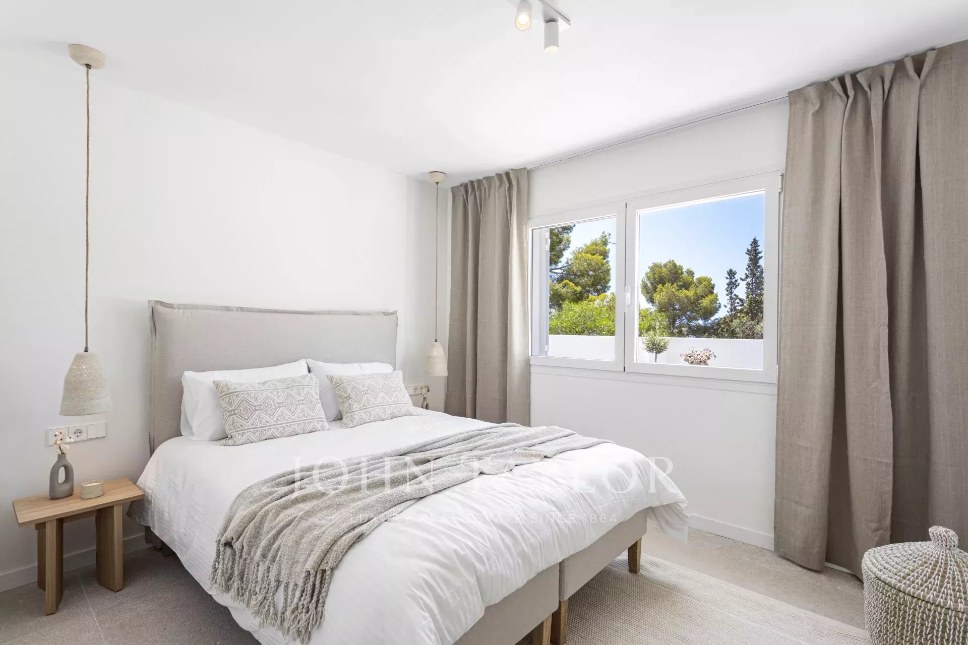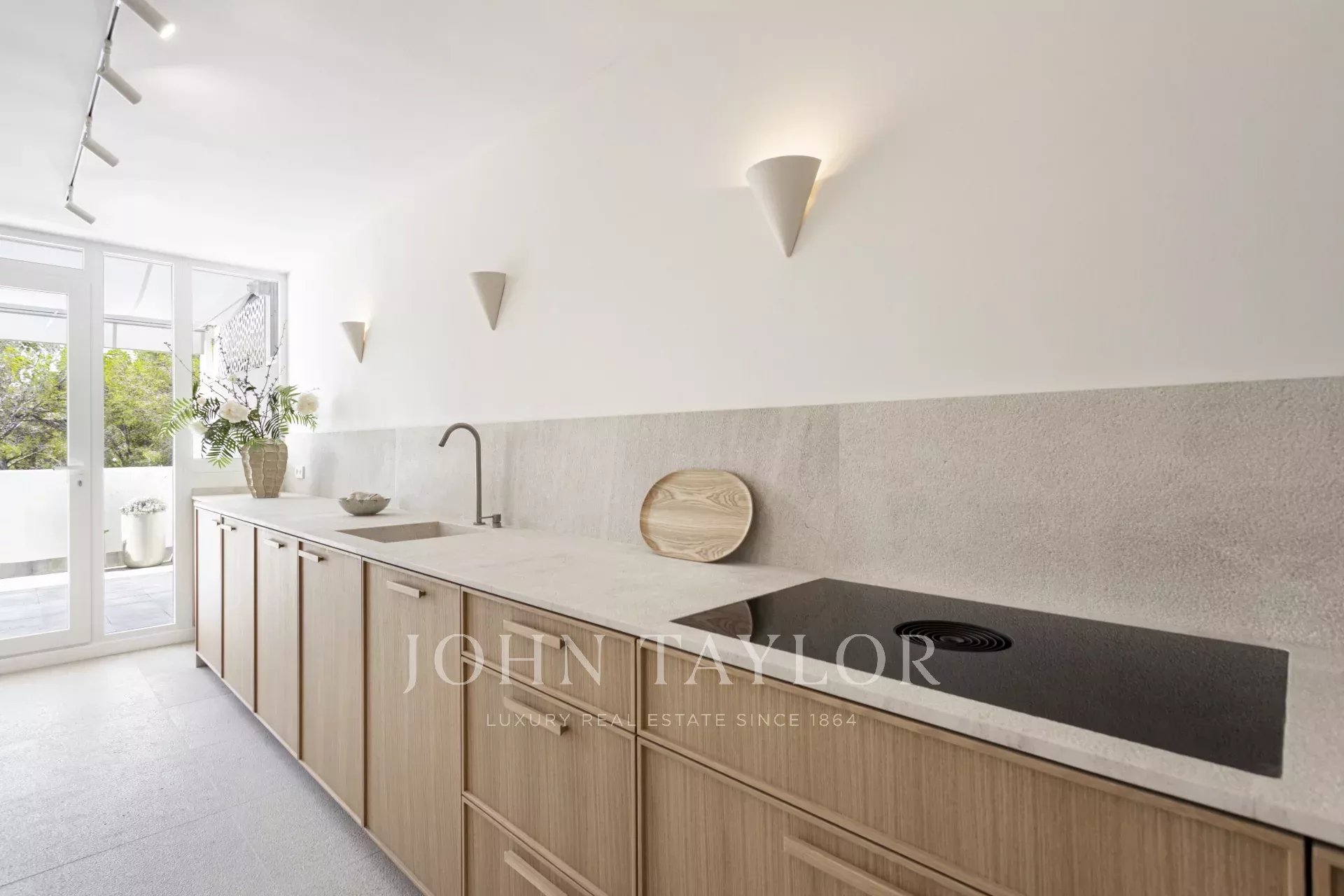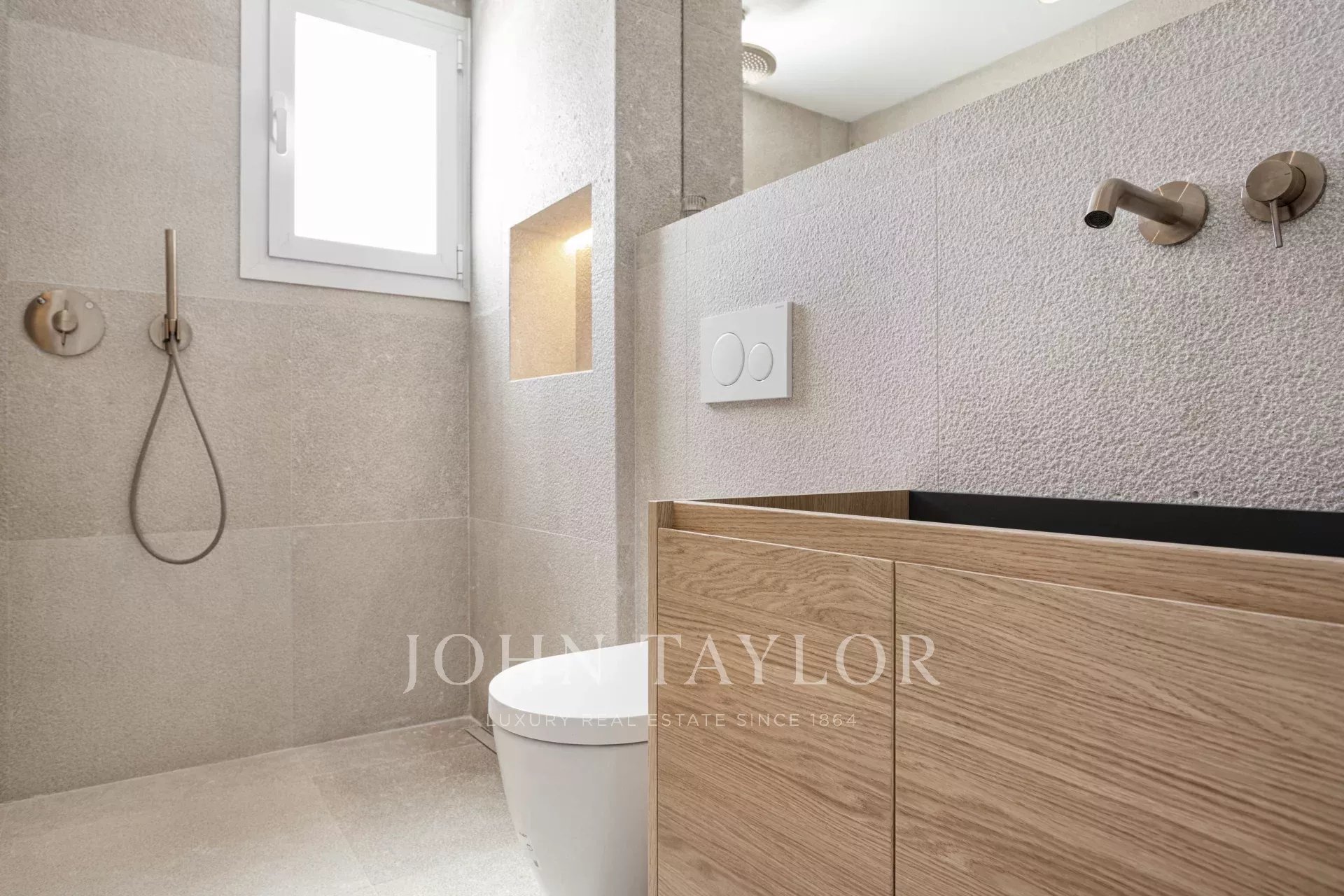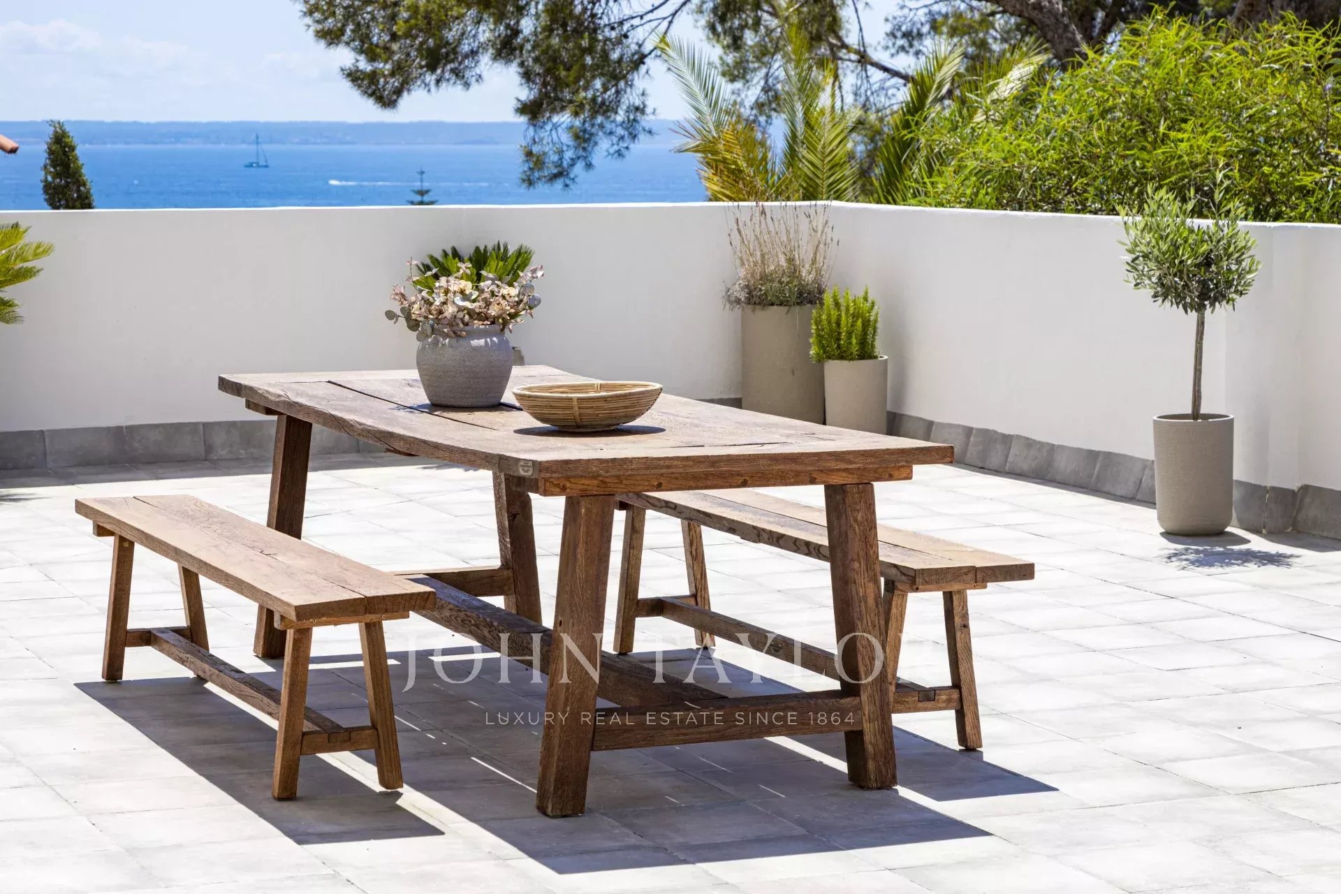 Tento výjimečný byt se nachází ve význačné enklávě Cas Català a představuje dokonalé spojení vnitřního luxusu a venkovního středomořského životního stylu. S celkovou plochou 200 m² - 100 m² interiér a impozantní 100 m² terasa - nabízí nemovitost skutečně nádherný výhled na moře prakticky z každého prostoru a vytváří atmosféru klidu a sofistikovanosti. Otevřený půdorys plynule propojuje obývací pokoj a jídelnu, které rámují elegantní podlahy z přírodního kamene Zarci, jež dodávají teplo a charakter. Kuchyně, vybavená spotřebiči Gaggenau, dubovým povrchem a nápadnou mramorovou pracovní deskou Binissalem, harmonicky zapadá do prostoru a odráží moderní a funkční design. Tři ložnice byly koncipovány tak, aby maximalizovaly světlo a výhled, přičemž hlavní ložnice je vybavena elegantní koupelnou a přímým vstupem na terasu. Ta, která je skutečným protagonistou nemovitosti, nabízí jedinečné prostředí s nerušeným výhledem na moře, grilem, jídelním koutem a relaxačními prostory, ideálními jak pro užívání si mallorského slunce, tak pro pořádání venkovních setkání. Tuto atraktivní nemovitost doplňuje velké parkovací stání v téže budově s kapacitou pro dva malé vozy, velkoryse dimenzovaný sklad a přímý přístup výtahem z garáže ke vstupním dveřím, což zaručuje maximální pohodlí a soukromí. Neopakovatelná příležitost pro ty, kteří chtějí bydlet stylově v jedné z nejexkluzivnějších oblastí ostrova.