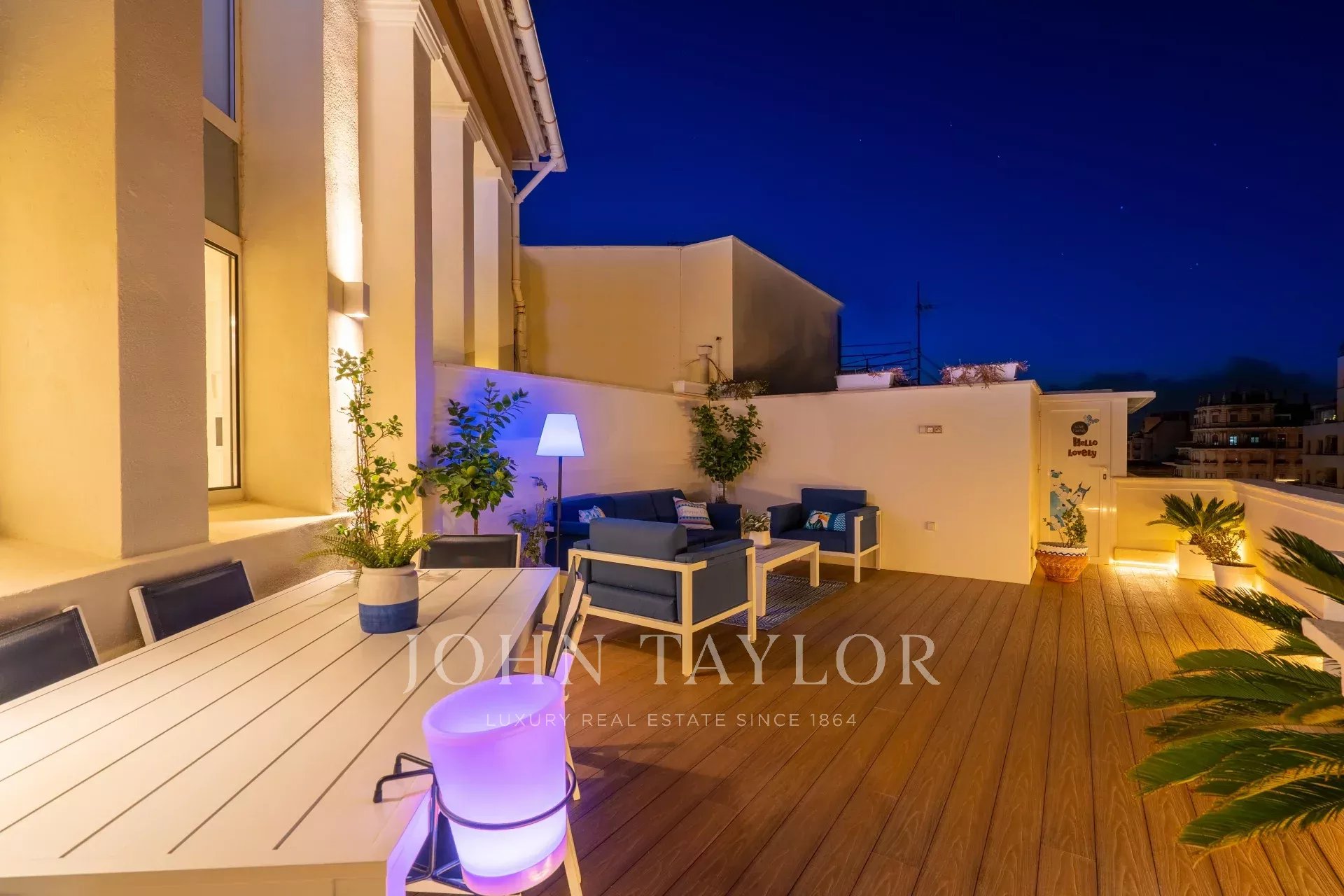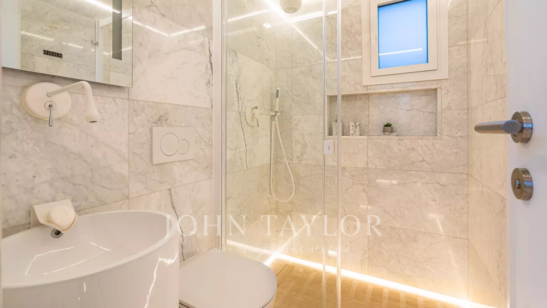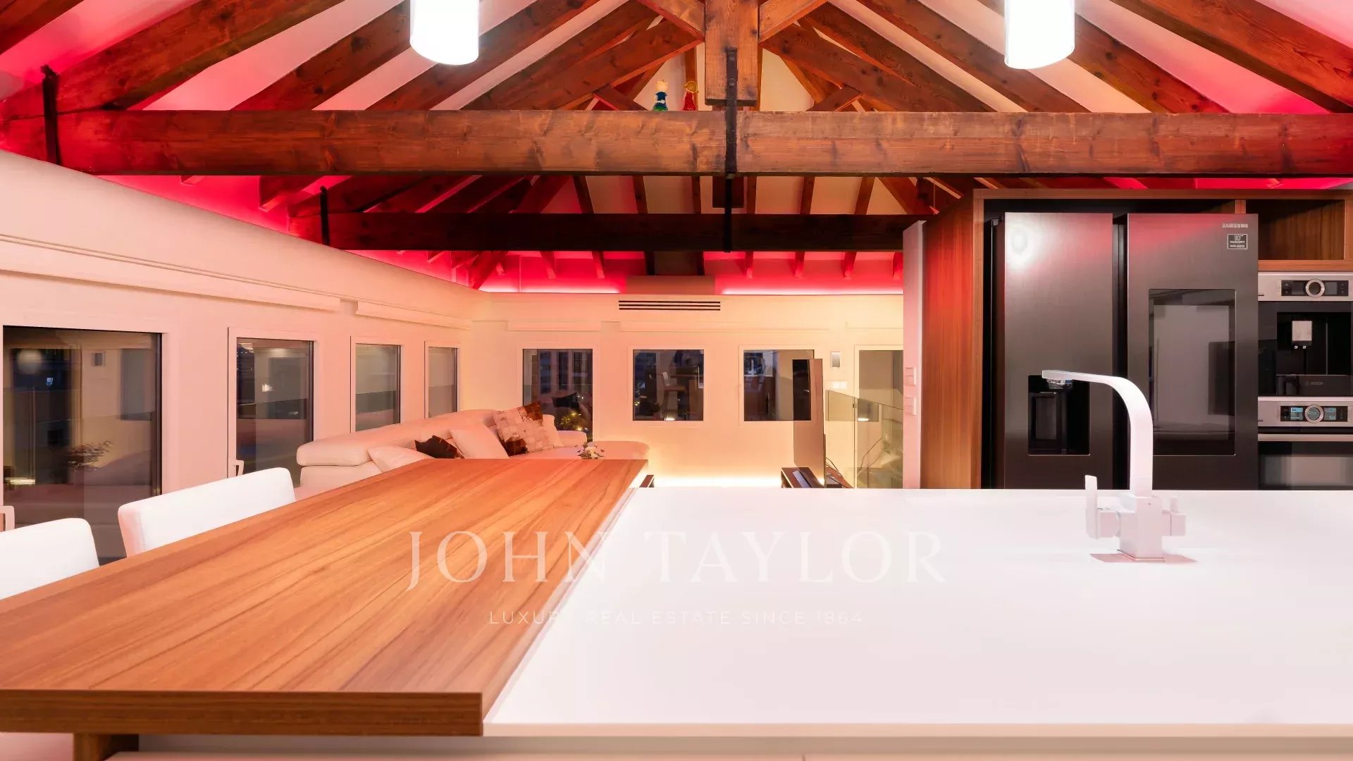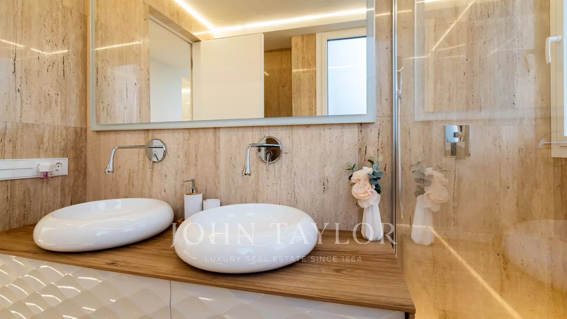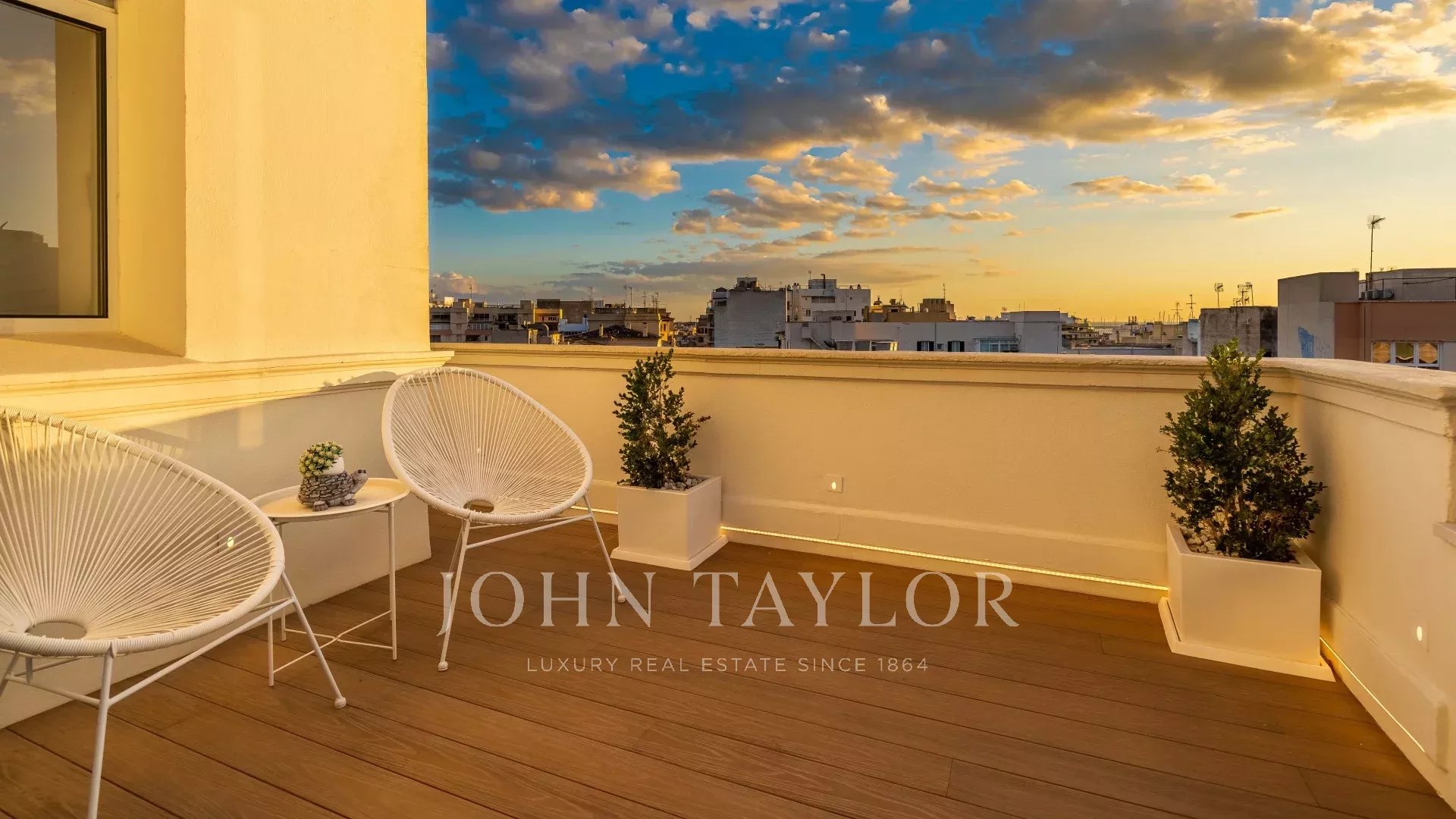 Tento jedinečný mezonetový penthouse prošel v roce 2021 kompletní rekonstrukcí. Stojí na vrcholu jedné z nejvýznamnějších budov na palmské třídě Avenidas a nabízí ohromující výhled na město a na moře. V přízemí jsou dvě ložnice, dvě koupelny, WC pro hosty a přístup na jednu ze dvou teras. V horním patře se nachází kuchyň, obývací a jídelní část s okny s 360° výhledem, dřevěnými trámovými stropy a přímým vstupem na druhou terasu. S podlahovým vytápěním v celém domě, centrální klimatizací a domotickou instalací zajišťuje pohodlí a snadnou správu nemovitosti zobrazení telefonu, ipadu nebo počítače. Nemovitost se prodává plně zařízená a její součástí jsou dvě garážová stání.