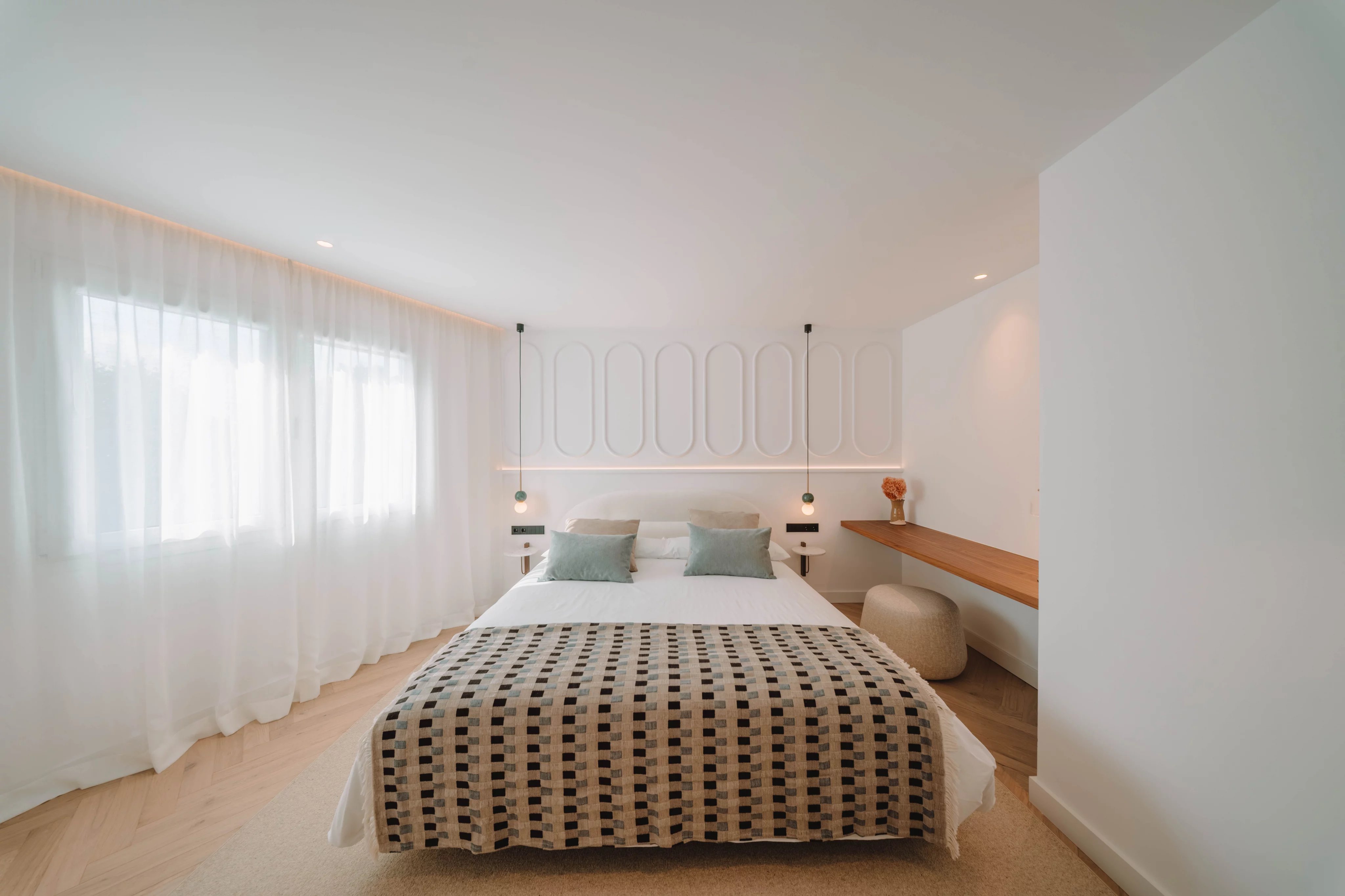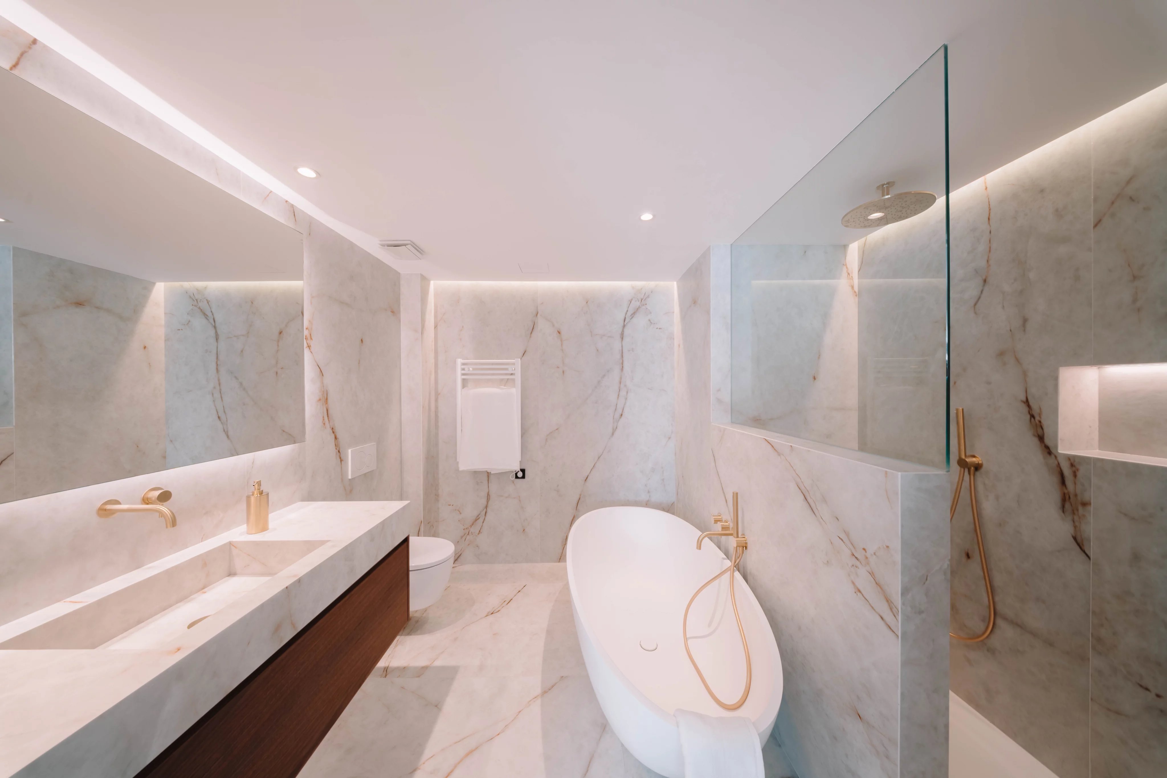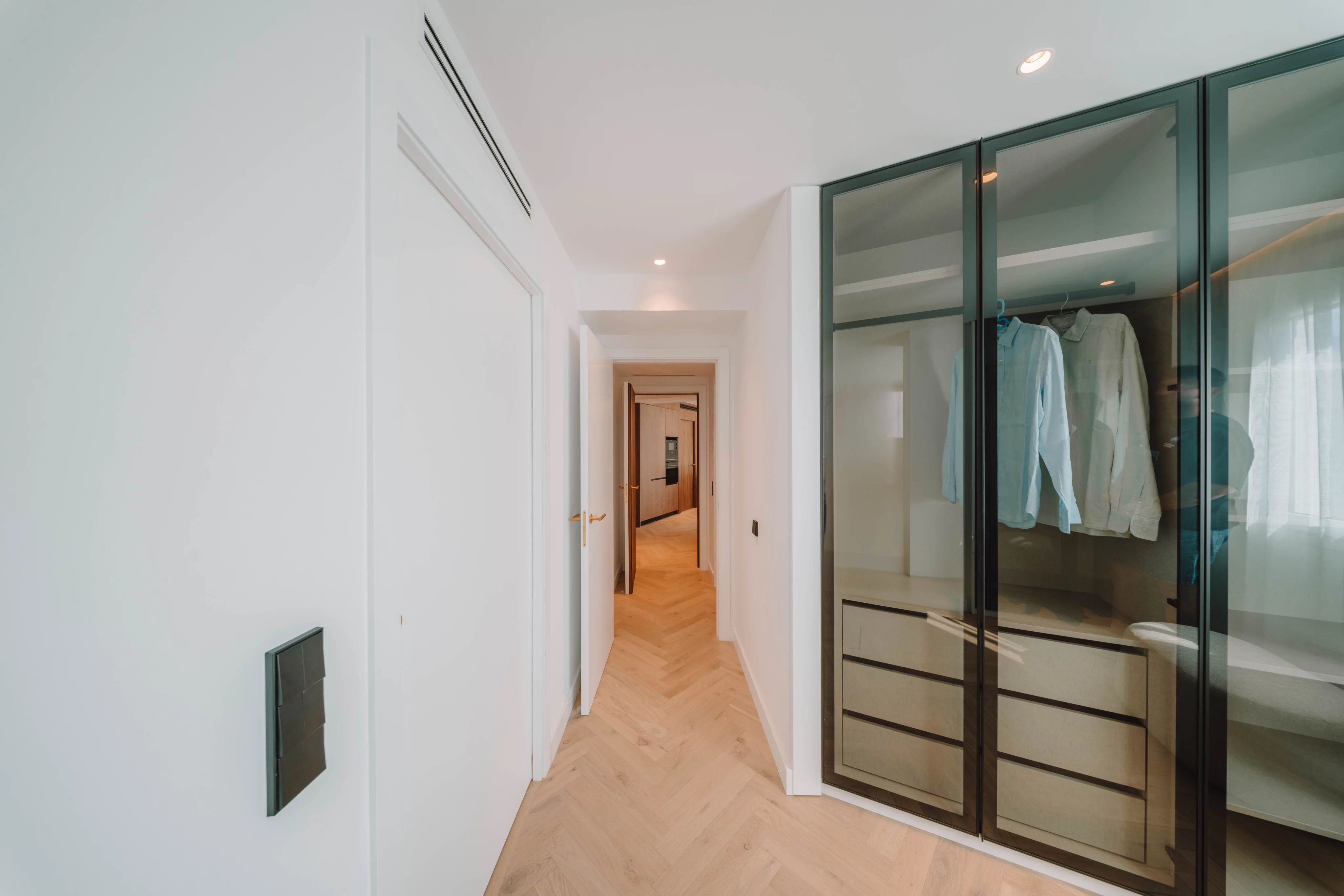 S užitnou plochou 129 m² disponuje apartmán třemi ložnicemi a dvěma koupelnami, navrženými s důrazem na komfort i funkčnost. V roce 2025 byl kompletně zrekonstruován prestižním místním designovým studiem a nabízí vysoce kvalitní provedení, včetně zakázkové truhlářské práce z ořechového dřeva v celém interiéru a designové kuchyně ze stejného ušlechtilého materiálu, doplněné pracovní deskou z přírodního kamene dovezeného z Brazílie. Nemovitost je plně vybavena nábytkem prémiových značek, jako jsou Ethnicraft a Paul Rogers, což podtrhuje její elegantní a moderní charakter.