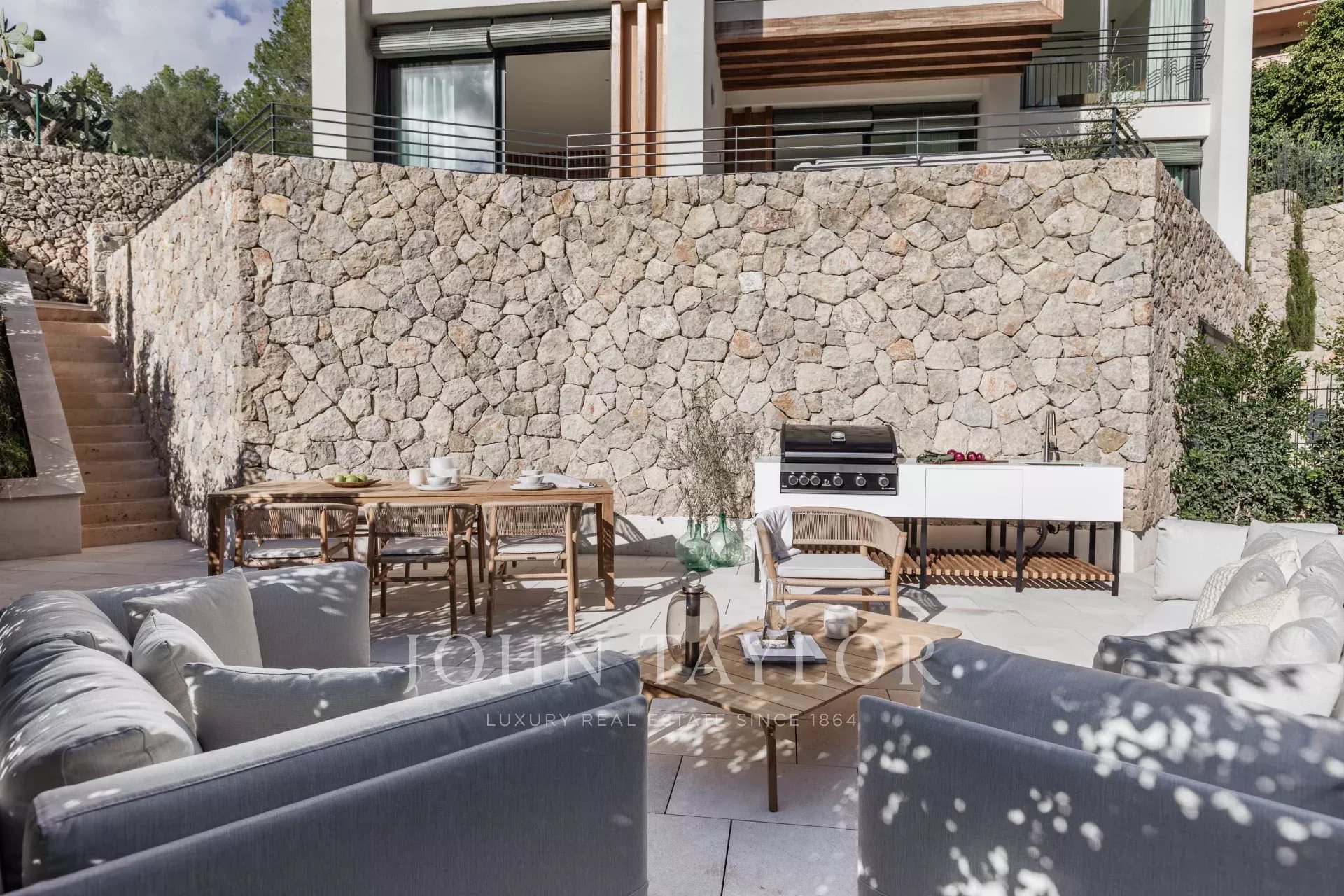 Každý prostor je plně zařízen italskými kousky na míru od firem Barzaghi Salotti a Ethimo a odráží výjimečné řemeslné zpracování. Veškeré truhlářské práce - včetně kuchyní, skříní a koupelen - byly ručně vyrobeny mallorskými řemeslníky, což zaručuje preciznost a kvalitu.