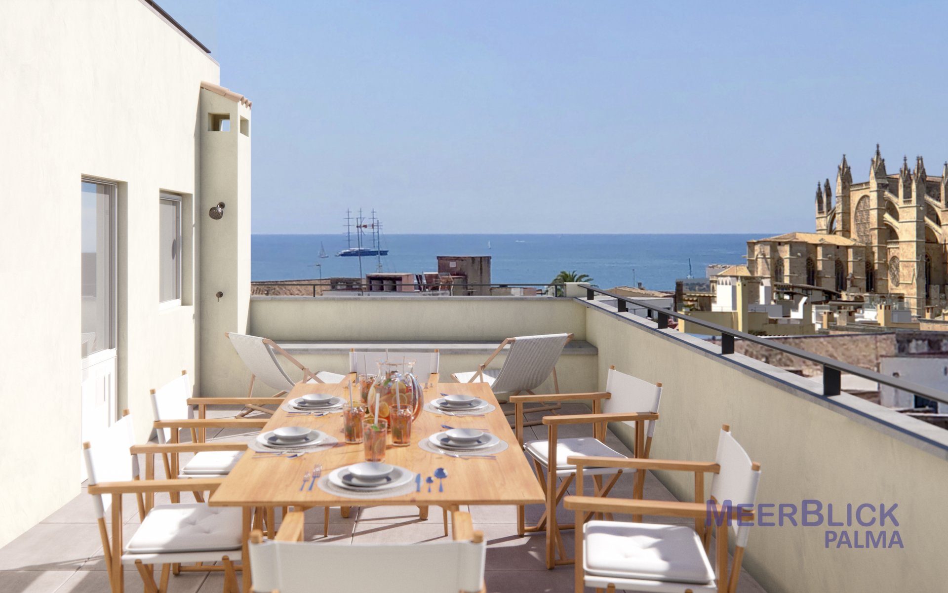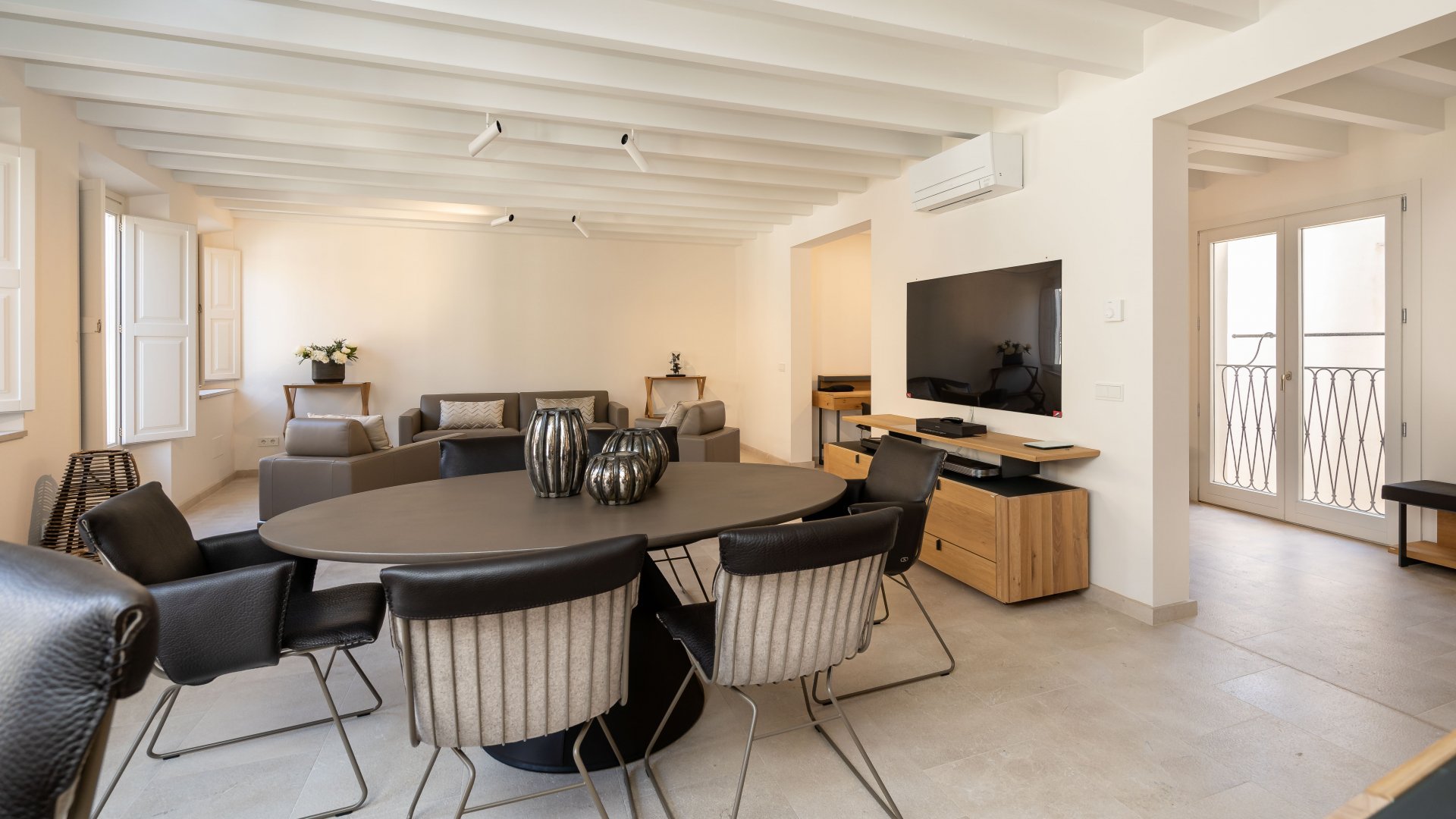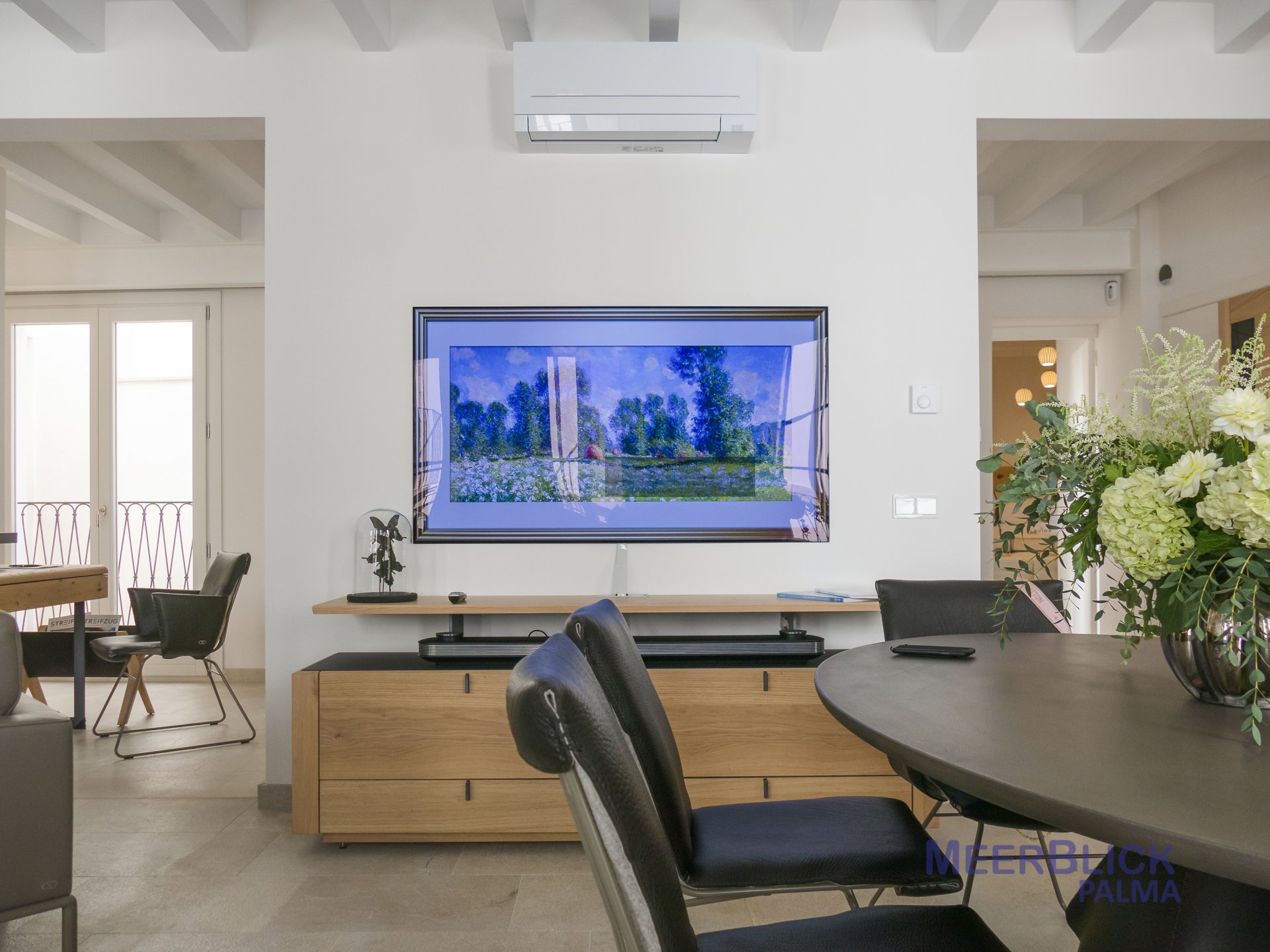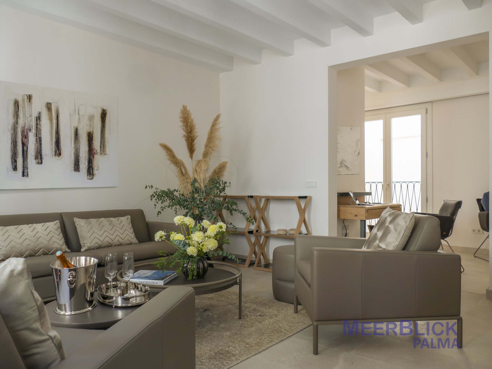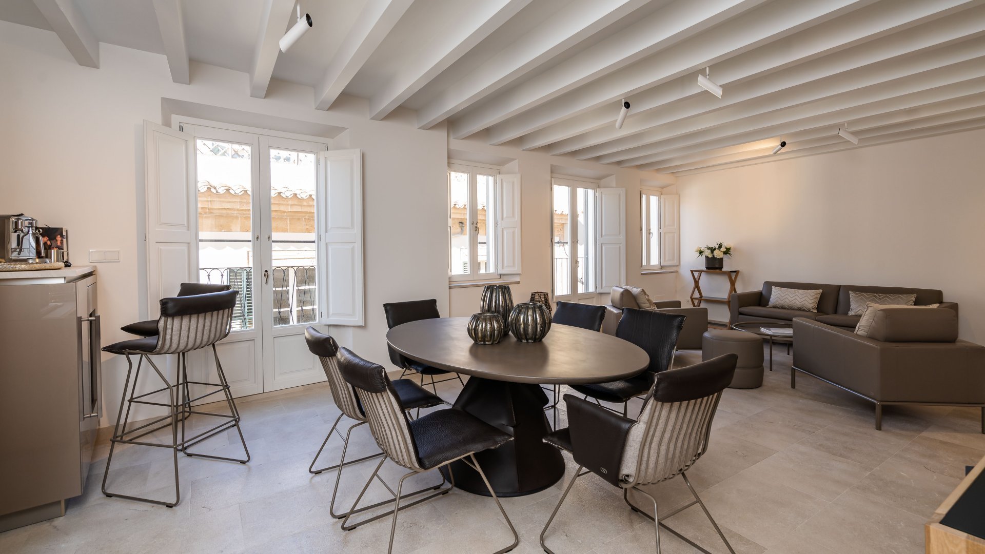 Tento krásný byt se nachází v jedné z nejznámějších ulic v Palmě, hned vedle náměstí Santa Eulalia. Vyniká moderními čistými liniemi a světlými místnostmi díky oknům od podlahy ke stropu. Jeho interiér nabízí celkově zemitý, teplý přírodní tón s pečlivě vybraným nábytkem. Otevřený prostor kuchyně, jídelny a obývacího pokoje se zvýšeným střešním stropem nabízí pocit loftu a spolupráce se značkami jako De Sede, Voglaur, Joka, Häcker, Miele a Gaggenau zajišťuje maximální kvalitu a pohodlí. Má dvě vlastní ložnice, koupelnu pro hosty a báječnou střešní terasu s výhledem na katedrálu, moře a staré město Palmy, která je ideální pro zábavu nebo čistou relaxaci. Nemovitost se bude prodávat plně zařízená a její součástí je podlahové vytápění, centrální klimatizace a domácí automatizace. Garážové stání je volitelné za příplatek.