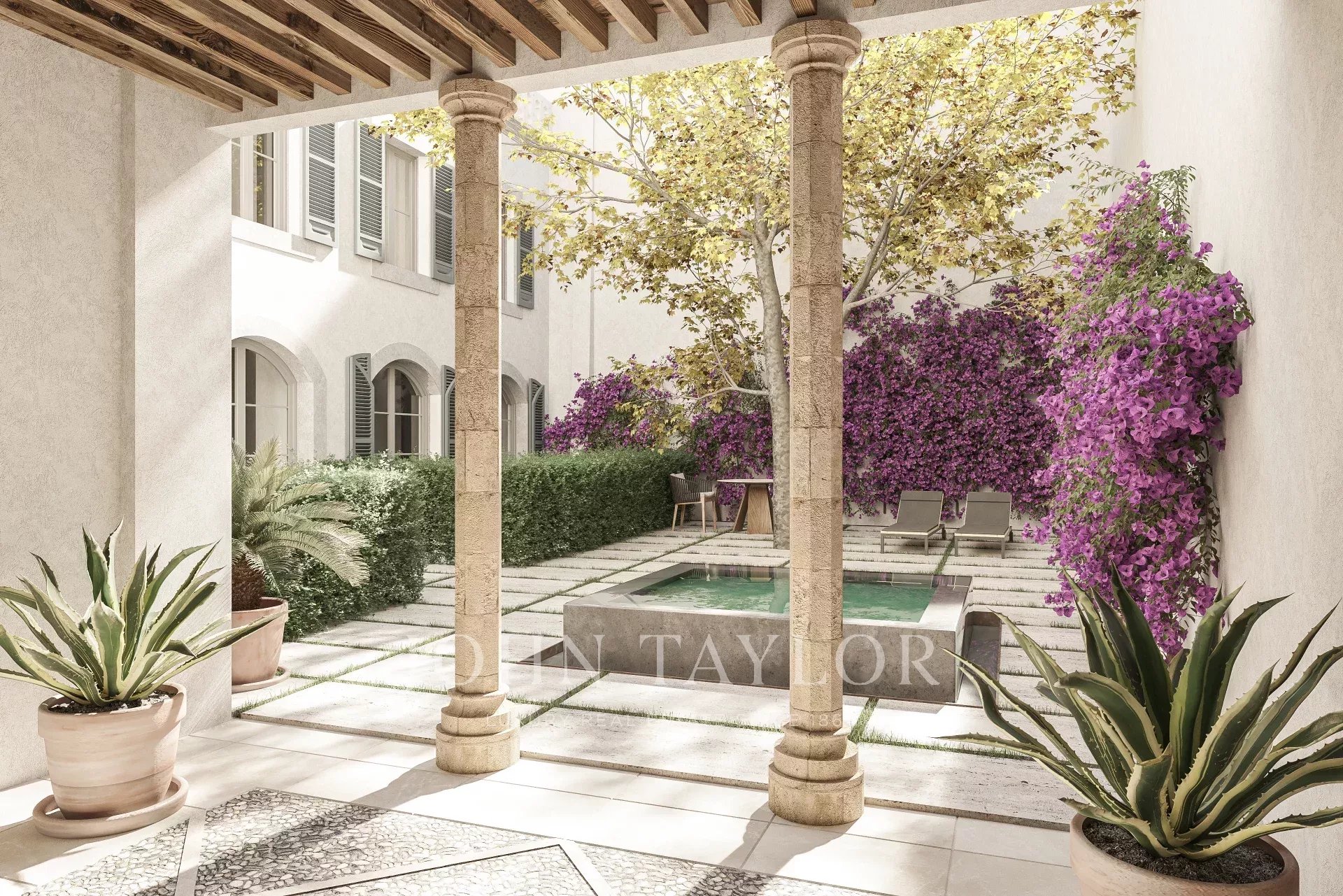 Tento báječný nový projekt, který je v současné době ve výstavbě, se promění v úžasnou rezidenci s 5 byty, která bude postavena kolem soukromé zahrady. Tento elegantní komplex je nedílnou součástí Starého Města a nabízí skutečnou svěží oázu klidu, letního stínu a pohody (v zimě velké staré listnaté stromy shazují listí a propouštějí sluneční paprsky). Jednotky se pohybují od zahradních apartmánů, mezonetů a trojdomků o rozloze od 81 m2 do 190 m2 a 1, 2 a 3 ložnicemi. Jednotky v přízemí i v nejvyšším patře jsou vybaveny venkovními prostory, které jsou ideální pro rekreaci nebo čistý odpočinek. Projekt se zaměřuje na obnovu původní slávy budovy se všemi výhodami moderního bydlení, jako jsou trámové stropy, okna od podlahy ke stropu, podlahové vytápění, plně vybavené kuchyně se spotřebiči Siemens, centrální klimatizace a systém domácí automatizace, a s použitím ušlechtilých materiálů, jako je přírodní kámen Binissalem a dubové podlahy.