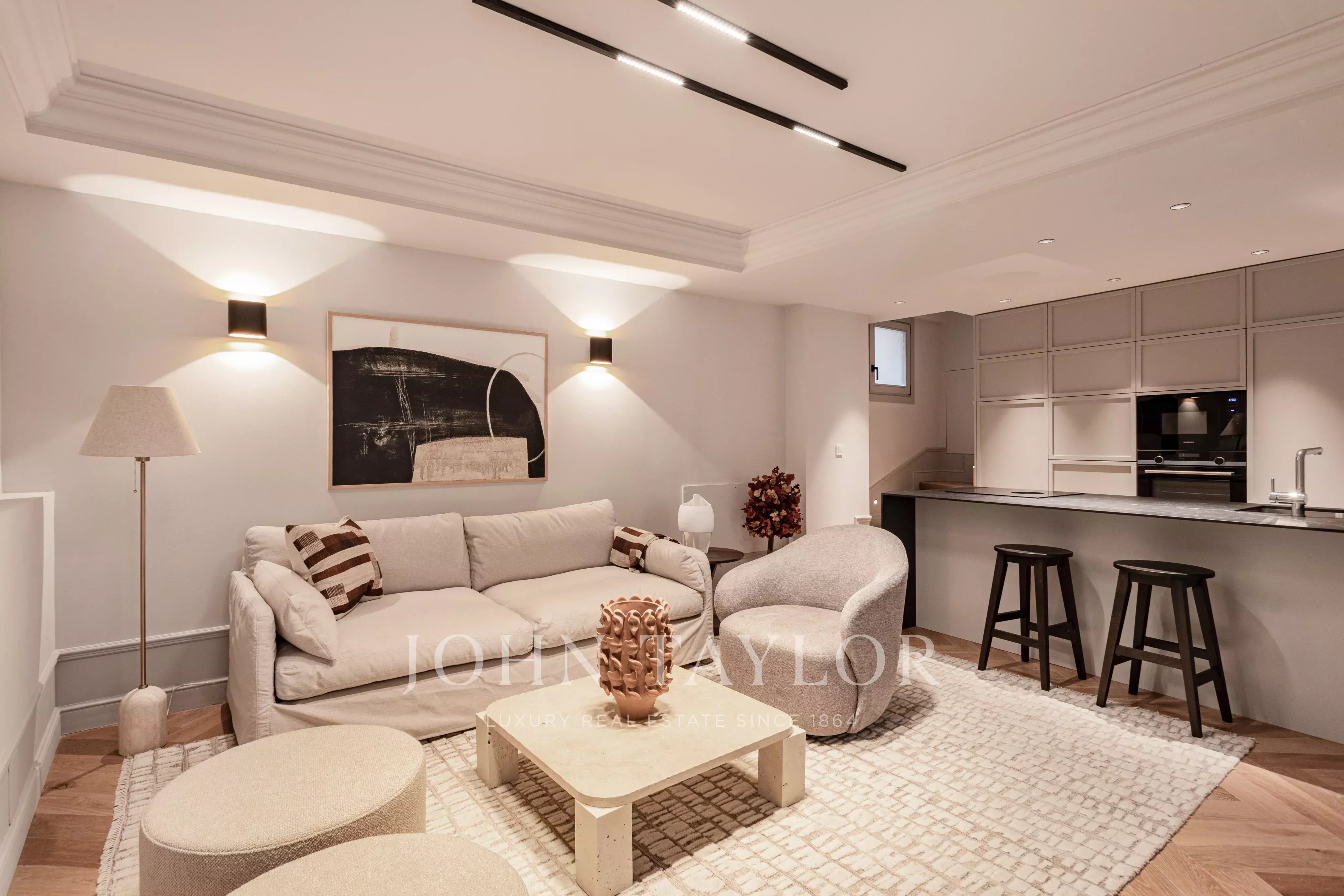 Tento duplex v přízemí s terasou na střeše nabízí neuvěřitelné přirozené světlo díky oknům od podlahy ke stropu, která směřují do soukromé 11 m² zahrady. Jeho 35 m² otevřená kuchyň, jídelna a obývací prostor jsou pohodlné a prostorné. Toto patro doplňuje skladovací místnost a hostinské WC. První patro zahrnuje 2 velké ložnice s vlastními koupelnami a prádelnu. Nakonec je tu fantastická 18 m² střešní terasa, ideální pro užívání si nejlepšího středomořského klimatu. Všechna patra jsou přístupná soukromým výtahem, což zajišťuje maximální pohodlí.